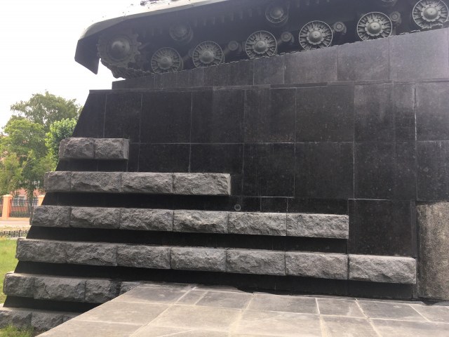 Подставка танка на постаменте - полиамид блочный, обработанный в размер на фрезерном станке и облицован имитацией плит лабрадорита.