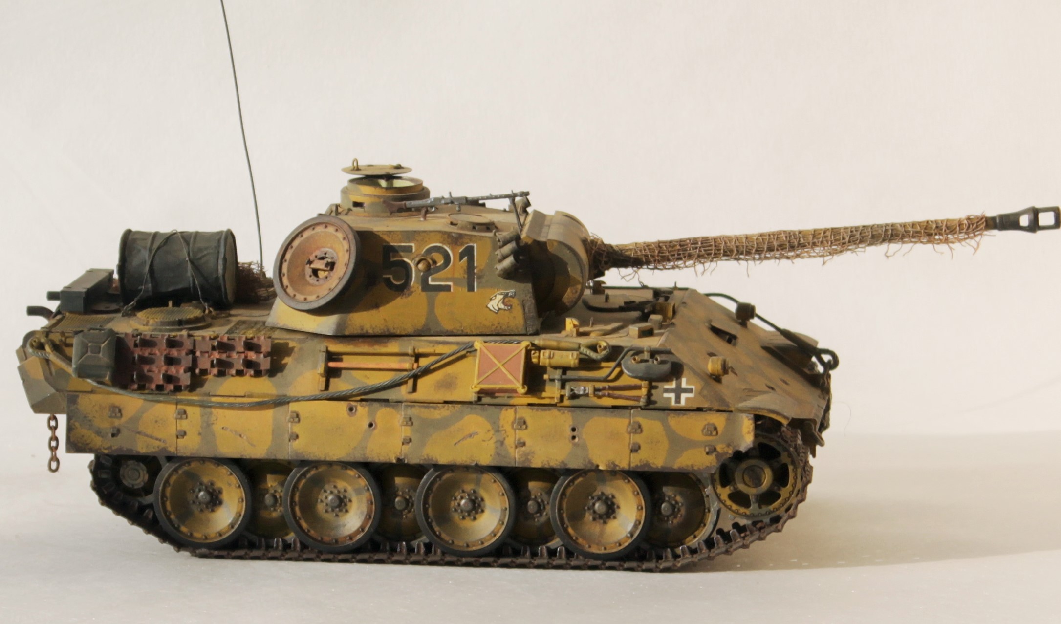 Очень даже хорошо! Камуфляж красиво исполнен, смотровые приборы, следы повреждений - все гут. Антенну только бы, выровнять