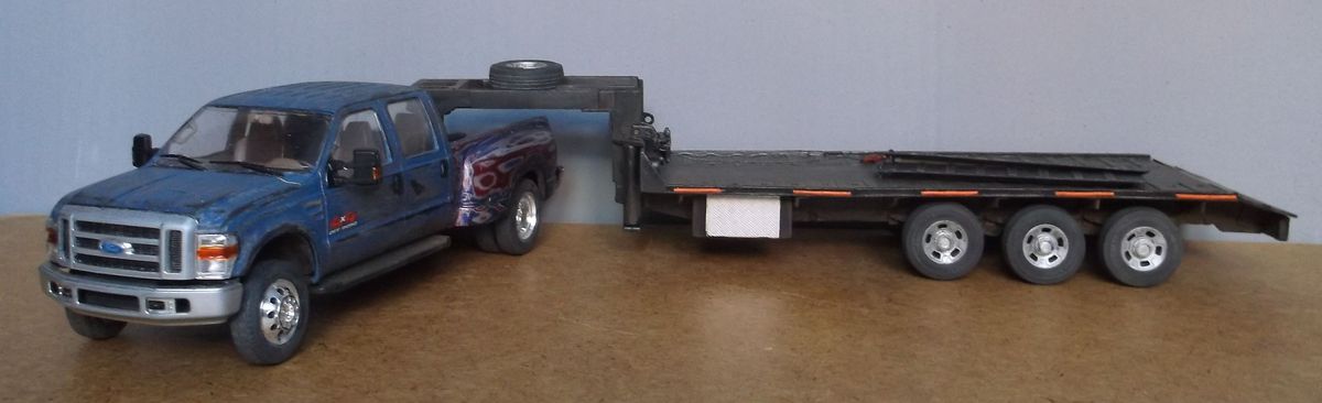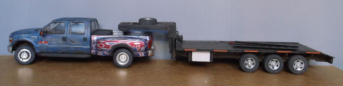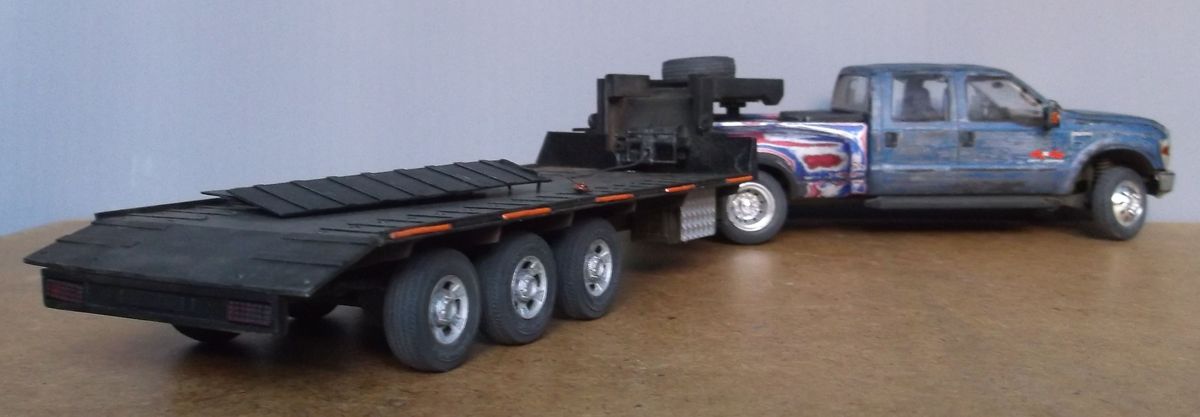 С праздником, мужики! К празднику подогнал презент в виде малыша Фордика с прицепом. В дело пошёл сам фордик, кузовок с дутыми арками от китайского Доджа в 32м масштабе (пришлось заужать кузовок), лебёдка от звездовского УРАЛа, рама от игрушки-прицепа, родные колёсики для прицепа, ну и самодел, конечно, куда ж без него. Заднюю подвеску просадил под нагрузку. Фордик участвует в двух проектах. И в обоих он гружёный. Колёса для самого Форда подобрал по размеру от китайского грузована (Китай наше всё :)) ).