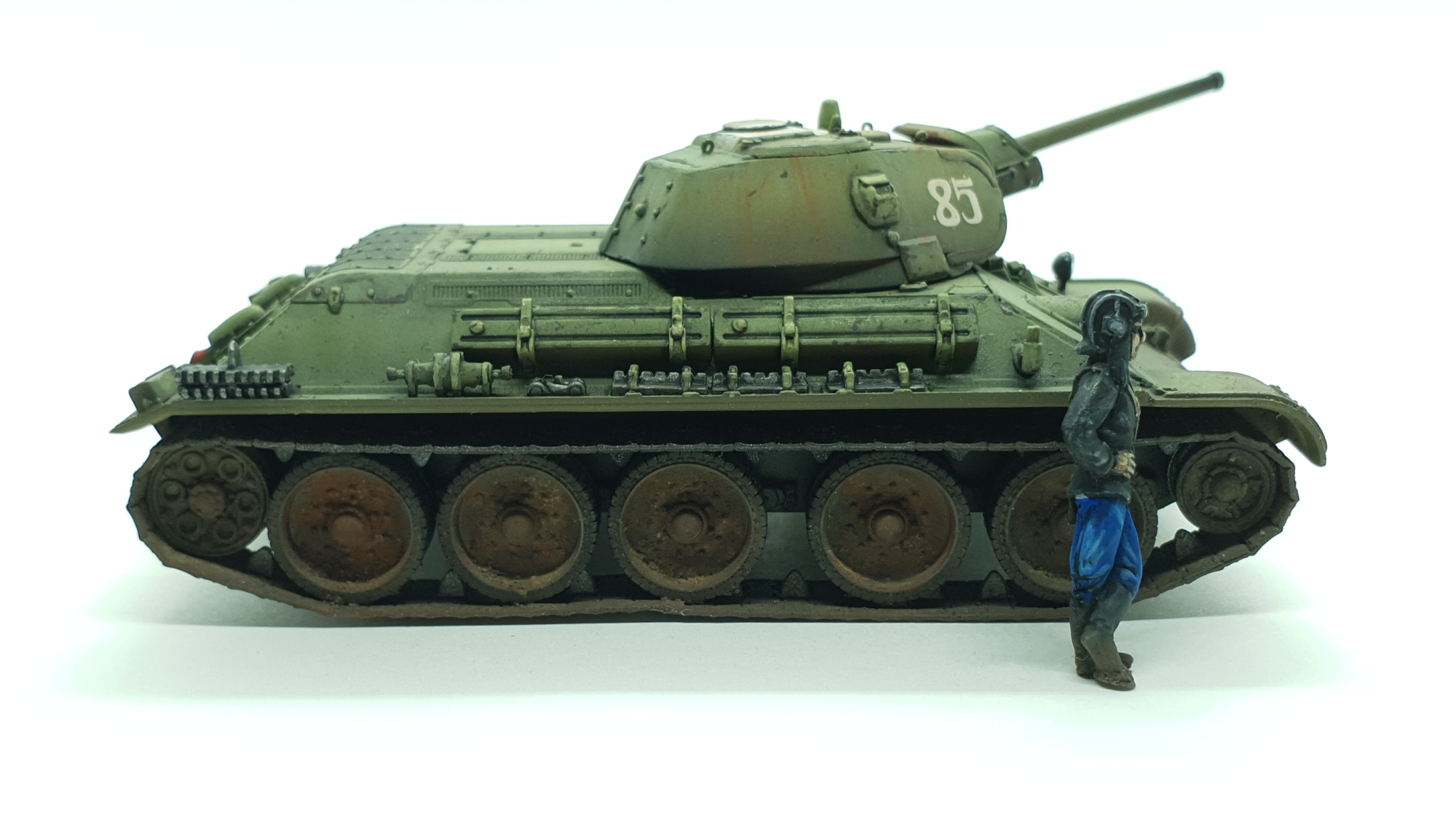 Наконец-то доделал эту тридцатьчетверку. Решил попробовать себя в росписи фигурок в таком масштабе, на мой взгляд получилось неплохо для первого раза.