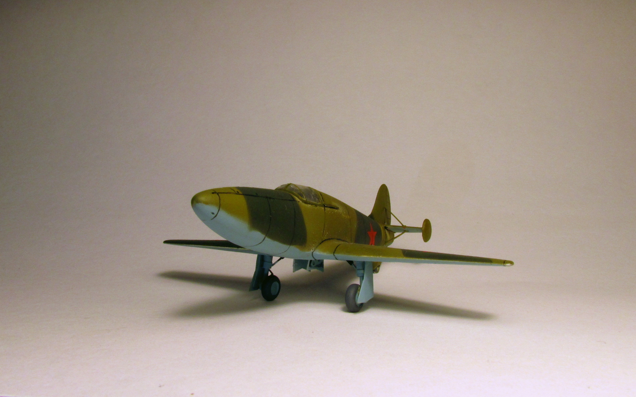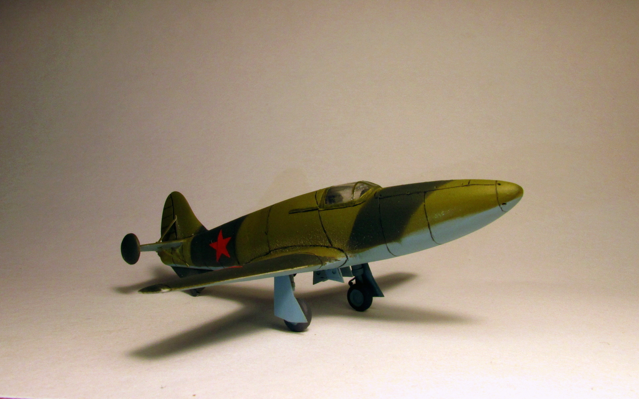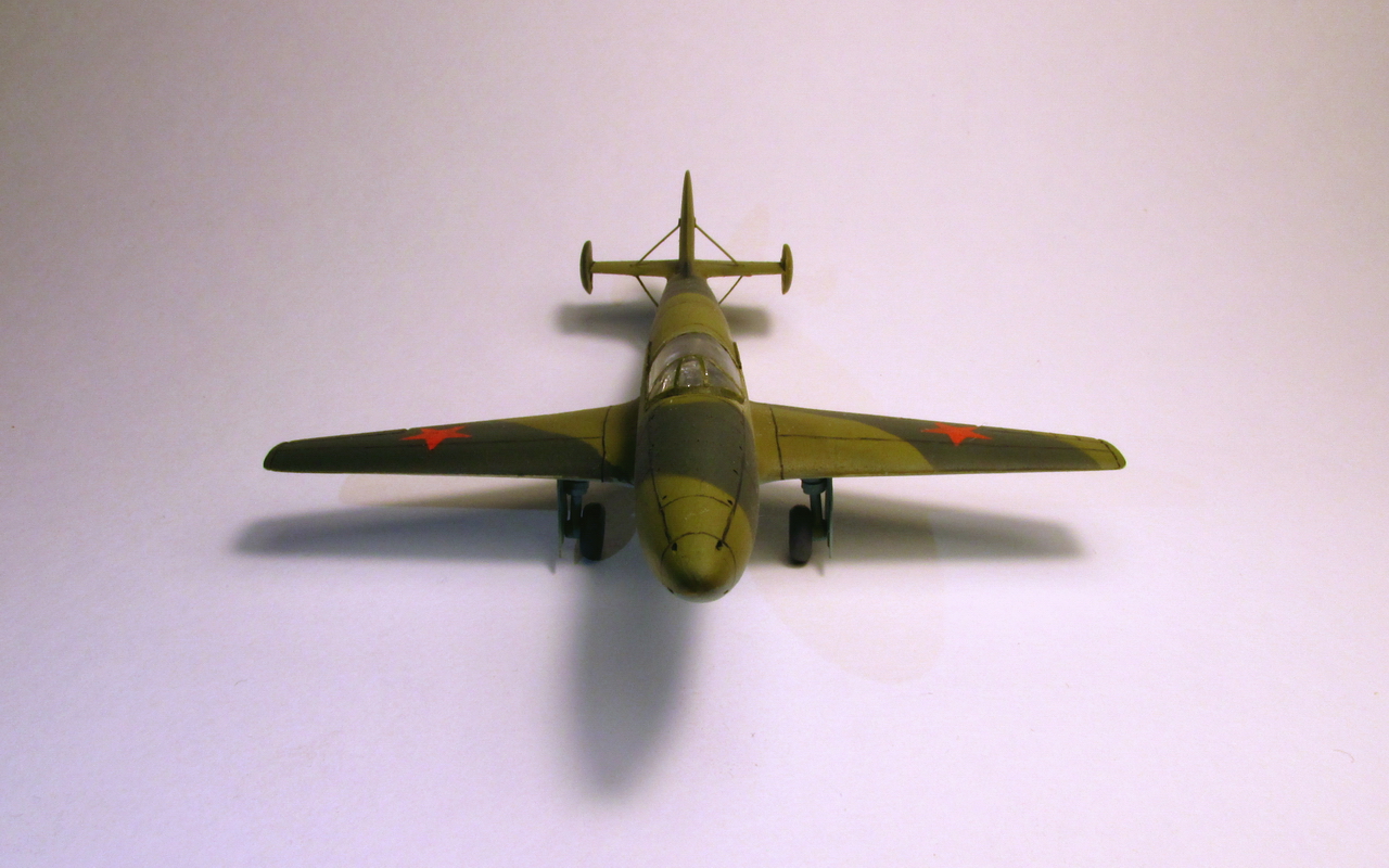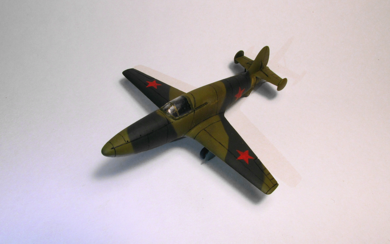 И сие желание разнообразить модельный досуг не заставило себя долго ждать. Нашёлся в магазинчике такой вот децл. Полено всем поленам полено, разве что не вакуха, а так полный фарш мазахизма. Некий кооператив" скарабей" в 90х выпускал реактивный ястребок, под индексом БИ-1. Сам набор очень скромный, с большим количеством облоя и утяжин. Одна литниковая рамка, кусок прозрачного полистирола под видом фонаря и декаль на четыре звезды. Инструкция и она же арт. Расшивка на модели практически абстрактная, пришлось всё шпатлевать , выравнивать и делать заново. Всё примерно на глазок,т.к. тушка модели совсем мизерная, удержать её сложно - так и норовит ножом в руку зарядить. Ниши шасси углублял, сами стойки из медицинских игл, колёса из набора, крышки из тонкого пластика, Интерьер кабины поверхностный, чисто символически. Всё равно качество фонаря гасит интерьер. Была попытка изготовить новый фонарь, но так успехом не увенчалось. На модели применялась грунт и химия фирмы Pacific88. окрас в стандартный двухцветный камуфляж. Историческая привязка приблизительна на второй прототип. Опять же, старался, на сколько хватило терпения. Модель строил в перерыве от тридцать пятого масштаба. Срок изготовления составил почти месяц. некоторые технологические лючки так и не удалось реализовать по физическим причинам. В заключени скажу, что от работы с моделью получил очередной опыт и удовлетворение. Желаю приятного просмотра!