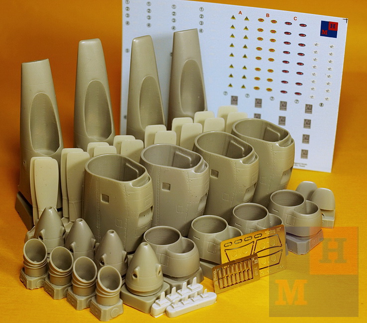 Те же короткие двигатели 9 серии с воздушными винтами 54Н60 поздних модификации. К смоляным деталям набора прилагаются две фототравленых платы и большая декаль с двумя вариантами технички и четырьмя вариантами лого производителей.