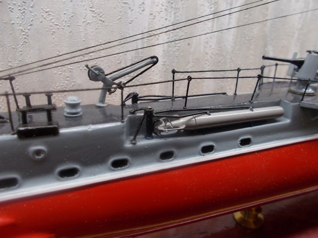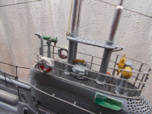 Смотрится красиво. В матчасть вторгаться не буду, не моя тема. А вот покраска оставляет желать лучшего. К блеску претензий не имею, так как можно отнести к макетному исполнению. Но вот грязь, неаккуратность залитость, неровность присутствуют в полной мере. Иллюминаторы тоже закрашены в цвет корпуса, я так полагаю.