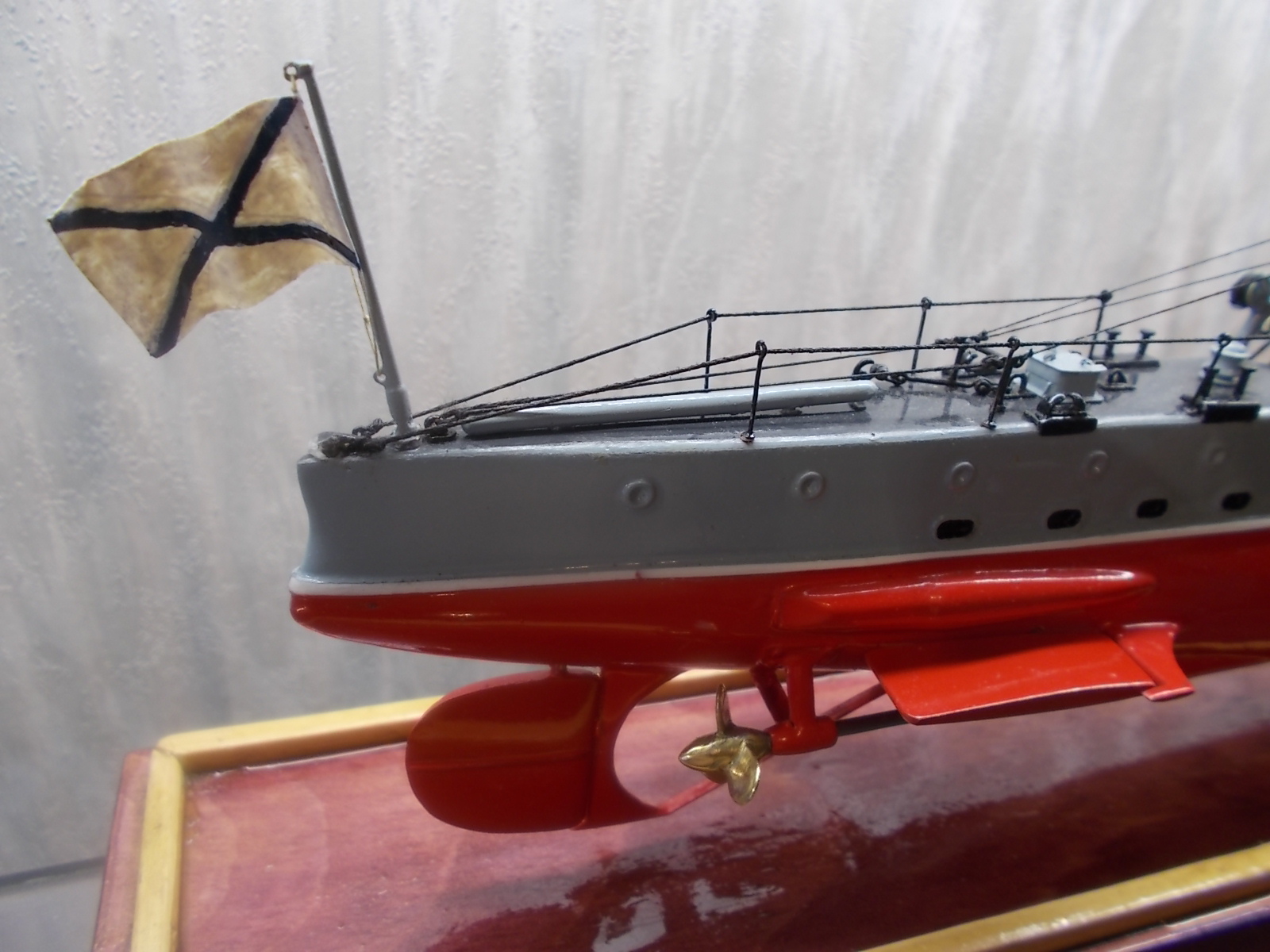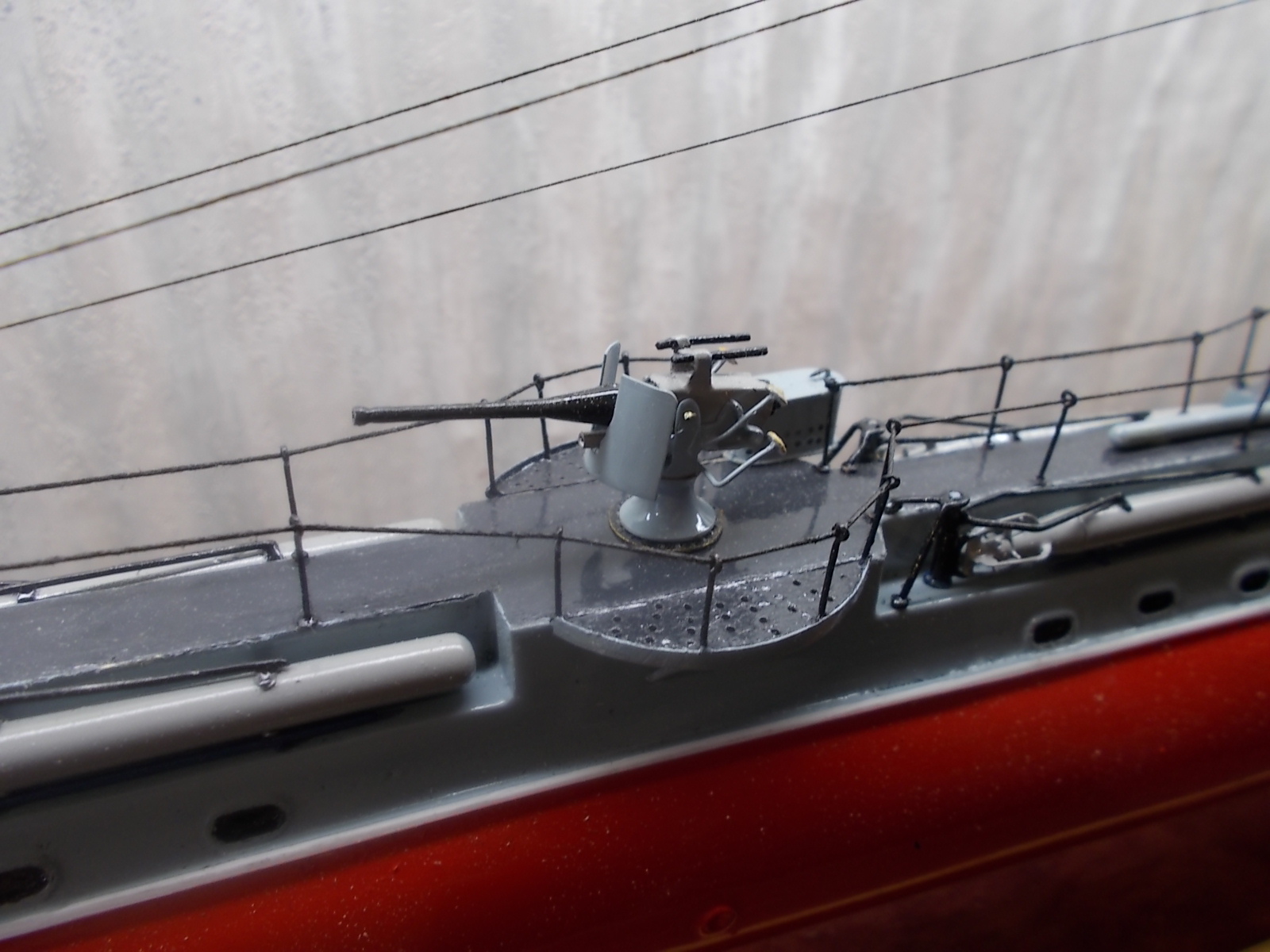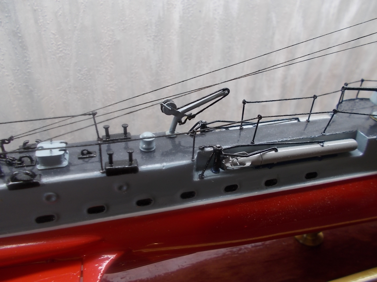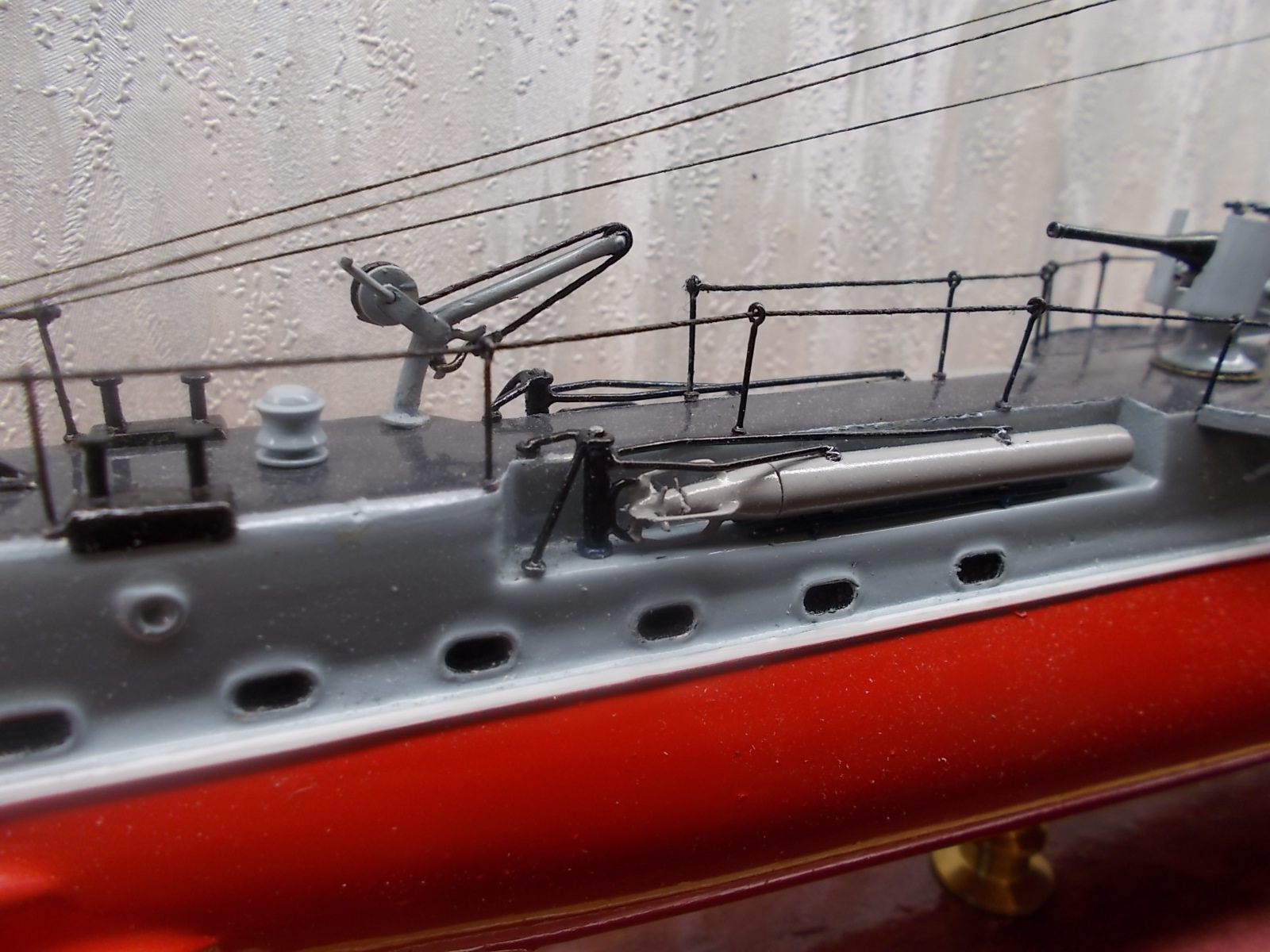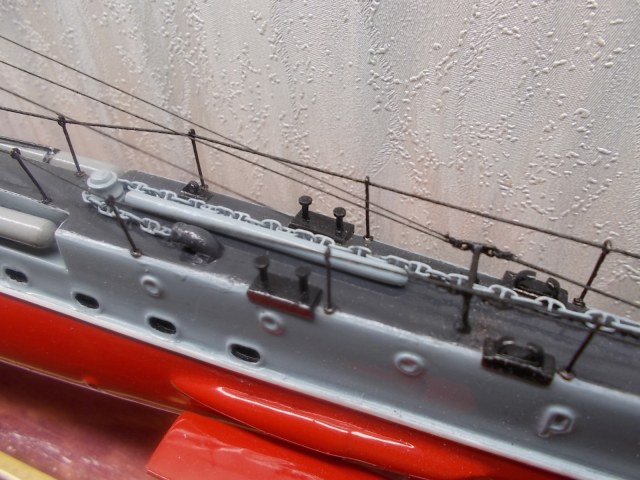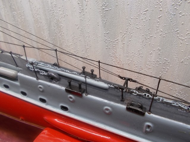4. Почему нитра? Нитра не позволяет играть цветами , а по общей грунтовке можно было дать неплохой прешейдинг и обычным акрилом цветовую модуляцию. В итоге получилось : серый верх, красный низ.Причем серым всё, даже якорные цепи.