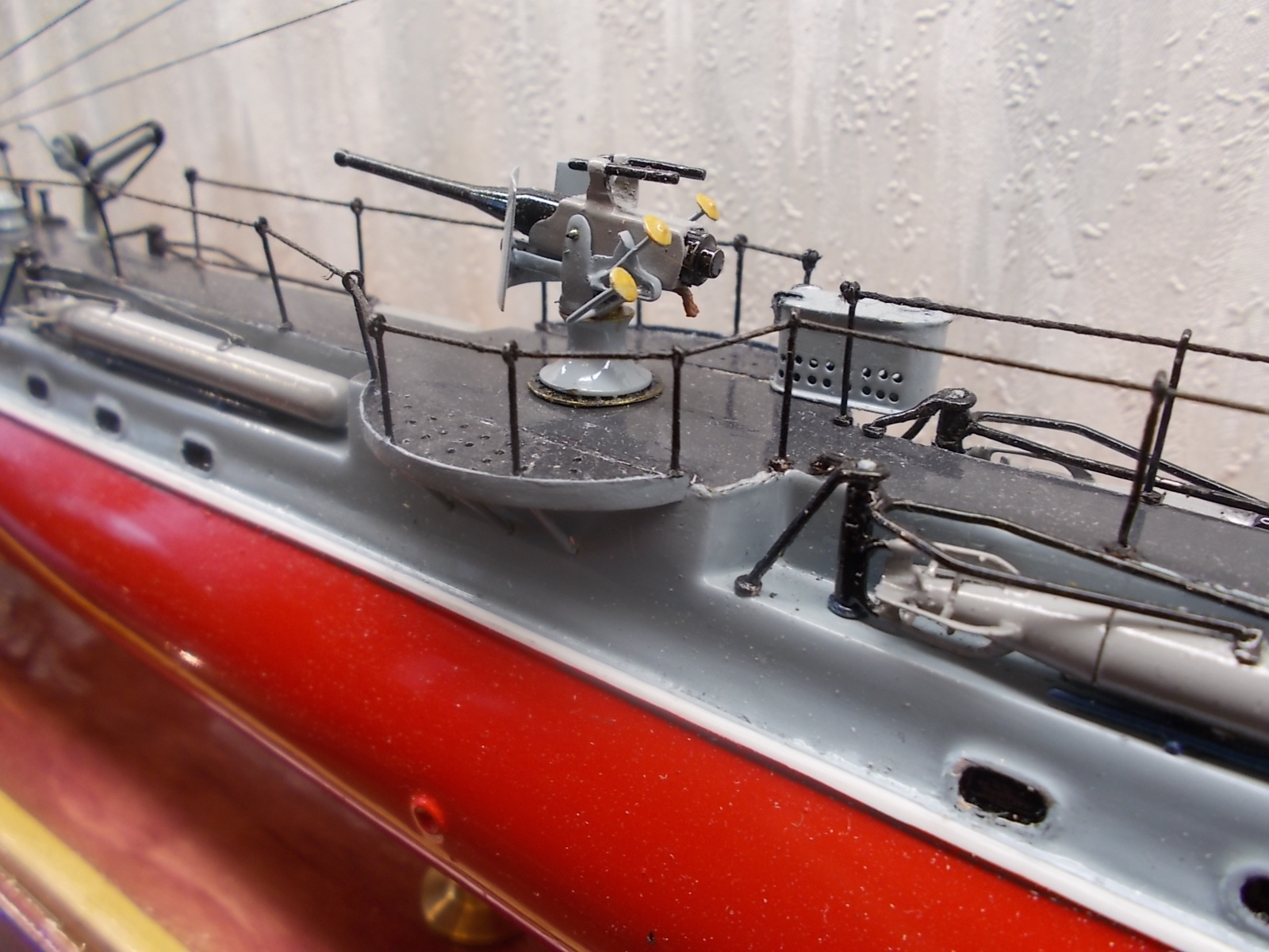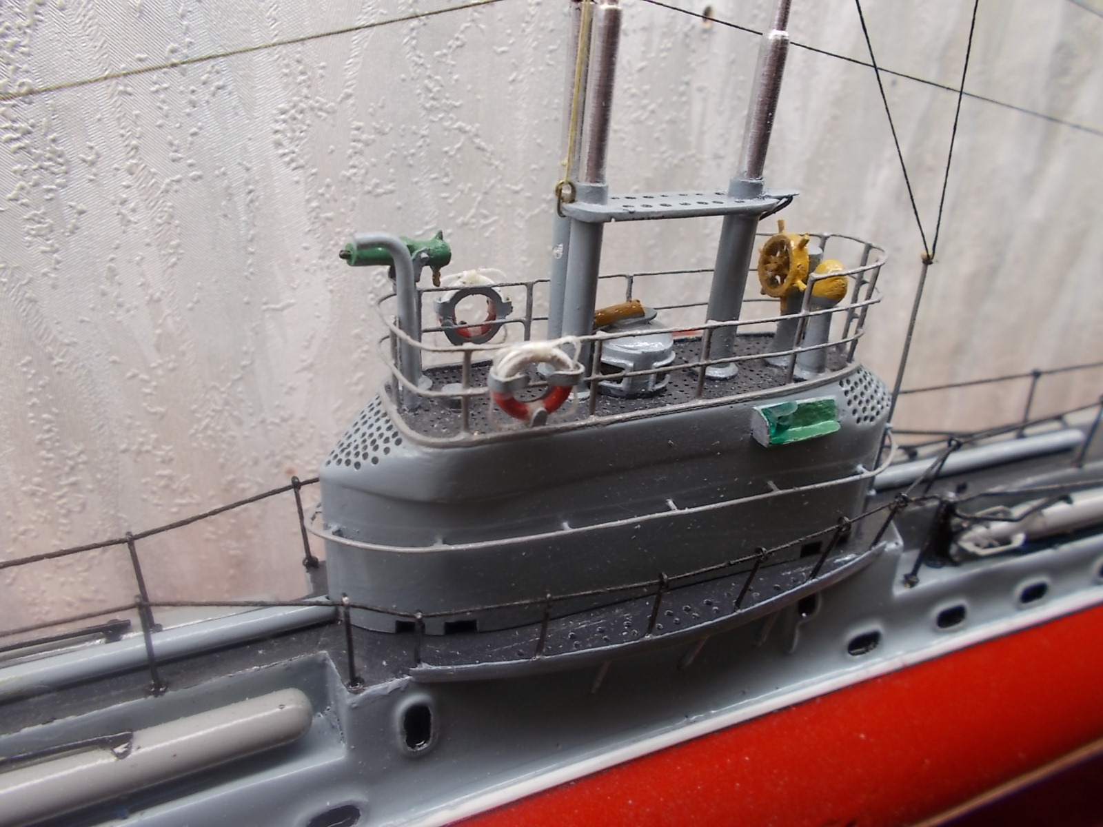 К окраске нижней части лодки, как раз прензий особых нет, разве что цвет уж очень яркий. Лодки служившие на Балтике и в Черном море, ниже ватерлинии в основном красили красным суриком. Зеленая краска использовалась преимущественно на тихоокенском флоте.