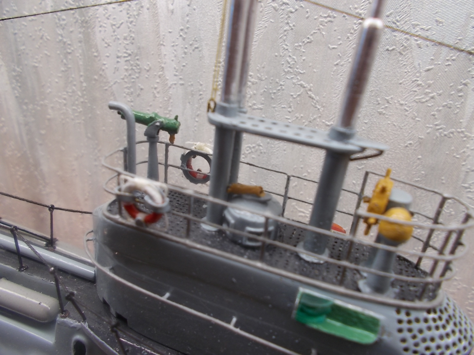 Странно, что вы верхние шпигаты не вырезали или не затемнили, на фото лодки это хорошо заметно.