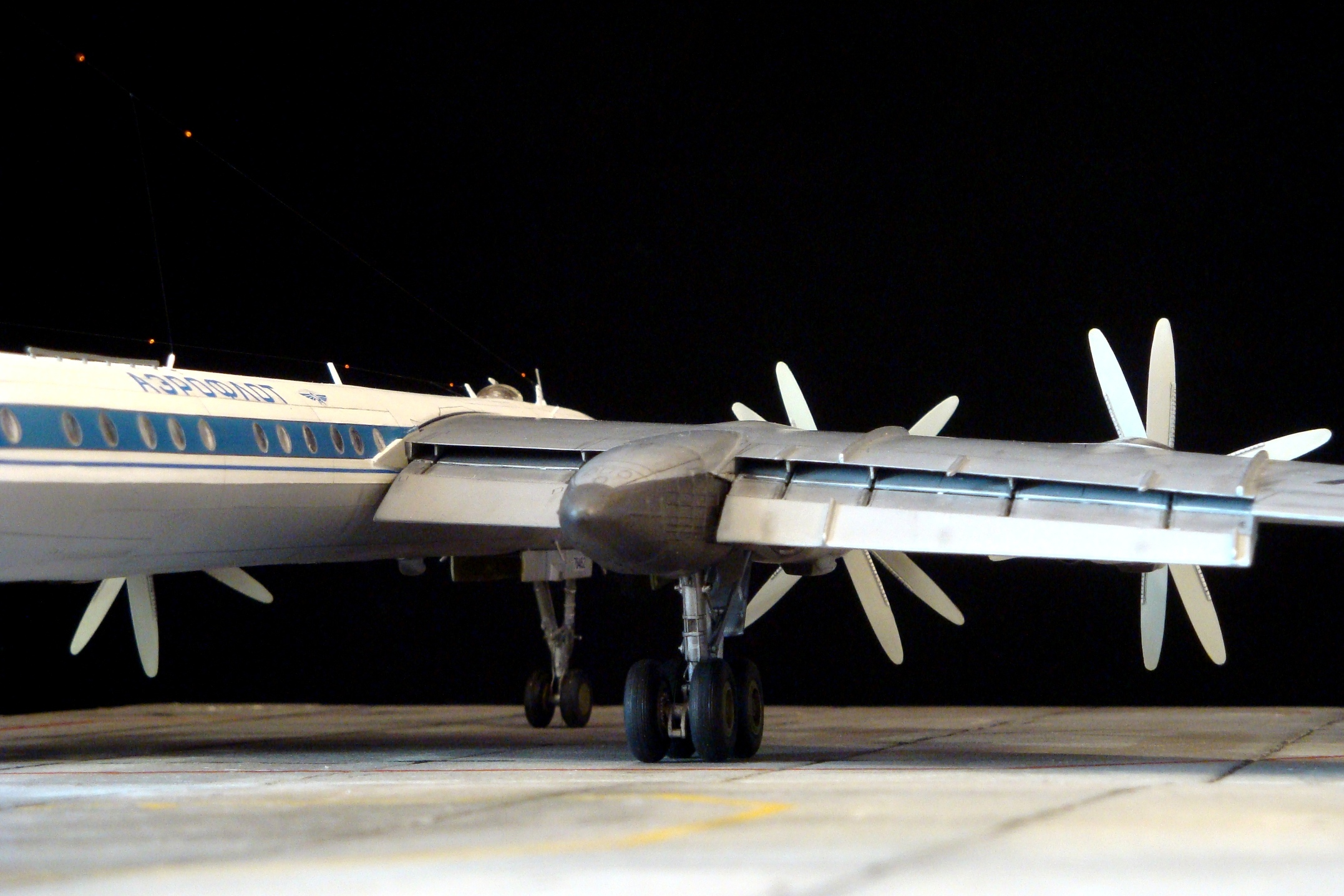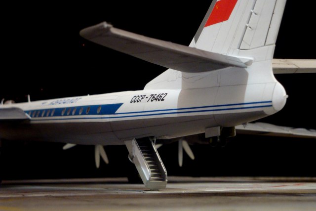 Очень круто, просто грандиозно! Что, и движки рабочие и подсветка внутри? А винты - противовращения? Там какие то редукторы стоят? Честно говоря, даже не знал, что у него так трап откидывался вниз. Т.е. он был независим от наземных "траповозов"? Геннадий, добавьте описание! Расскажите в нем про движки.