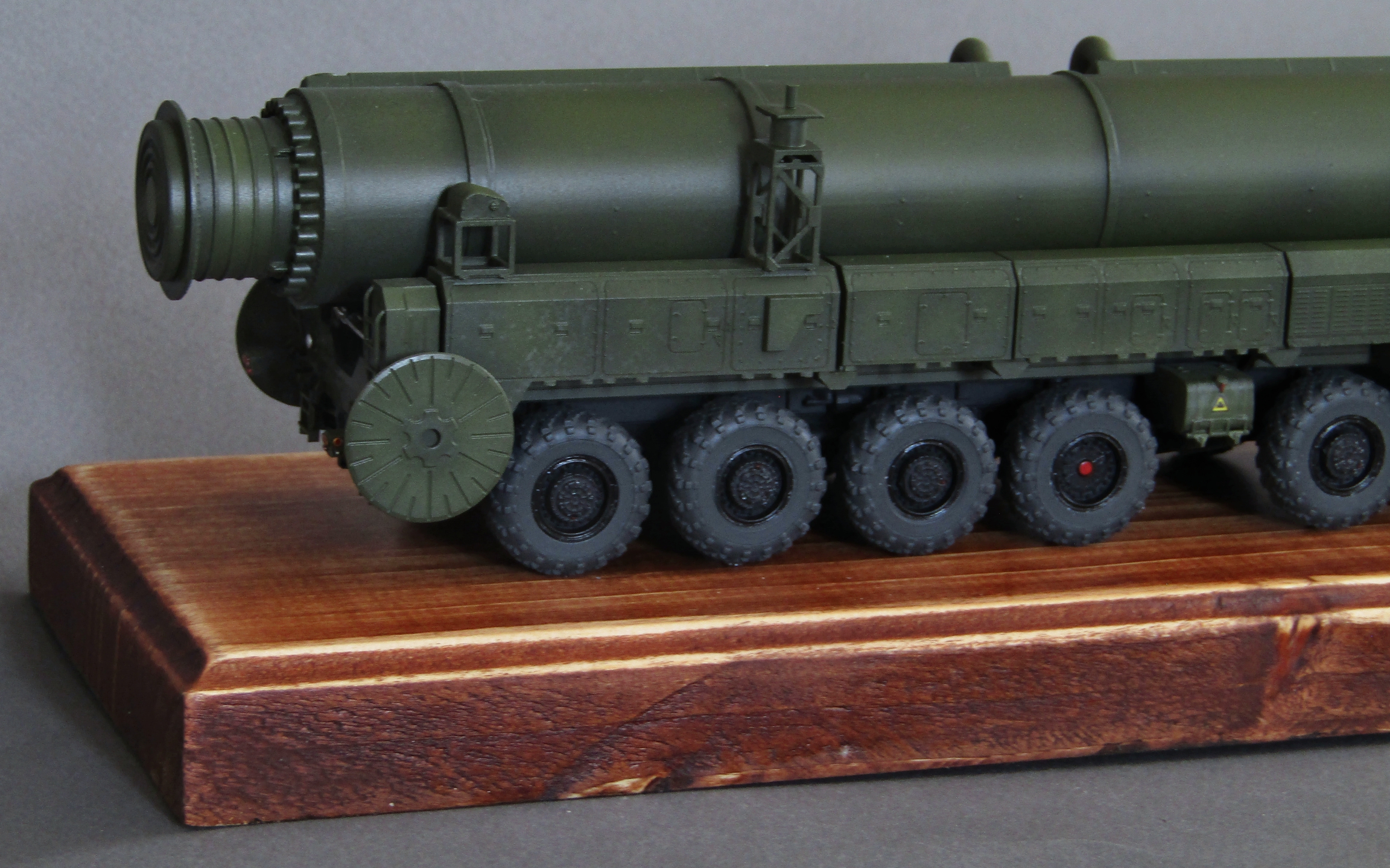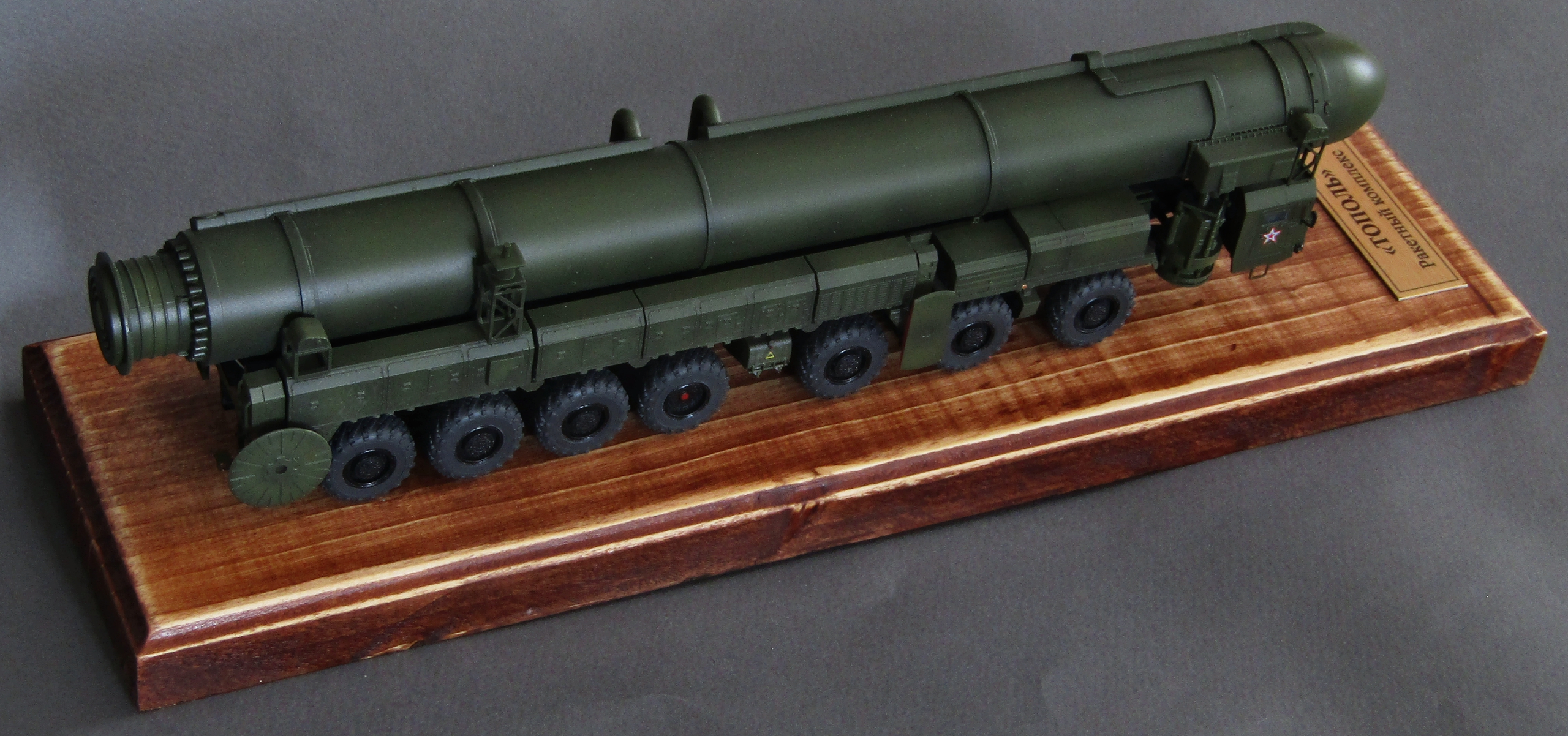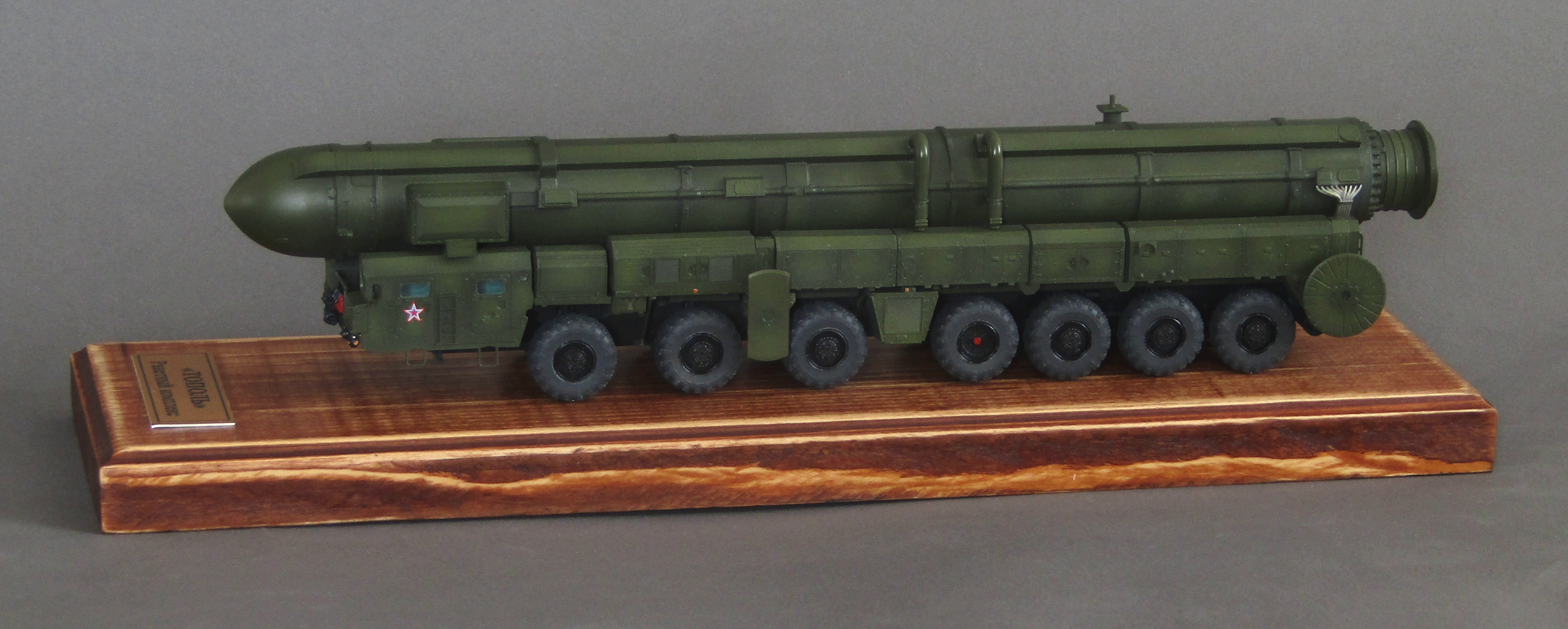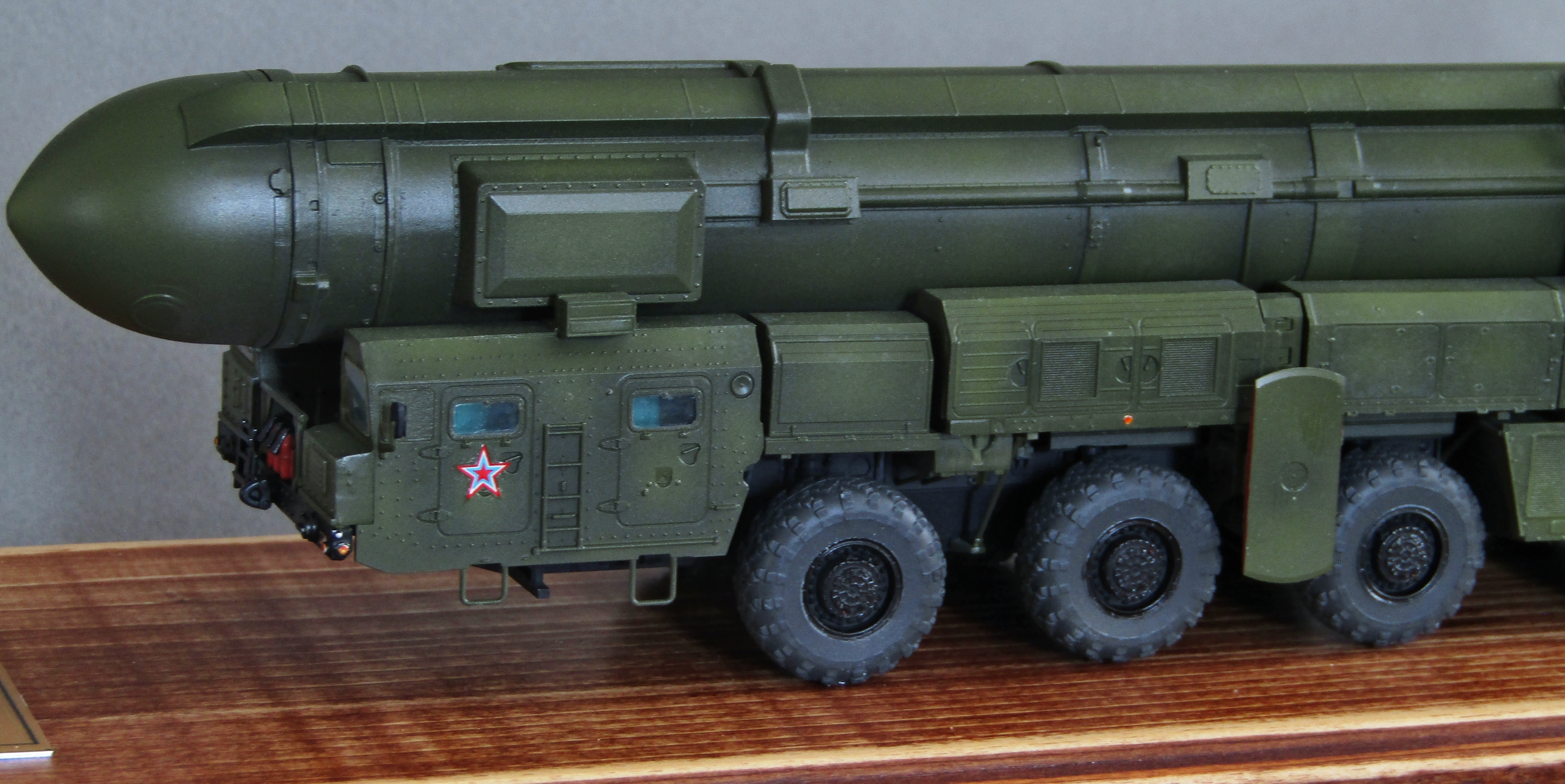 Приветствую коллеги! Представляю свою 3-ю попытку собрать сувенирный макет пусковой ядерной установки. Набор описывать не буду, модель строилась изкоробки, дополнил только фарами и зеркалами. Грунтовал серым грунтом Тамия, красил спиртовыми акрилами от Ганзы и Тамии с прешейдингом и высветлениями, лаки от Тамии. На смывку, увы времени не хватило. Приятного просмотра...