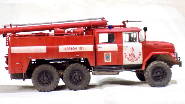 После долгого перерыва решил возобновить любимое хобби. Выбор пал на модель АЦ-40 от ICM. Показалась она мне довольно колоритной и оригинальной на модельном рынке, а сам я питаю слабость в этом направлении моделестроения. Было довольно сложно не поддаться искушению и не загваздать грузовик, все же пожарная техника практически всегда чистая.