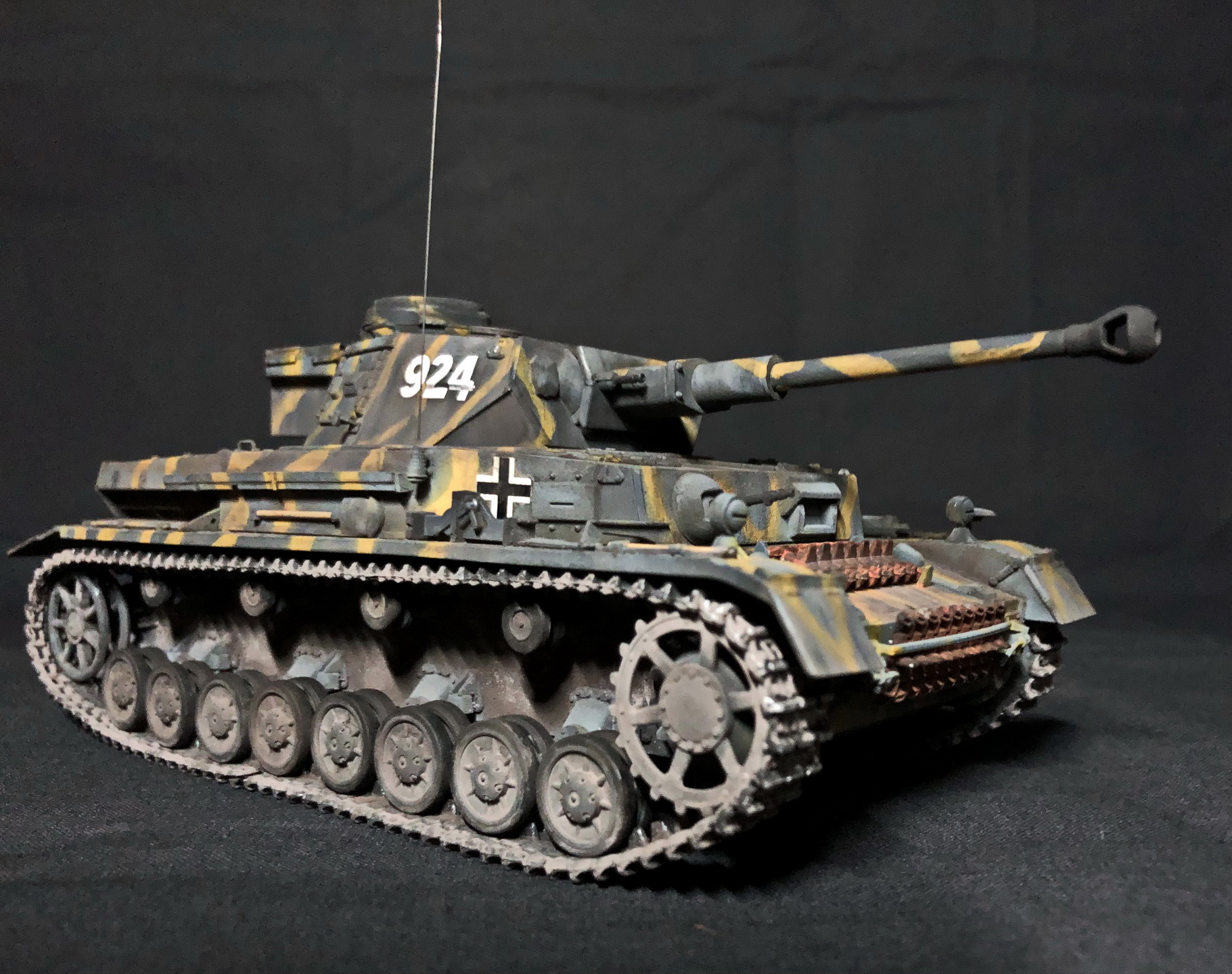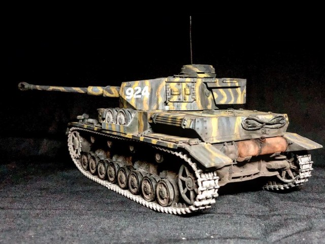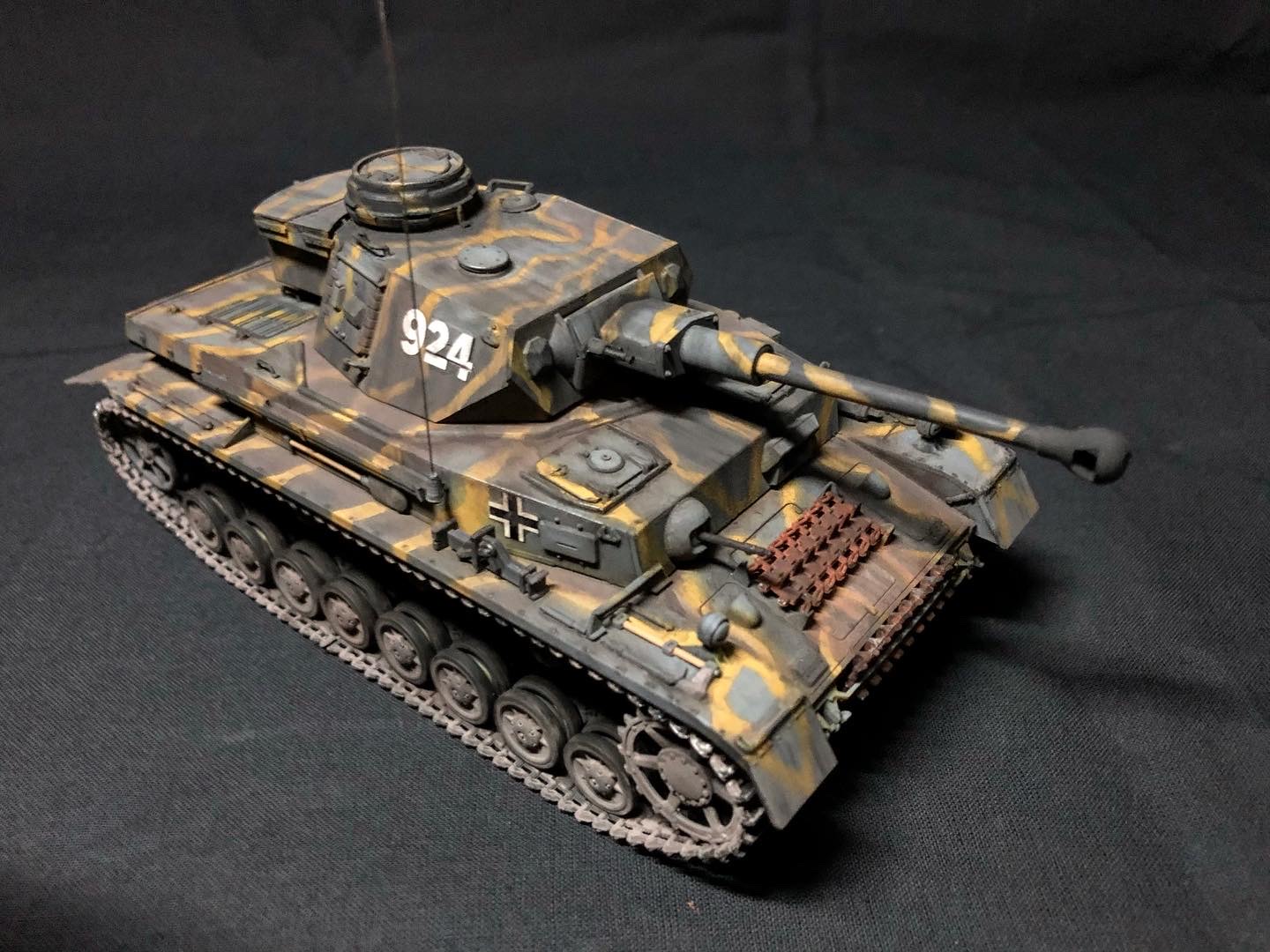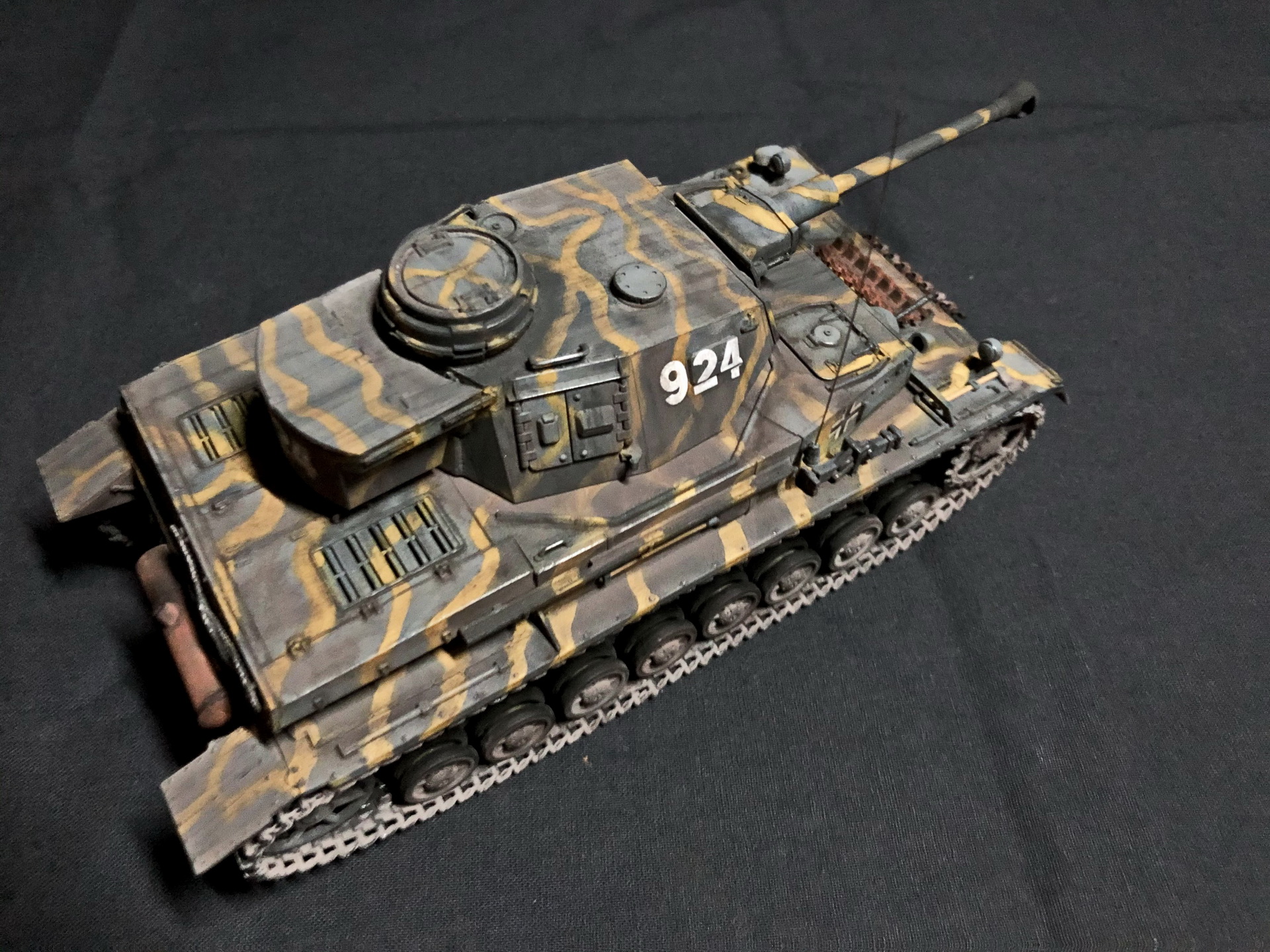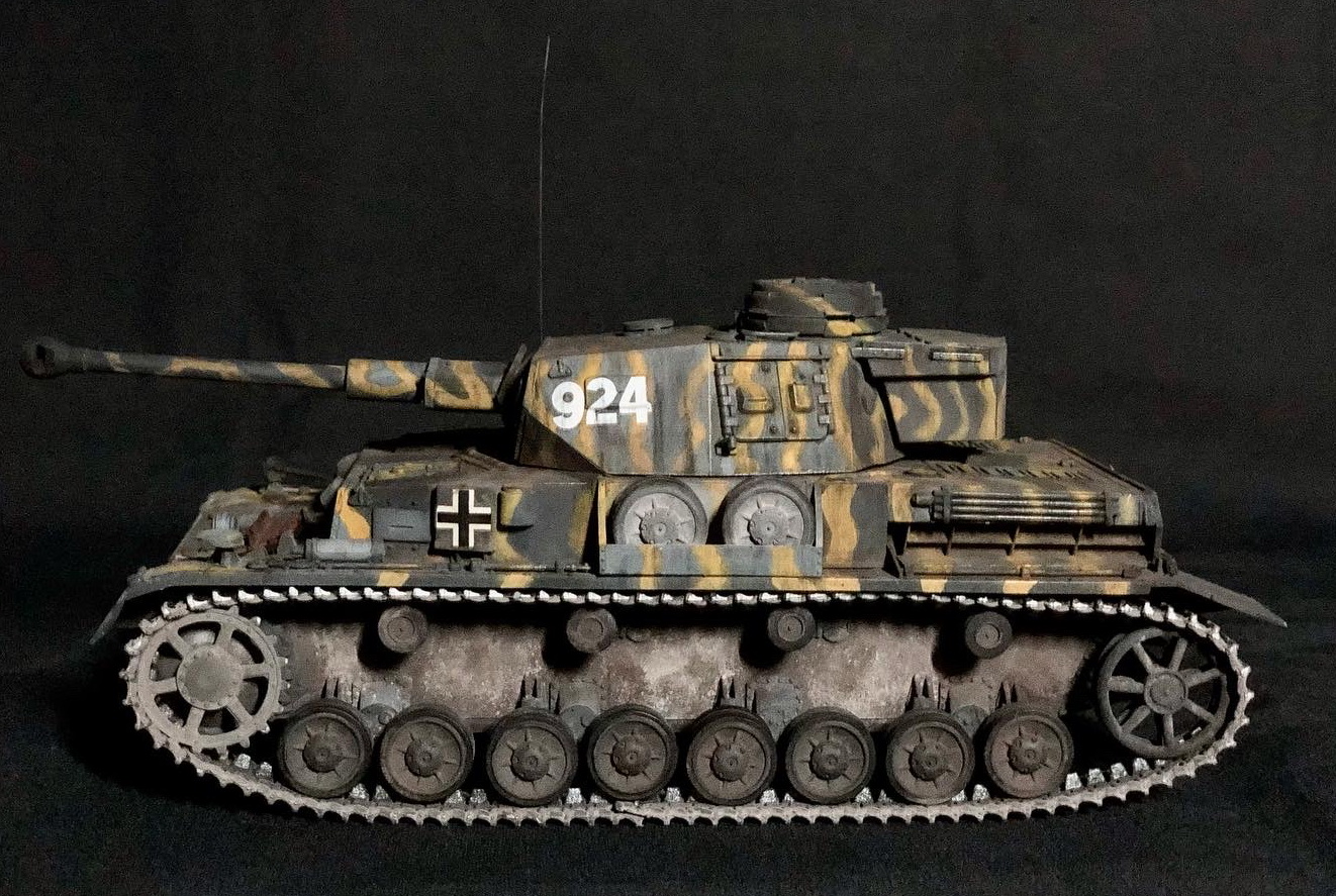 На этот раз это самый массовый танк войск вермахта времен 2й Мировой войны - Panzerkampfwagen IV (он же PzKpfw IV или просто Pz. IV) модификации Ausf.F2, собранный мною в 10-летнем возрасте в 1994 году.