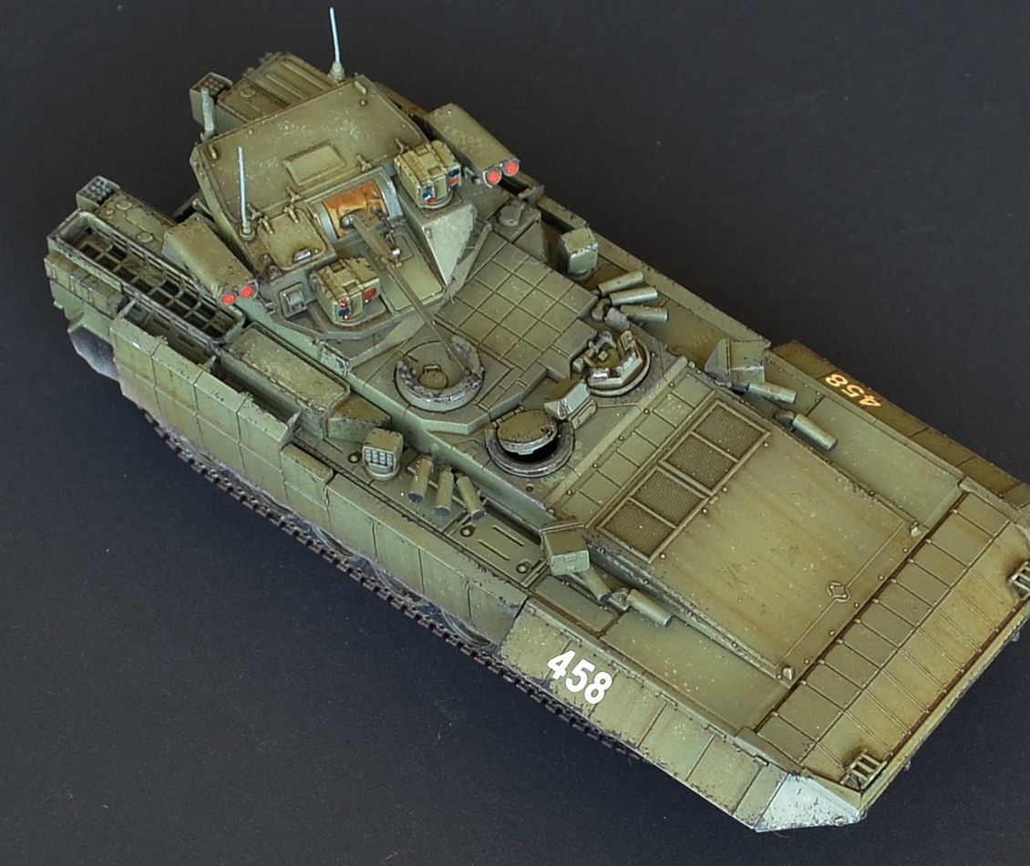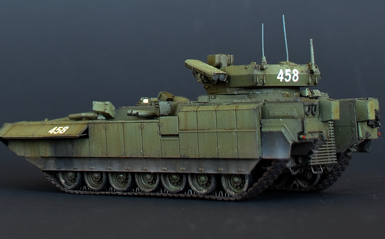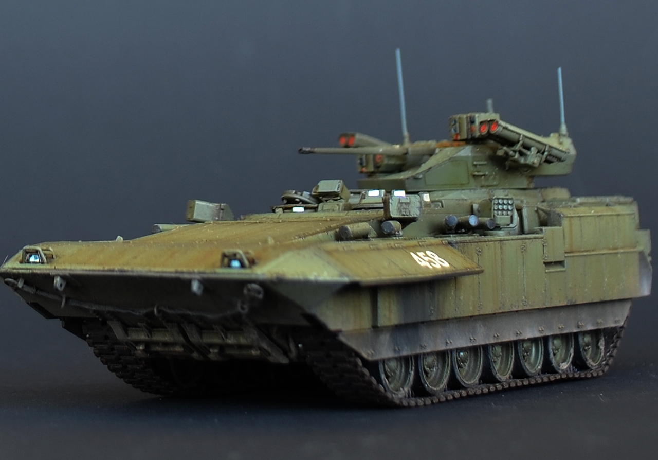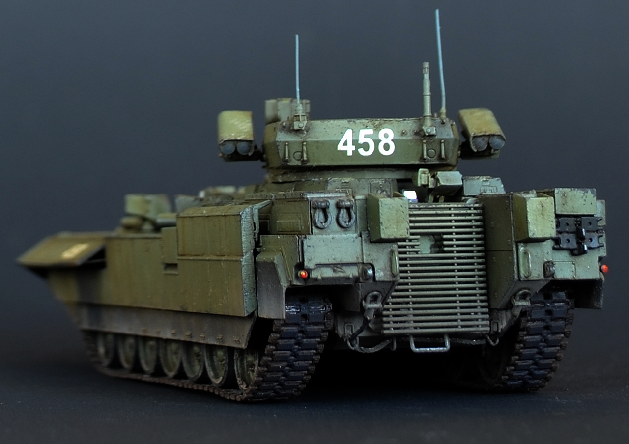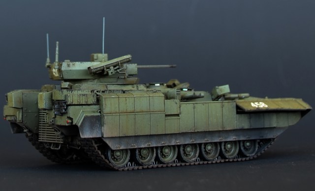 - Всем добрый день.Моя новая работа.В сборке проблем не возникло.Все отлично стыкуется и собирается.Заменил некоторые ручки на проволочные и и атены на башне поменял.Так же заменил троса.Имитировал оптику и фары.Гусенецы и катки заменены на смоляные.