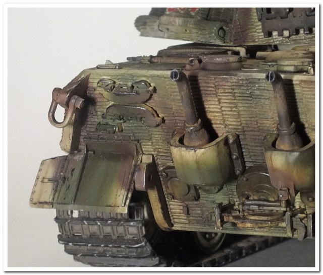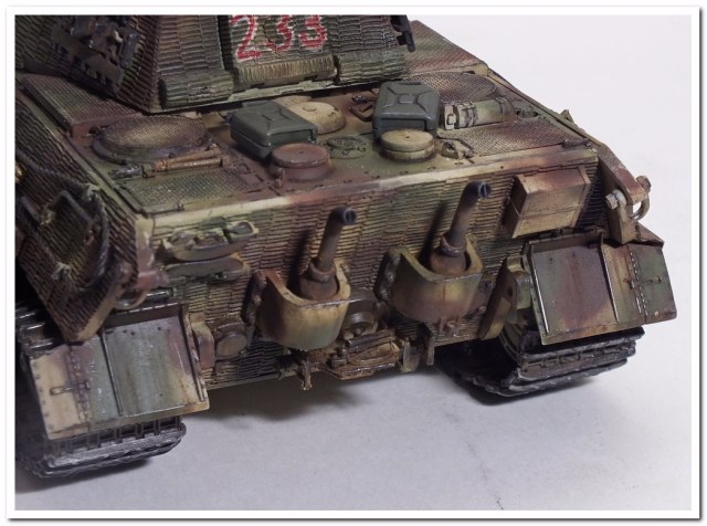 -камуфлировались ли запасные траки на башне? Из тех фото, что видел я, они явно темного-темного цвета и на червячном камуфляже и на пятнистом.