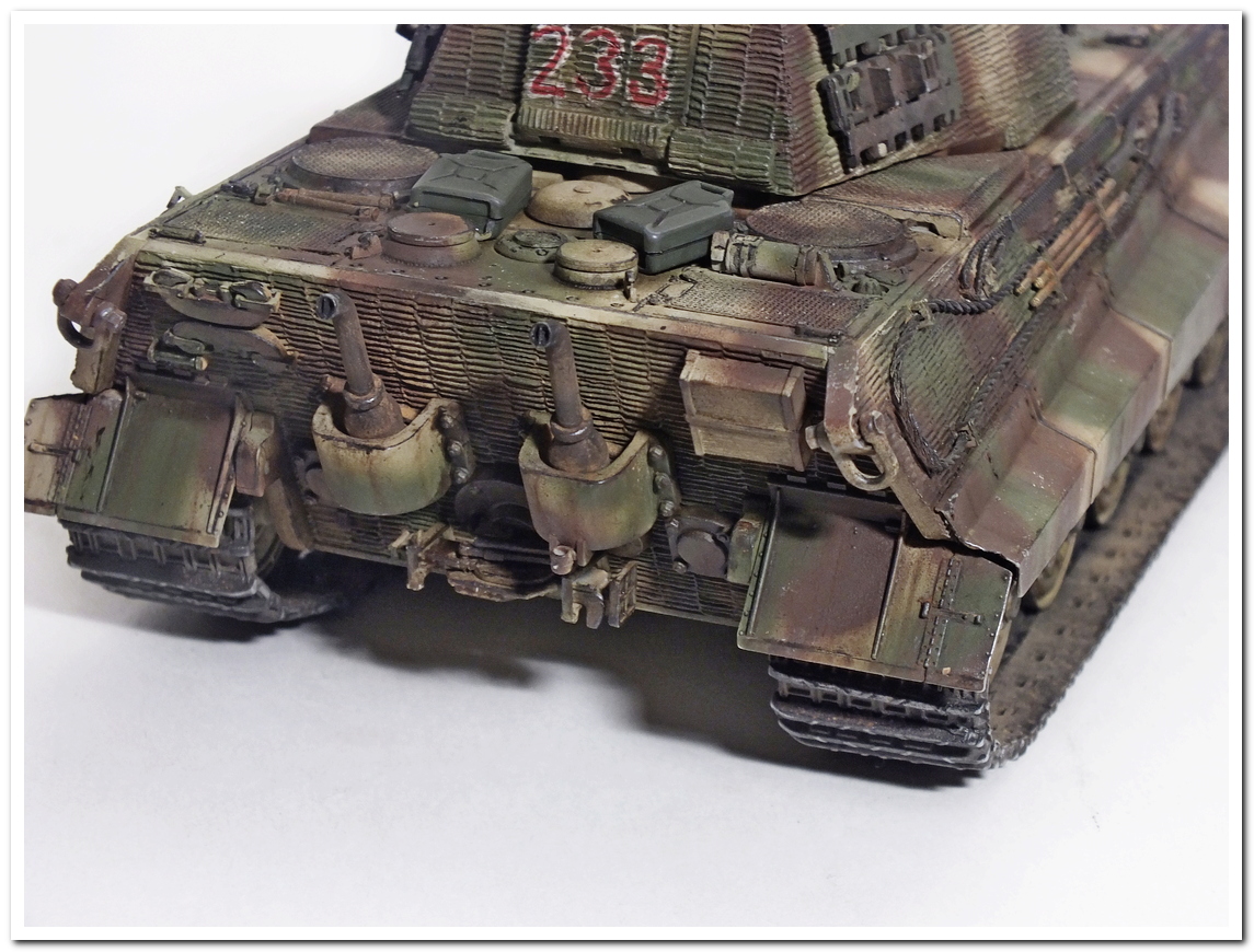 Magnum,спасибо за отзыв.Все нормально,никакие это не идиотские вопросы,большинство БТТшников об этом не знают.По поводу башни,там все покрашено,ведь она отдельно красится отдельно,просто камуфляжем так задувал.С завода до ноября 1944-го машины шли в дюнкенгельбе,соответственно с заптраками,и затем уже в подразделениях наносился камуфляж.Правда одно время он наносился и на производстве.Тогда траки вешали после нанесения камо.Если в роты приходила машина с траками,то камуфляж наносился поверх них.На фото видно покраску,но и крюков для траков нет