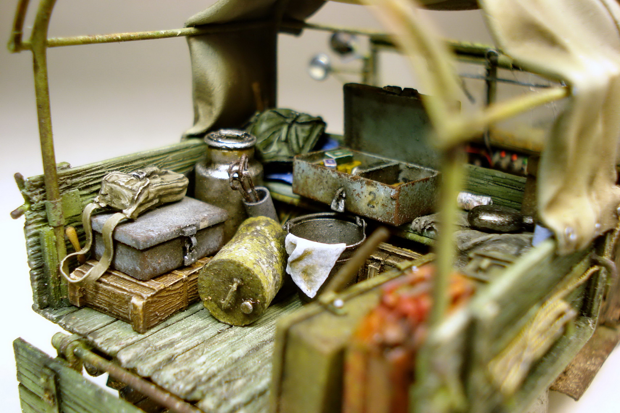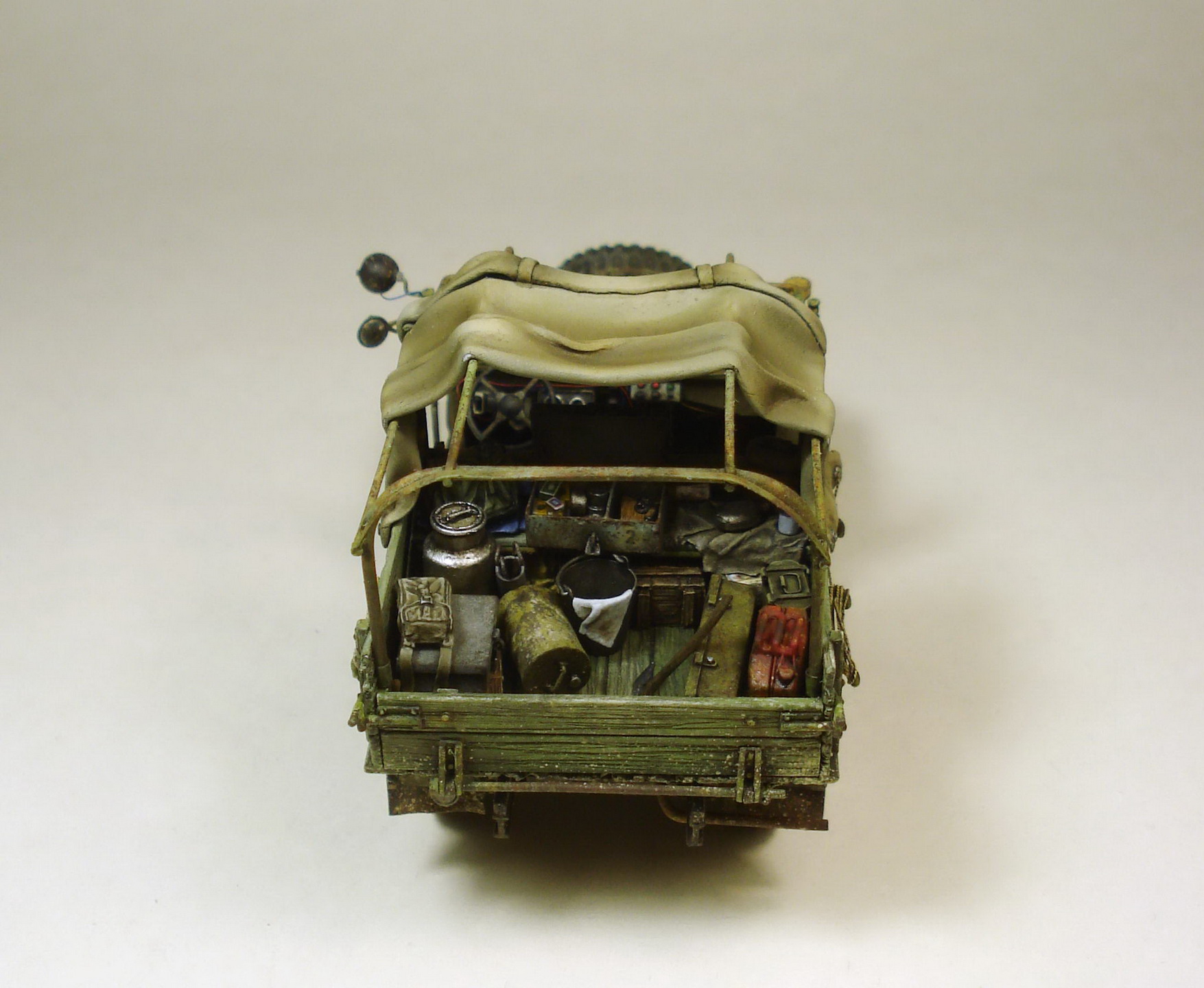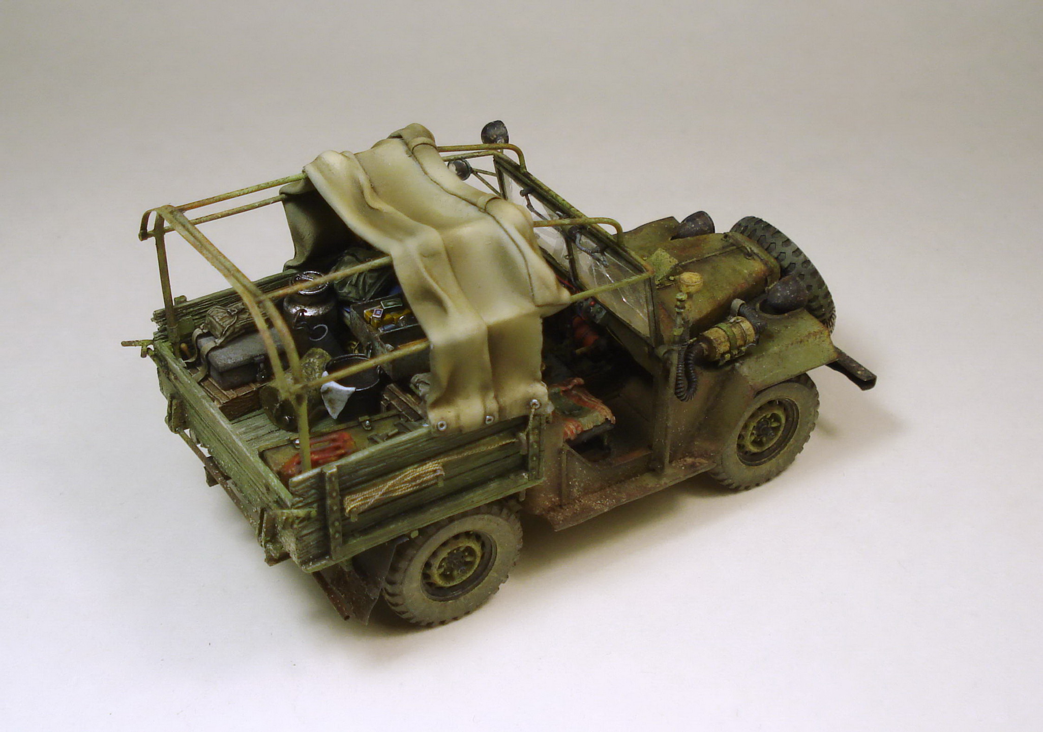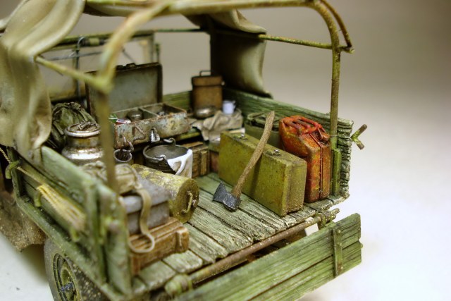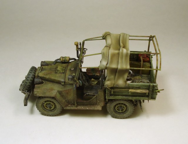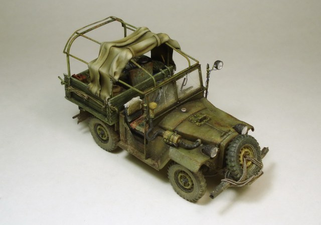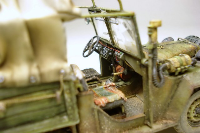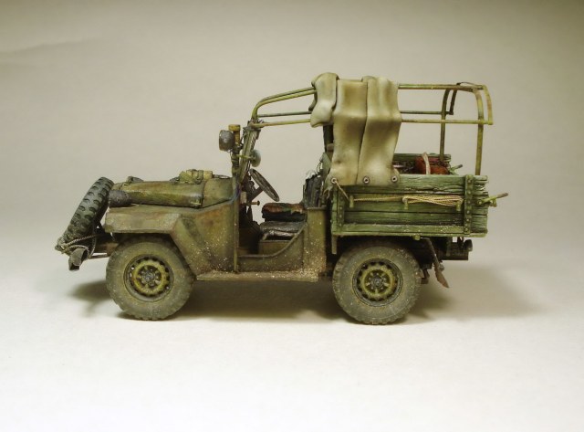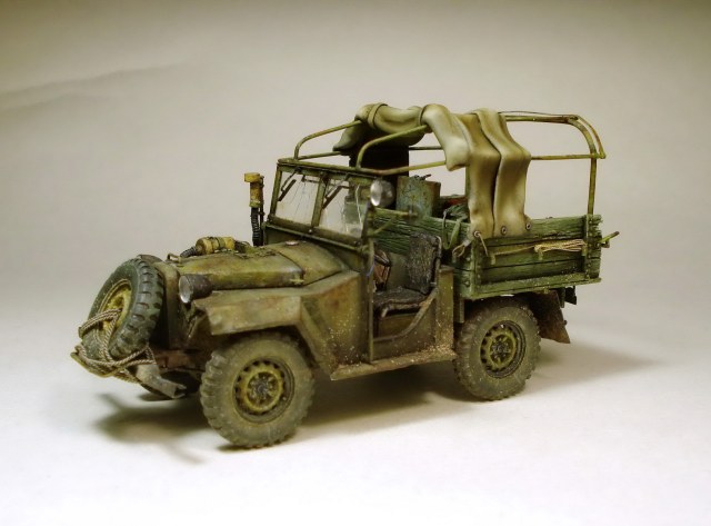 Коллеги, совесть не позволяет оставить матчасть без комментария. Матчасть там не стояла в принципе. Капот, конечно самое главное. И воздухозаборник, и сам капот не складывается как положено. Предполагается что снимается весь напрочь, петель к нему я не делал. В кабине чистое фентези начиная с органов управления до непонятной заливной горловины между сиденьями. Вобщем, я не стал пихать это в бред воспаленного сознания потому как в целом, на мой взгляд это все равно остался уколхоженный ГАЗ-67.