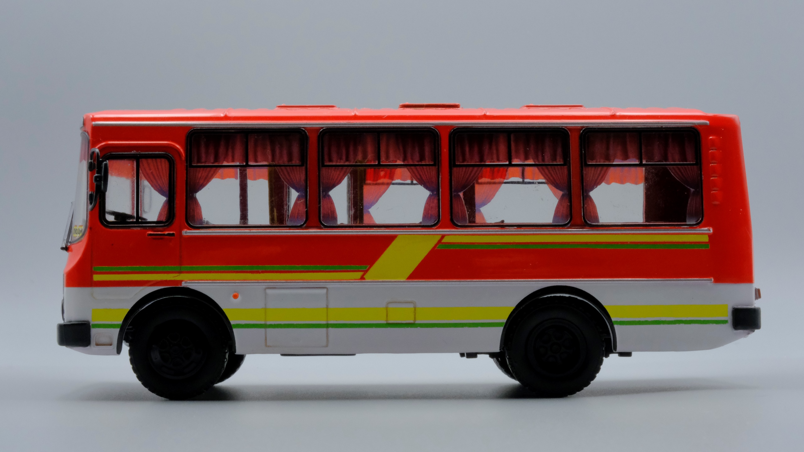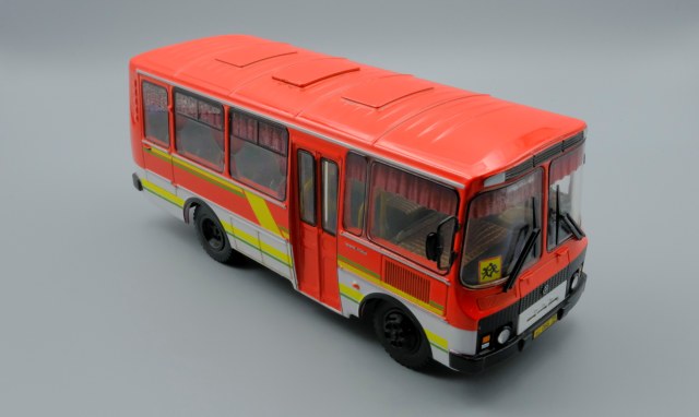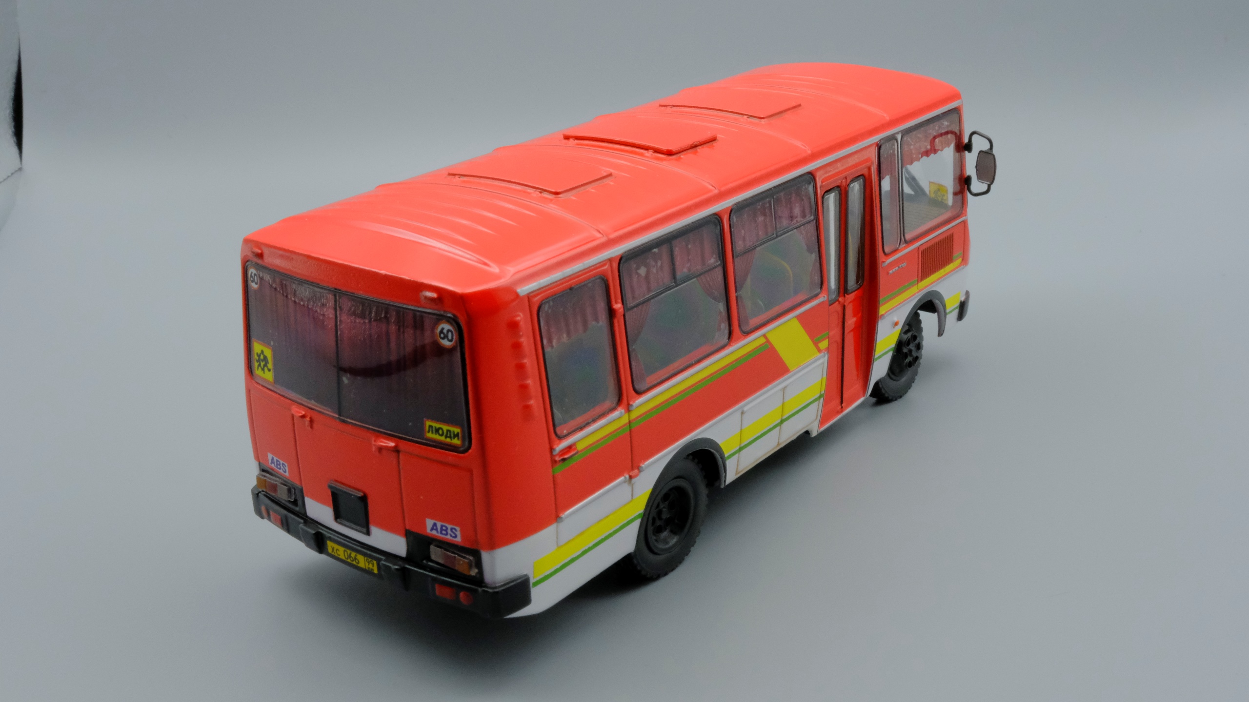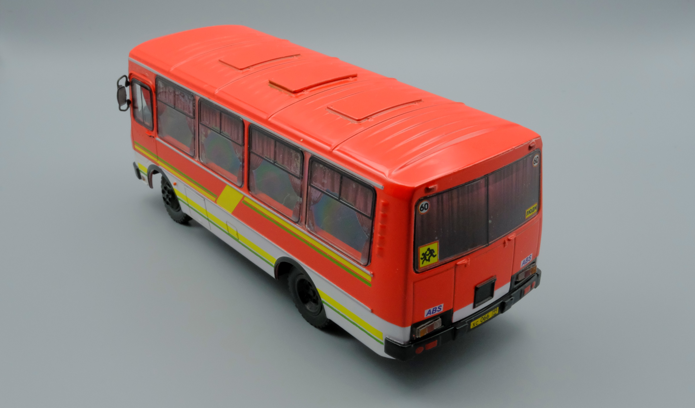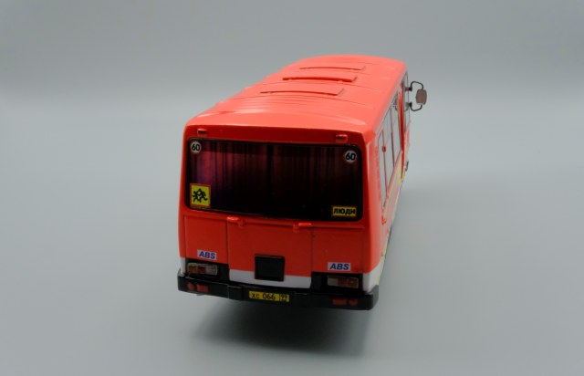 Из серии журнала "Наши Автобусы" . Были перекрашены сиденья, добавлены декали снаружи и внутри салона, сделаны поручни в салоне(к сожалению не получилось сделать качественное фото),шторки на окна и смывка в некоторых местах.