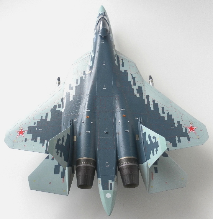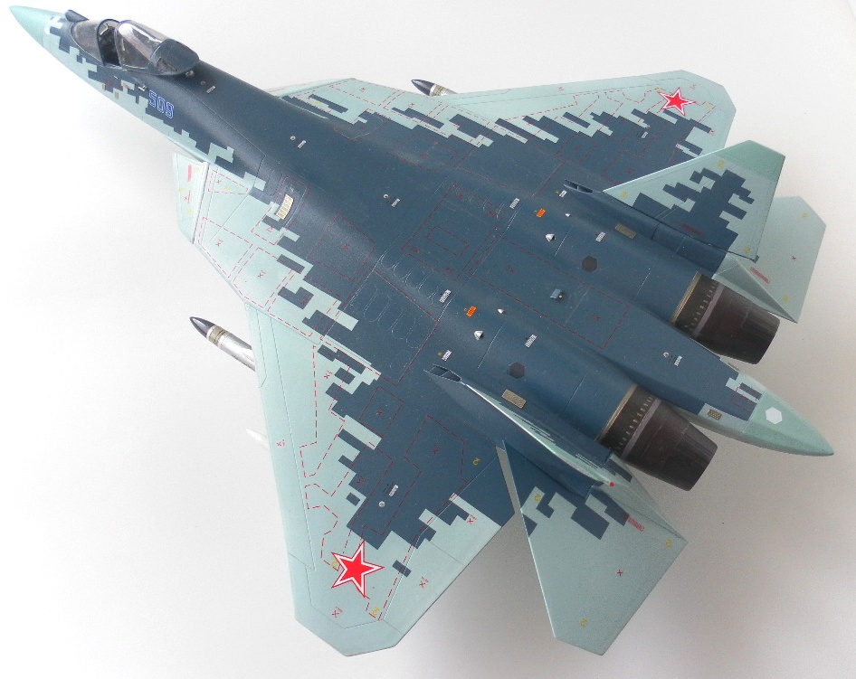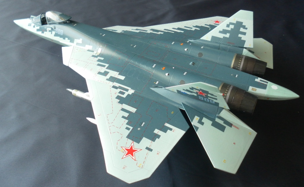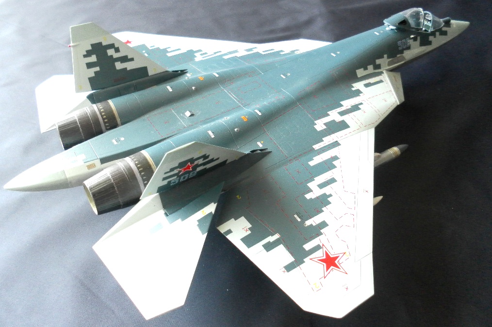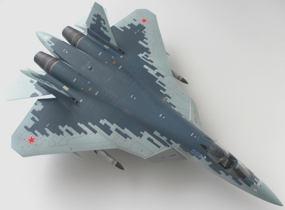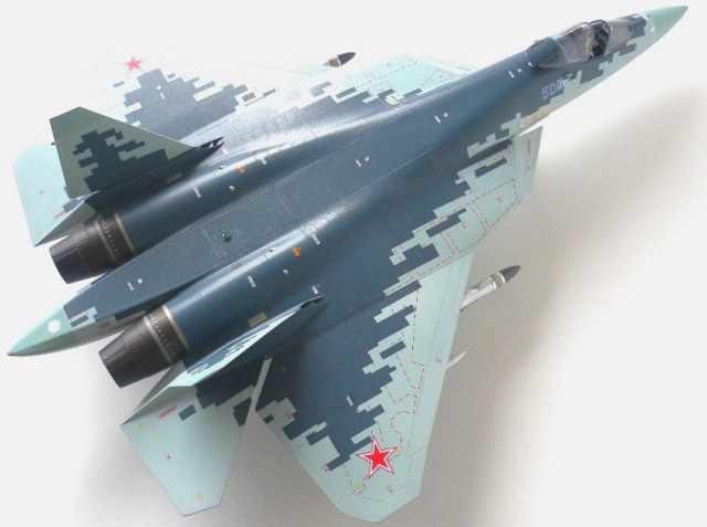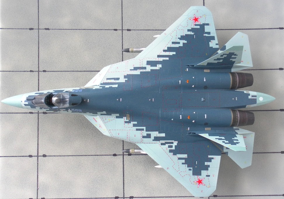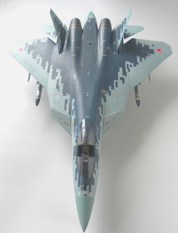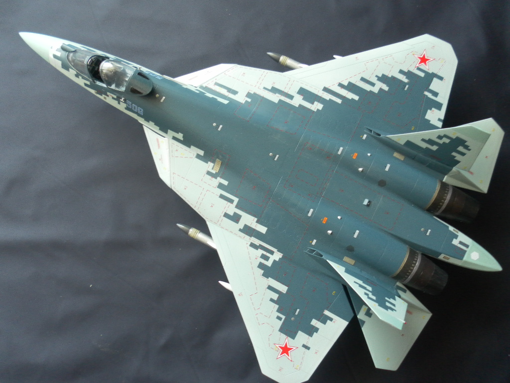 Вооружение нацеплял все, что было в коробке, Х-31 и К-77 (или Р-77). Насколько известно из источников, на СУ-57 как раз стали ставить К-77, доработанная Р-77. Ну вообщем в полной боевой выкладке.