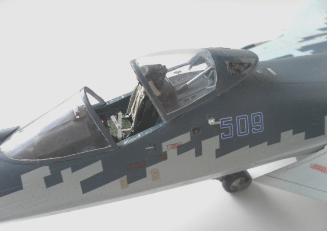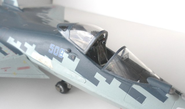 На новогодних каникулах, помолясь, дерзнул начать творить. На сборку ушло практически 2 месяца. Детали вроде стыковались нормально, ну а для тех, что ненормально есть шпаклевка и скульптурный пластилин (кстати очень так ничего вещь, удобней работать). Проблемы были с воздухозаборниками, но вроде прижились. Цвет для основной окраски фюзеляжа и антенн подбирал методом тыка.