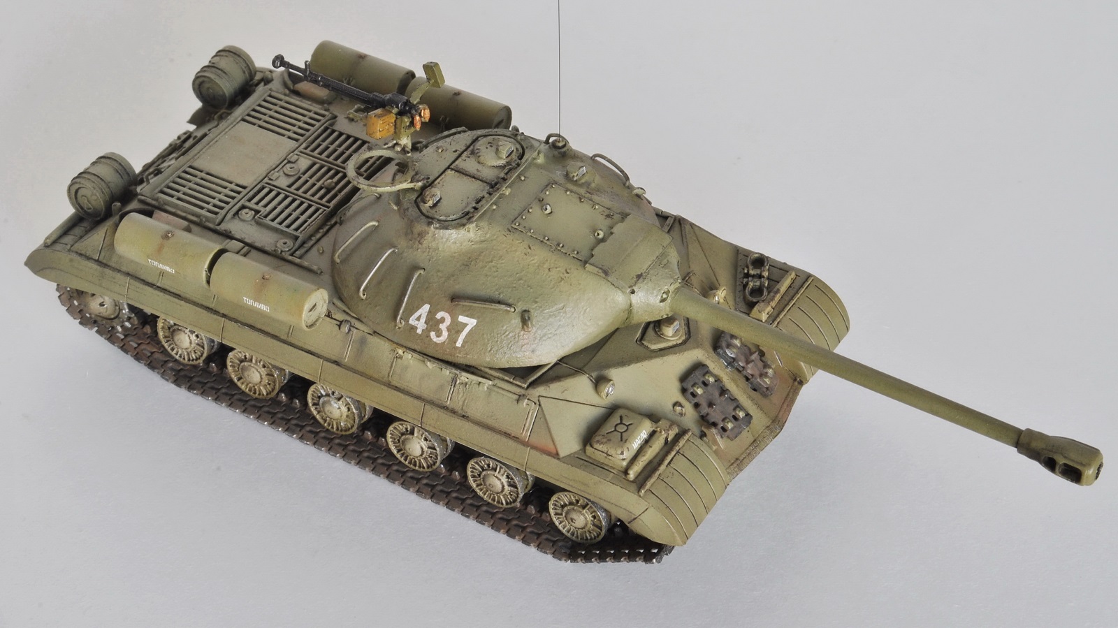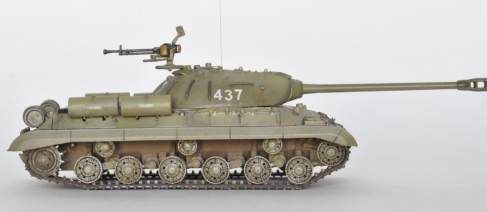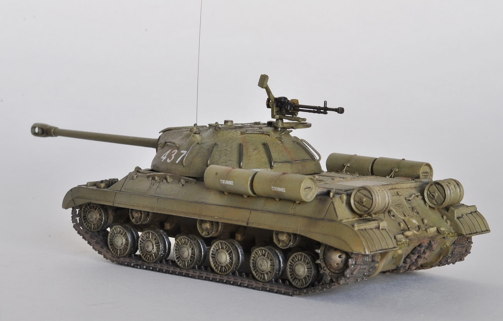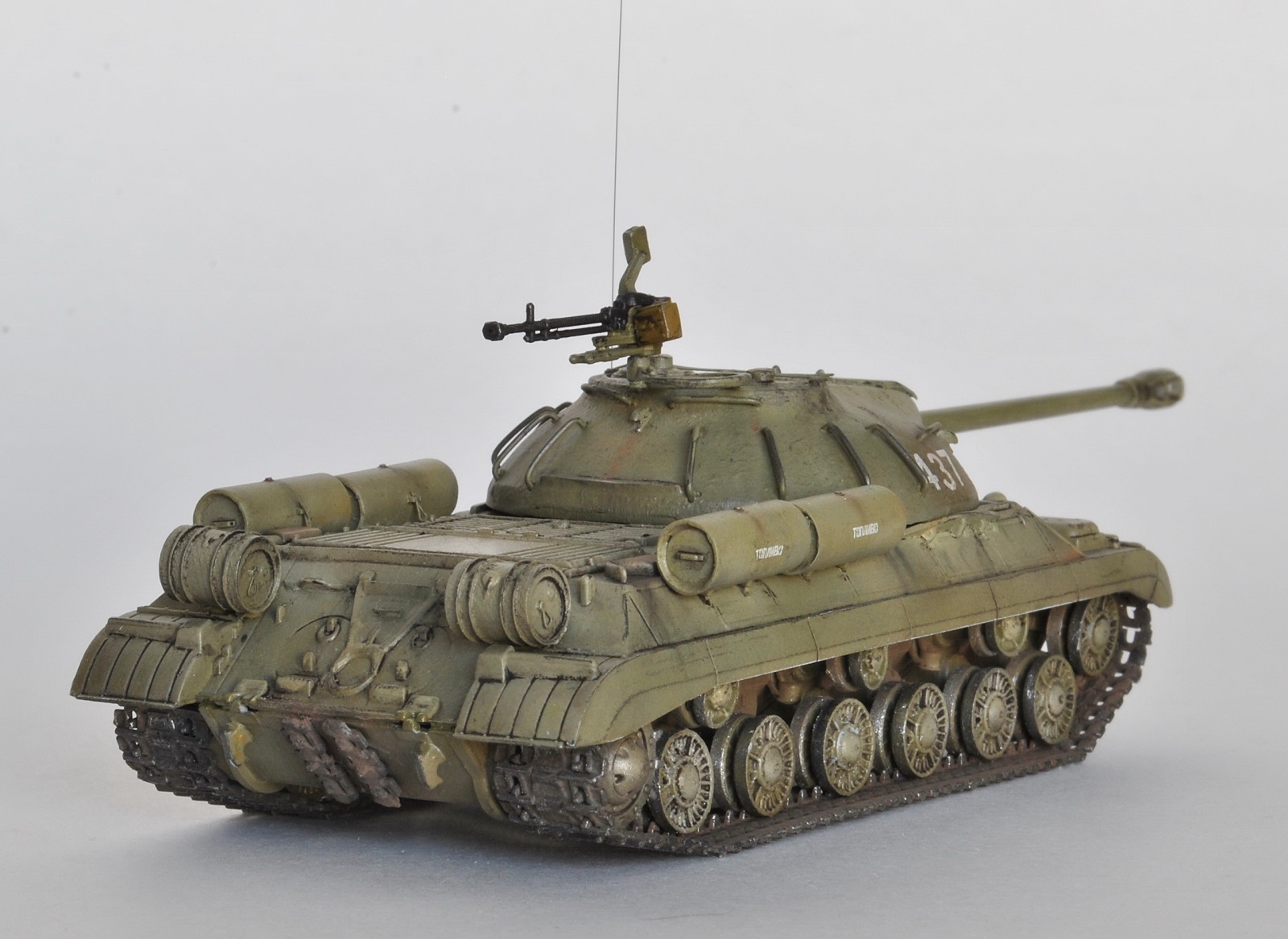 Обычно использую краски Акан и Тамия, но на этой модели была цель опробовать краску Аммо миг. В целом, результат мне понравился, возьму на вооружение для окраски послевоенной советской техники.