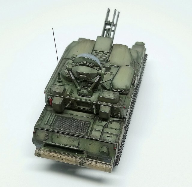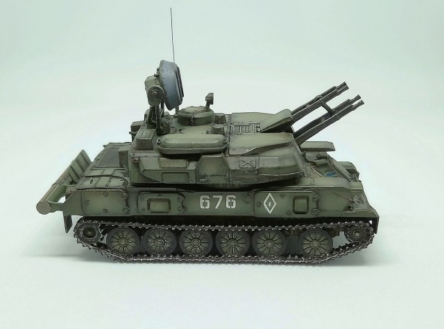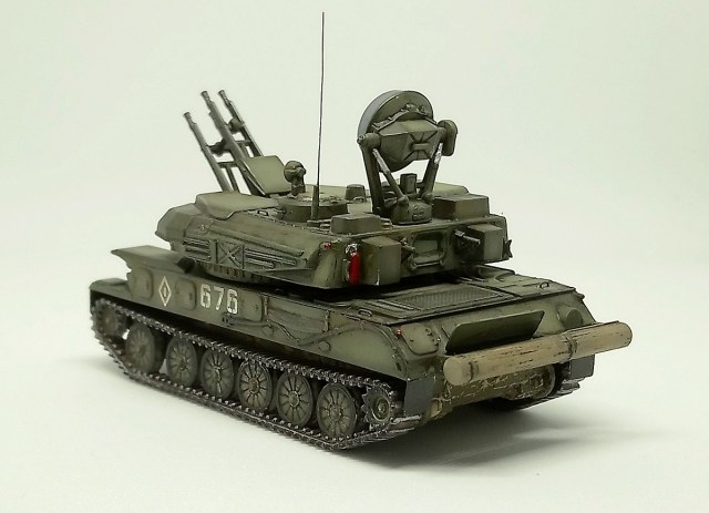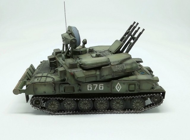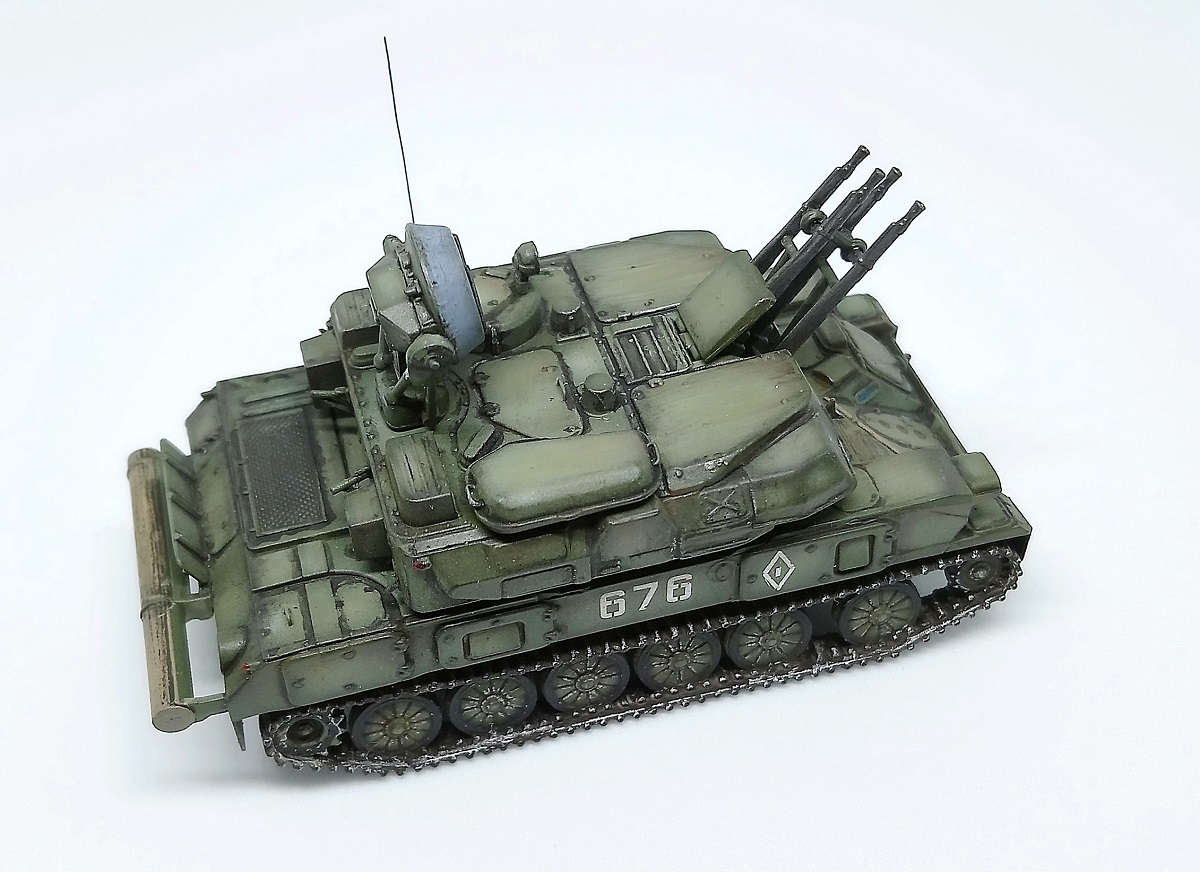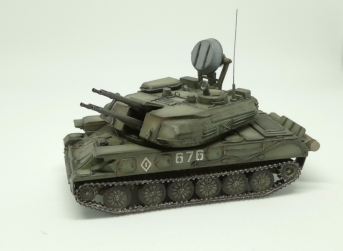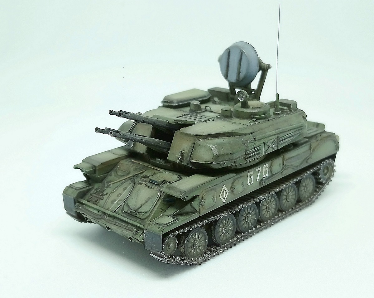 Советская ЗСУ предназначена для непосредственного прикрытия наземных войск, уничтожения воздушных целей на дальностях до 2500 м и на высотах до 1500 м с места, с короткой остановки и в движении летящих со скоростью до 1600 км/ч. Вооружена 4-х ствольной ЗУ калибром 23мм. Темп стрельбы – 3400 снарядов в мин. Наводится на цель как вручную, так и в полуавтоматическом и автоматическом режимах. В Советской Армии входила в состав подразделений ПВО сухопутных войск. В настоящее время используется её модернизированная модификация.