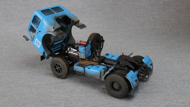 Всем привет! Попросил меня заказчик предыдущего проекта (Skoda) построить аналогичный тягач, только МАЗ-504а (для комплекта), ветеран дальнобойщик начинал свой путь именно на этой модели. При обсуждении перед работой выяснилось что фирма AVD не производит данную модель (1/43). Возникла пауза-что делать? Чрез недельку рытья в инете была найдена модель от SSM (они уже собраны), но как сказал один киноперсонаж ( это же не наш метод ). Модель была подарена ребёнку в качестве игрушки, ну и результат предсказуем, единственное утешение, что все детали в комплекте (правда по отдельности и со сломанными крепежами) а синий цвет кабины не ободран. Кабина откидная, и детализация двигателя отличная. Ну в принципе восстановить можно.