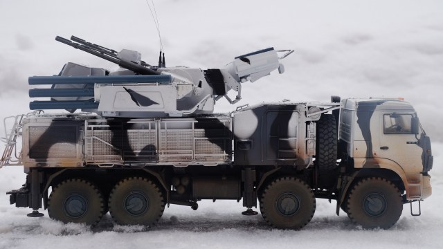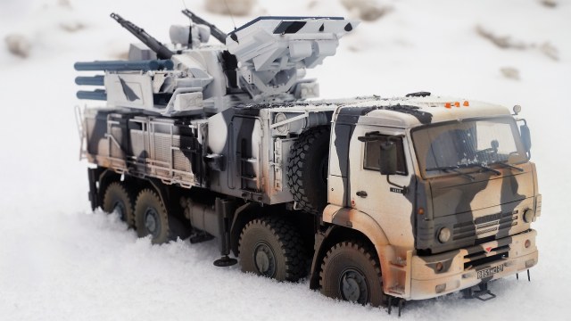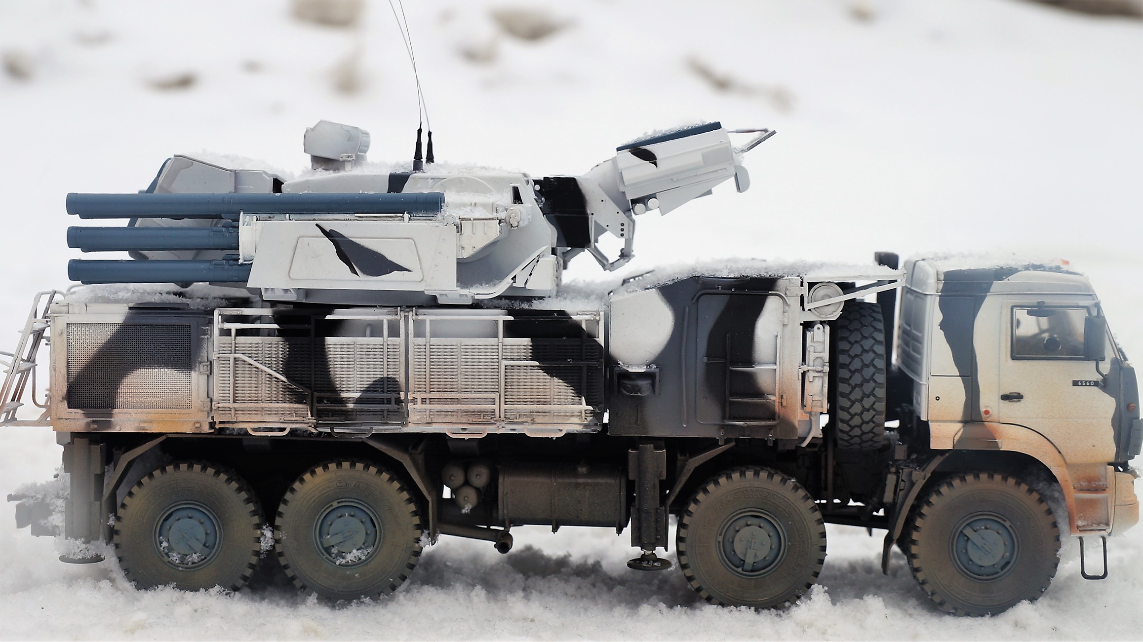 Ваш "Панцирь" посмотрел, мне понравилось. Единственное - с эффектами кмк перебор, реальные комплексы не такие застаренные, но это дело вкуса). И пушки у вас полностью черные, хз, мож так и есть, но вот например на служившей тунгуске они ближе к ган металлу (но темнее, да).