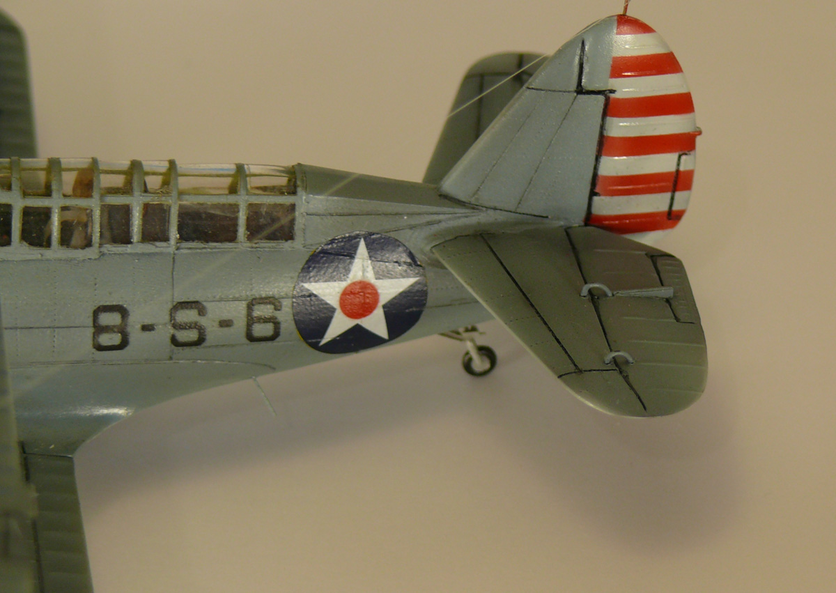 Не знаю точно, был ли в ходу уже "светофор" в годы эксплуатации этого Хелдайвера, тут вопрос к экспертам по американским палубникам, но на довоенных Баффало светофоры уже были. т.н. "светофор" так же очень украшает модельку. Ну, при виде снизу, разумеется. :-)