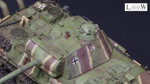 По поводу уходили ли линии камуфляжа на горизонтальные поверхности машины для меня пока вопрос открытый , т.к. есть одно фото где крыша башни имеет один базовый цвет.