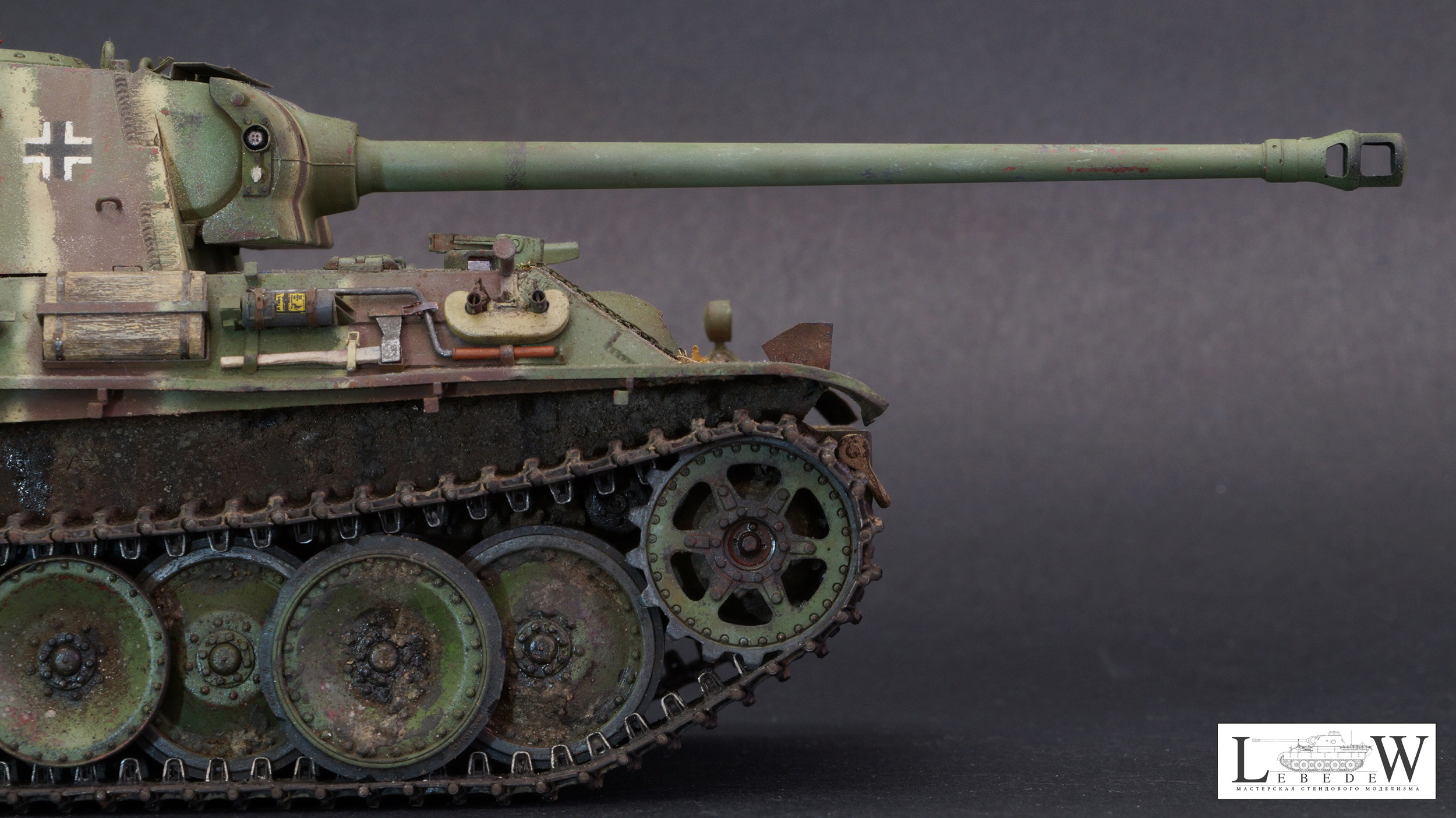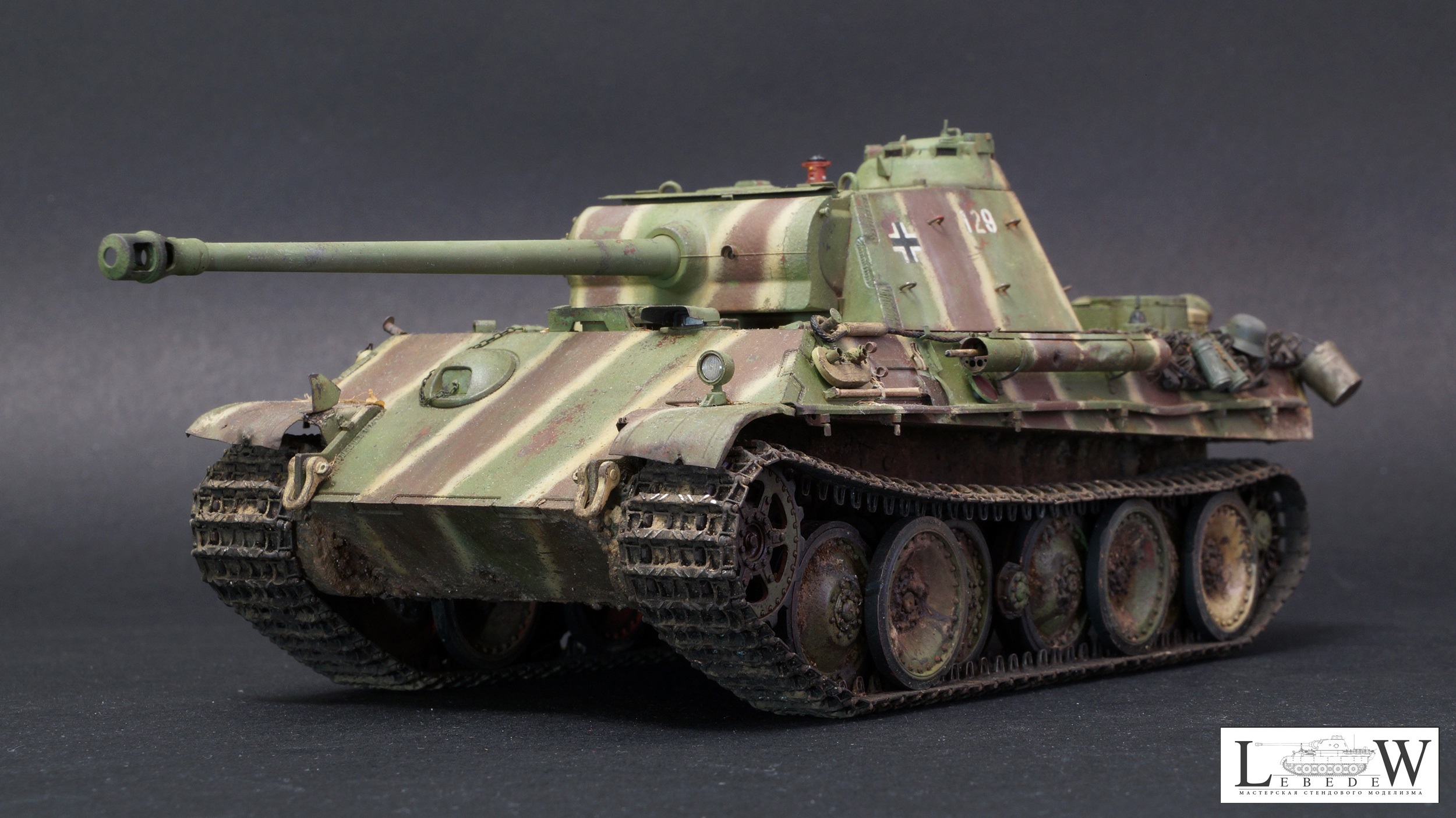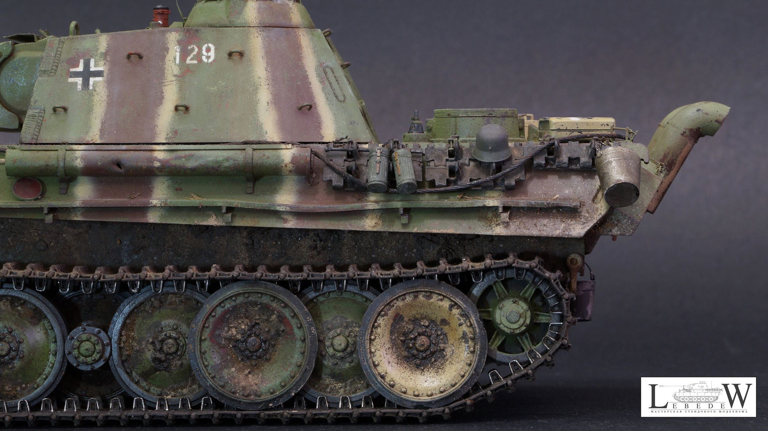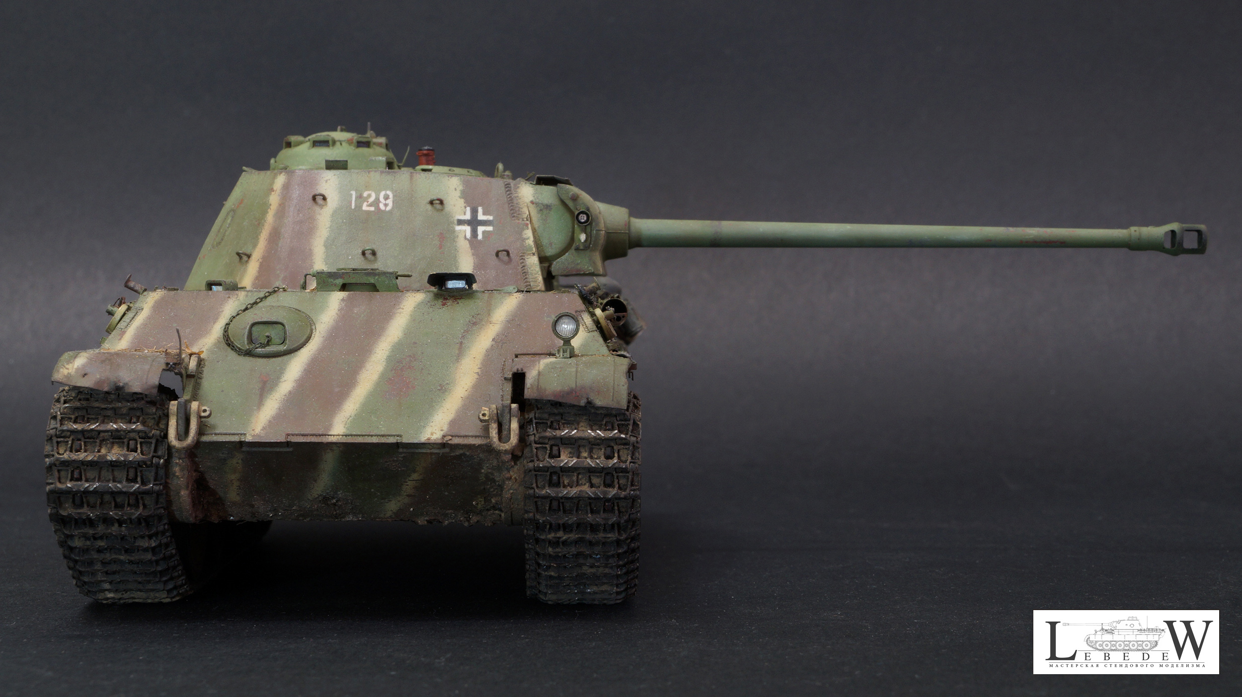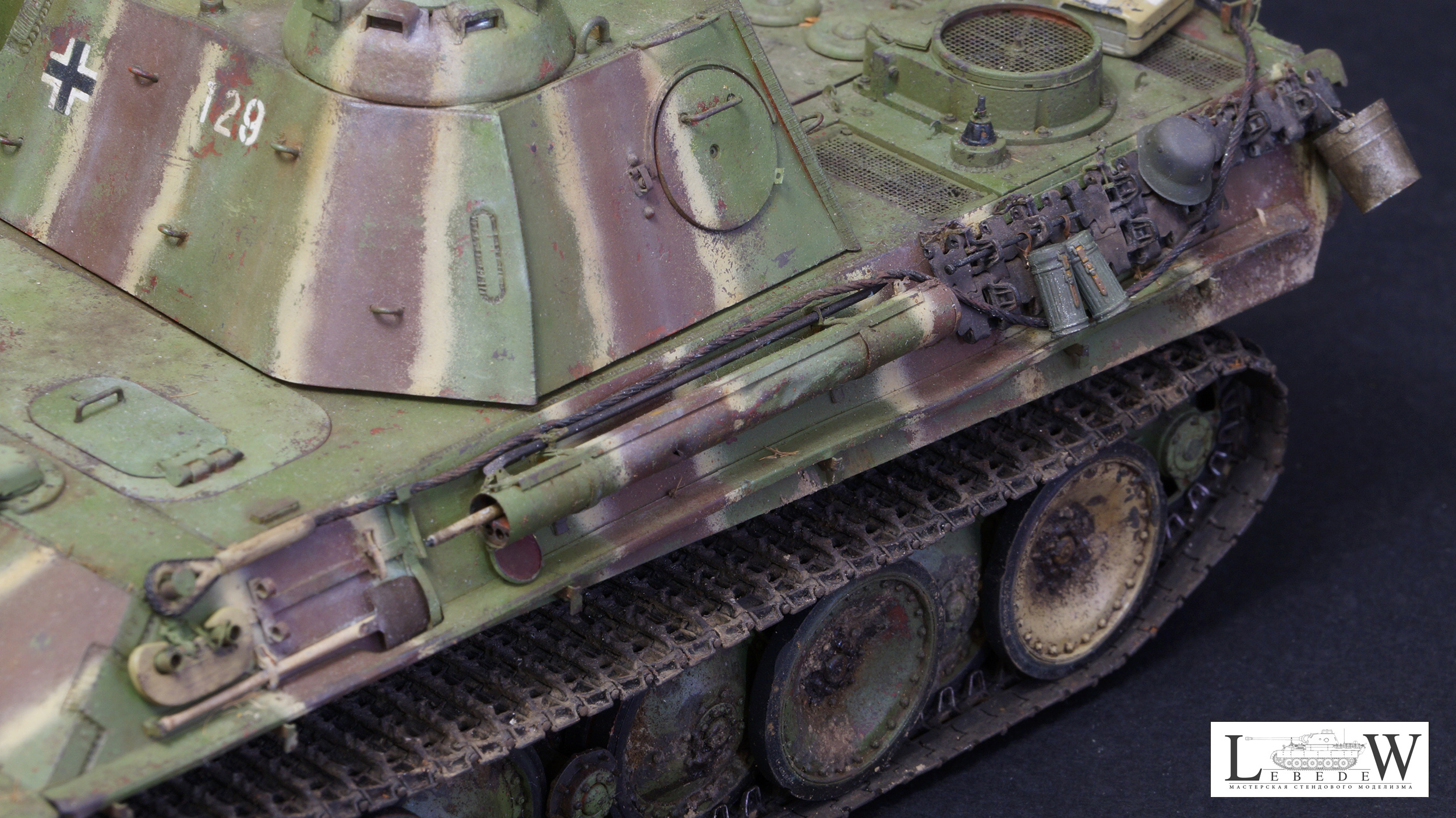 Привет Олег. Очень много хороших отзывов, пожалуй вставлю свои пять копеек. Итак, концепция. Не совсем ясна причина появления катка без бандажа в середине строя. Обычно в таком состоянии они только после горения. Оголенные ступицы, ладно, то такое. Фишка такая. Ящик ПНВ почему желтый? Все фото подтверждают их в цвет машины и с совпадающим камуфляжем. Полосы. MNH чем ближе к концу войны, тем чётче рисовал полосы. И из всех «полосатых» они больше других соблюдали интервалы, пропорции и тд. То есть финальные машины максимально походили на эдж. На модели полосы довольно хаотично расположены, имеют рваную границу желтого, интервалы не соблюдены, особенно это бросается в глаза на башне. Следующее, это крыша. Уже ж 21 год, а не 07, уже есть фото доказывающие наличие полос на крыше боевого отделения и моторного. Странно игнорировать их наличие. Далее, ванна ниже уровня спонсона всегда несла камуфляж аналогичный с бортами. То есть полосы продолжались как минимум до уровня катков. Никакая грязь не забивала ванну настолько, чтоб яркие перепады между светлым и темным не читались. Этому есть подтверждения. Ствол орудия почти всегда камуфлирования с завода либо непосредственно в части. Иногда на совершенно новых машинах можем видеть ствол в серо-чёрном термогрунте, однотонно-зелёным никогда. Катки почти всегдаокрашивались шахматно-хаотично. Примерно 50% окрашивались в коричневый, половина в зелёный. Иногда один-два желтых. Чем ближе к концу войны-тем желтых меньше. По деталям. Странно выполнен отопитель. Вояджер даёт великолепно эту деталь, но на модели почему-то изкоробочное избыточно толстое кольцо, ну и так далее , по отопителю много вопросов. Сетка правая. При хорошей детализации бросается в глаза отсутсвие переплетений по окружности. На макро это очень видно и сильно простит модель. Тубус. Внешне выглядит неплохо, но внутренняя его часть не верна, от слова совсем. Отверстия для антенн не соответствуют ничему, кроме фантазий разработчиков травла. «Лягушки» шанца переразмерены. Никогда по правому борту они не лежат на полке брызговика. Петли для камуфляжа на башне избыточно толстые. Пластины детекторов газа так же излишне упрощены. Барашки на них всегда смотрели вниз , кроме фото музейной машины. В общем оценки ставить никакие не буду. При том, что MNH Пантеры очень хорошо отсняты, по ним в изобилии информации, модель сделана то ли в спешке, то ли в отсутствии желания воссоздать прототип.