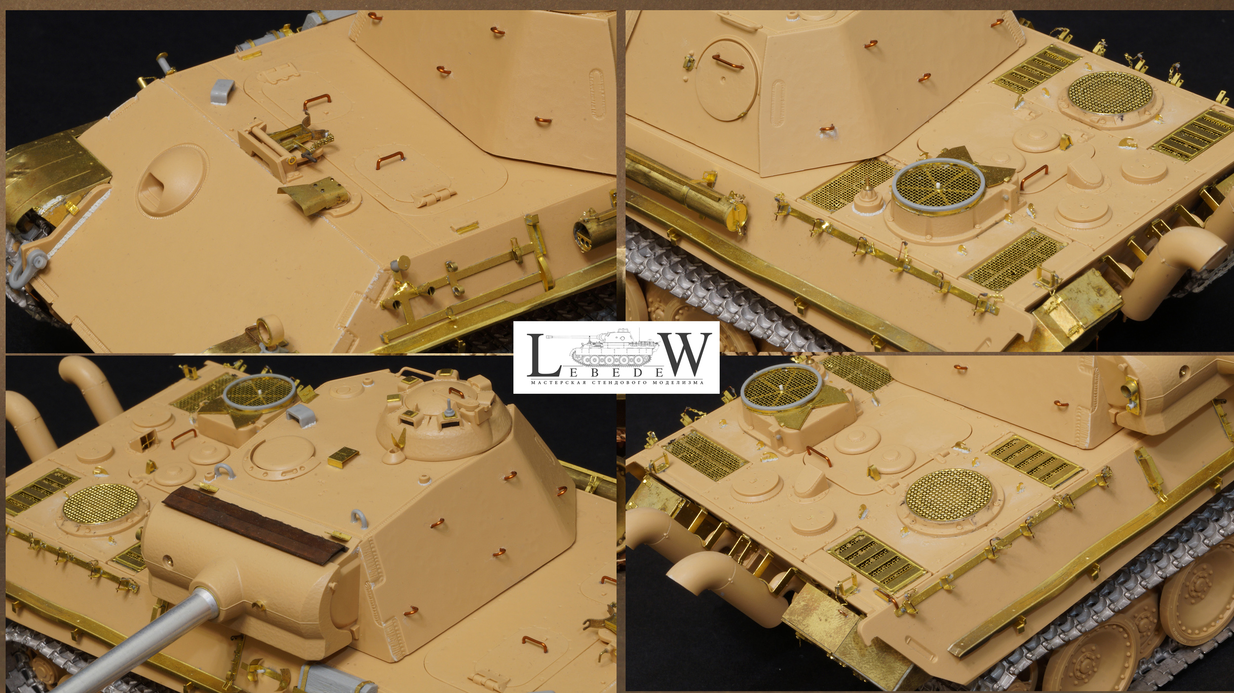 Олег, техника исполнения, окраска - тут 100 из 100, но поскольку это "Пантера" и многие вещи я сходу вижу, по матчасти конечно тут много огрехов, причём какие-то явные: например, лобовая плита башни явно как составная выглядит, хотя была литая и... газорезки не было на торцах плит, барашки в газоанализаторах снизу были а не сверху... да в общем, в целом - так скажу: главное тут зло - это травление от вояджера. Прям смело почти в любой элемент покажи (не надо в фиксатор ствола и в опору домкрата
