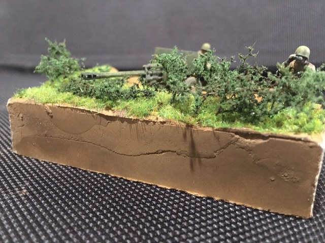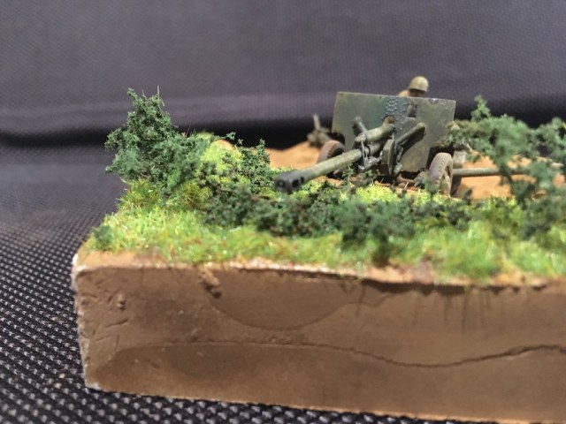 Изкаробка, из доработок только ствол рассверлил. Покраска - акрил от зип-маркет, смывки и фильтры от него же. Диорама - гипс + пигменты + трава от старого набора "дом из глиняных кирпичей". На кустарник порезал деревья (по-моему от AMMO-Mig).