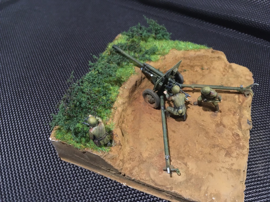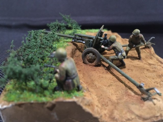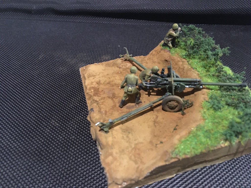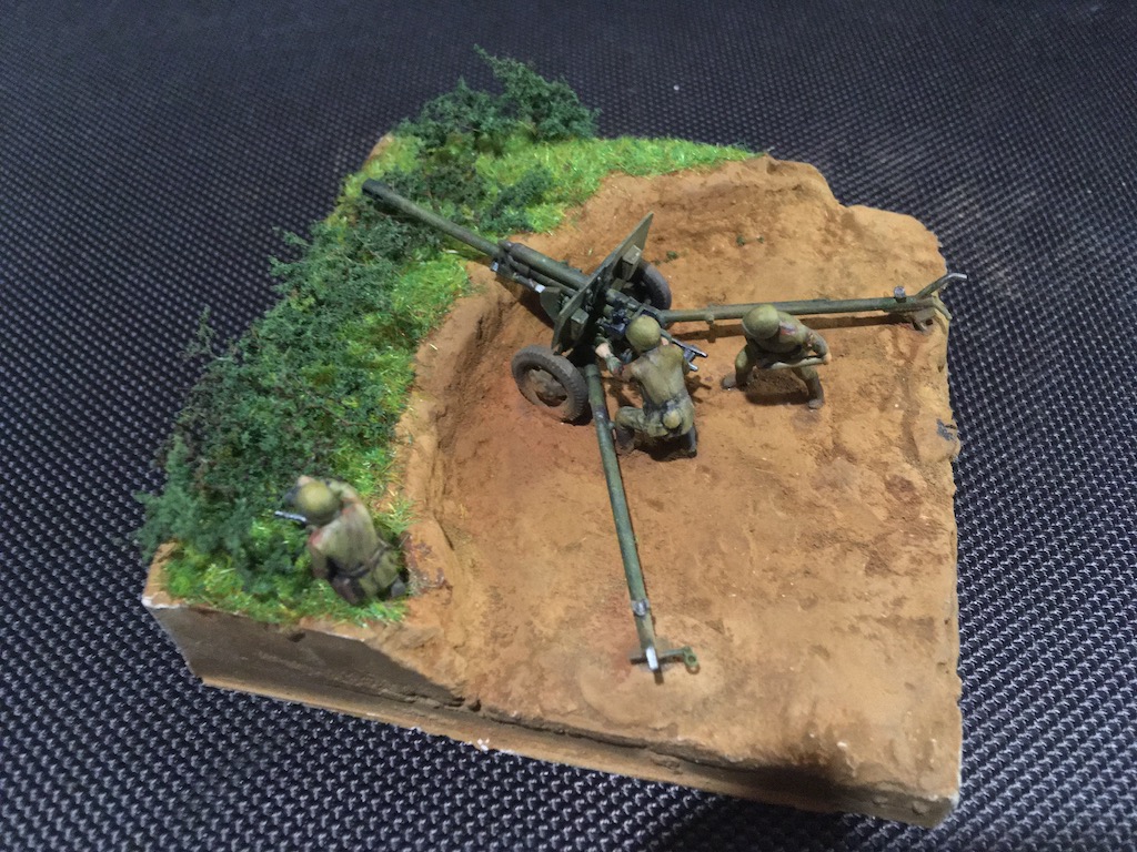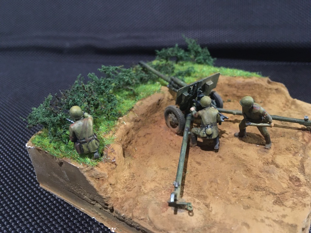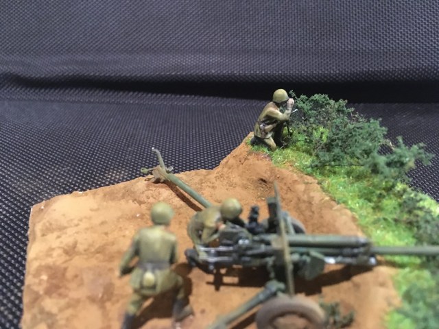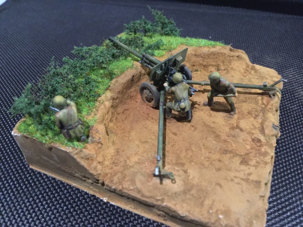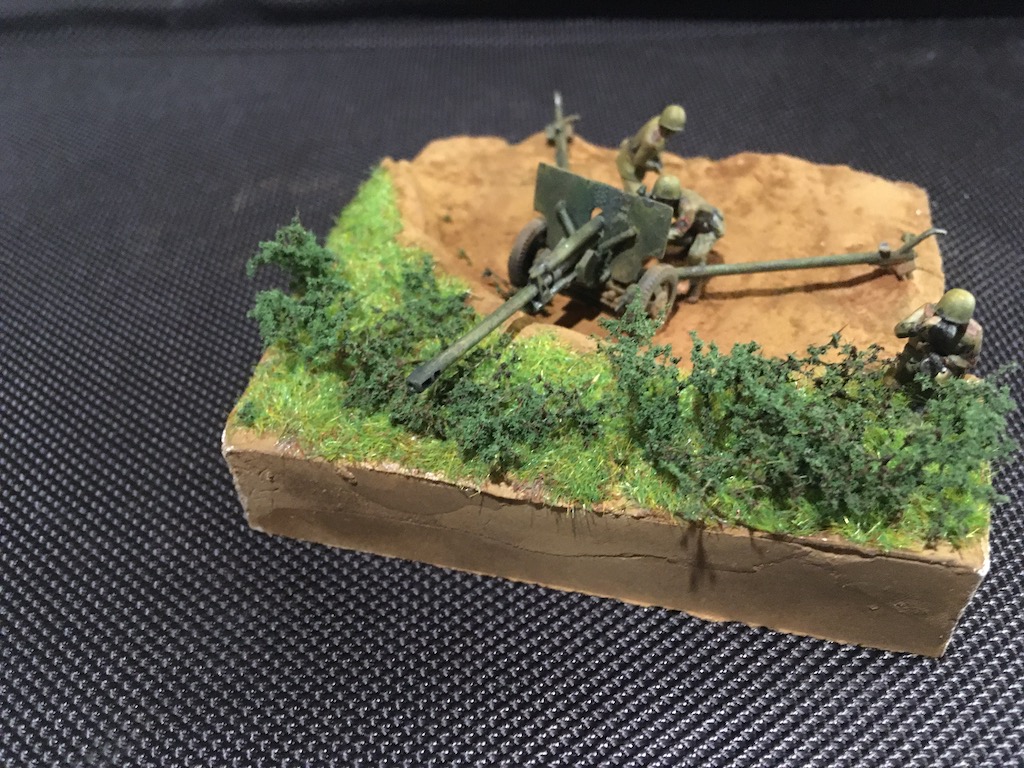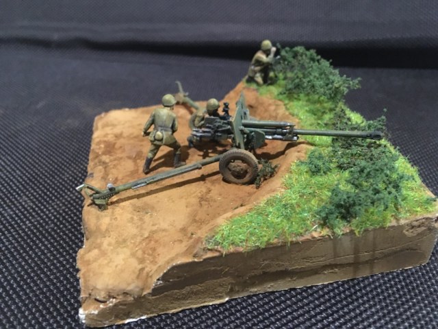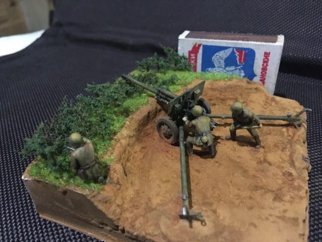 Первая моя попытка сделать диораму и первый опыт покраски фигурок. Набор - всем известная Звезда в 72м масштабе для настолки.