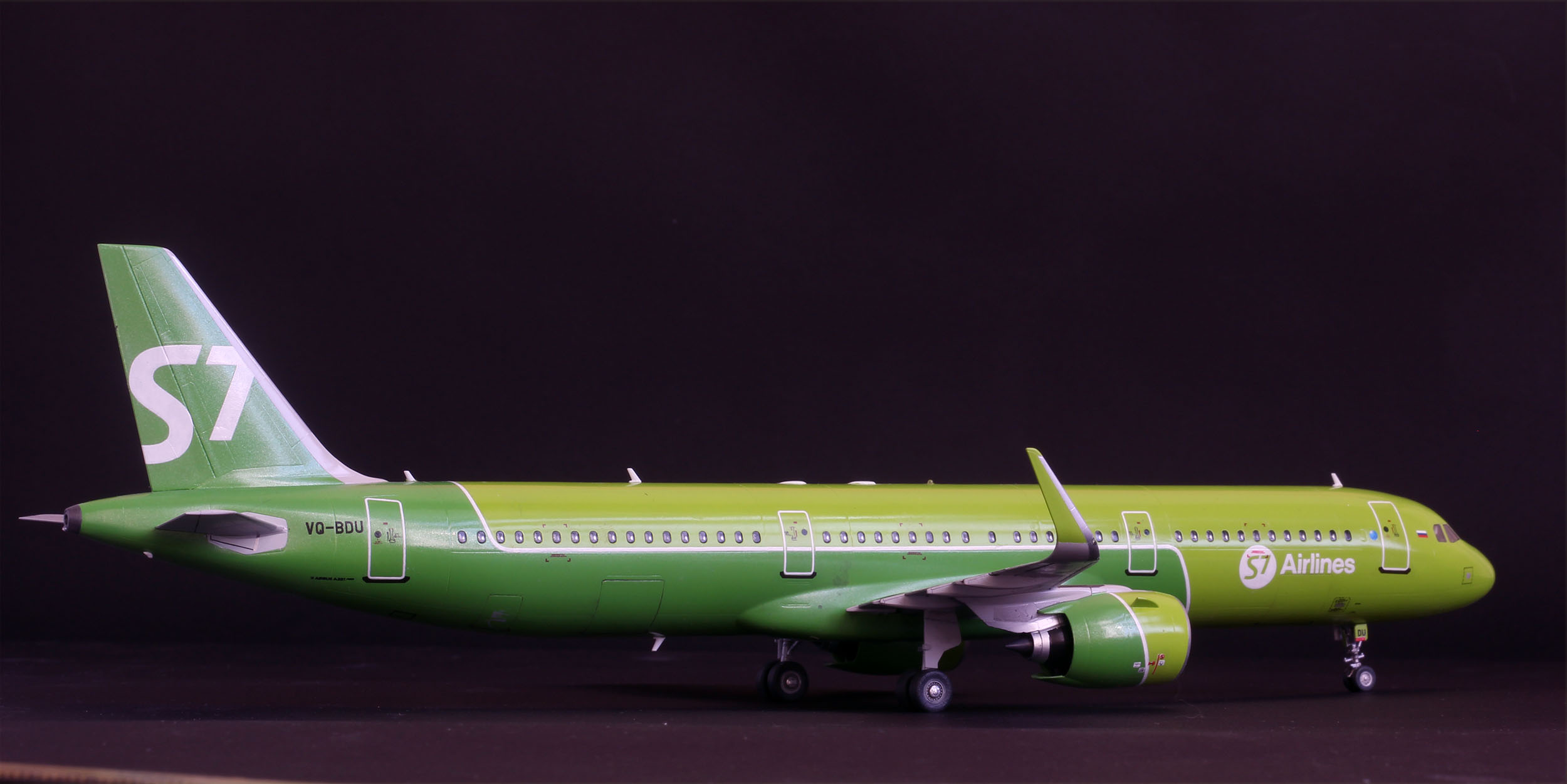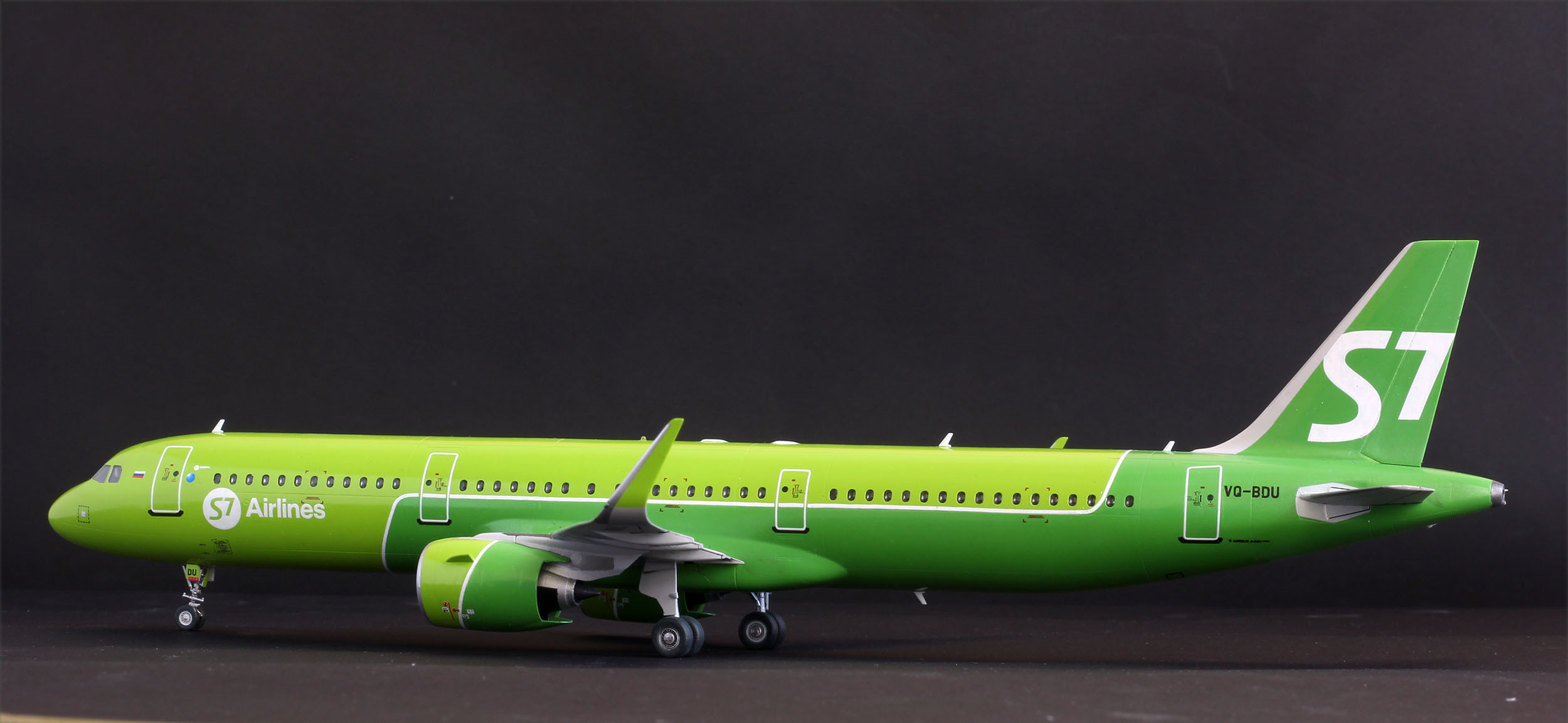 Приветствую. Хочу представить моё видение новинки А320neo. Я его конвертировал в А321neo, использовав фюзеляж от а321. Окраска аэрографом, химия mr.color Декаль ascensio@list.ru , колеса от Арма-моделс Касаемо самого пластика, в наборе заменен литник с двигателями, которые в отличи от модели реввел имеют нормальное членение и по сути и PW, и LEAP выполнены шедеврально. Также более четко стыкуются половинки стабилизатора. Крыло унифицировано с CEO и имеет два варианта шарклет. Другие колеса на литнике с фюзеляжем. При выборе модели ревелл или звезда, я отдам свое предпочтение в пользу отечественного производителя. Кстати, модель от ревелла есть в моих моделях A321neo S7 VQ-BDI