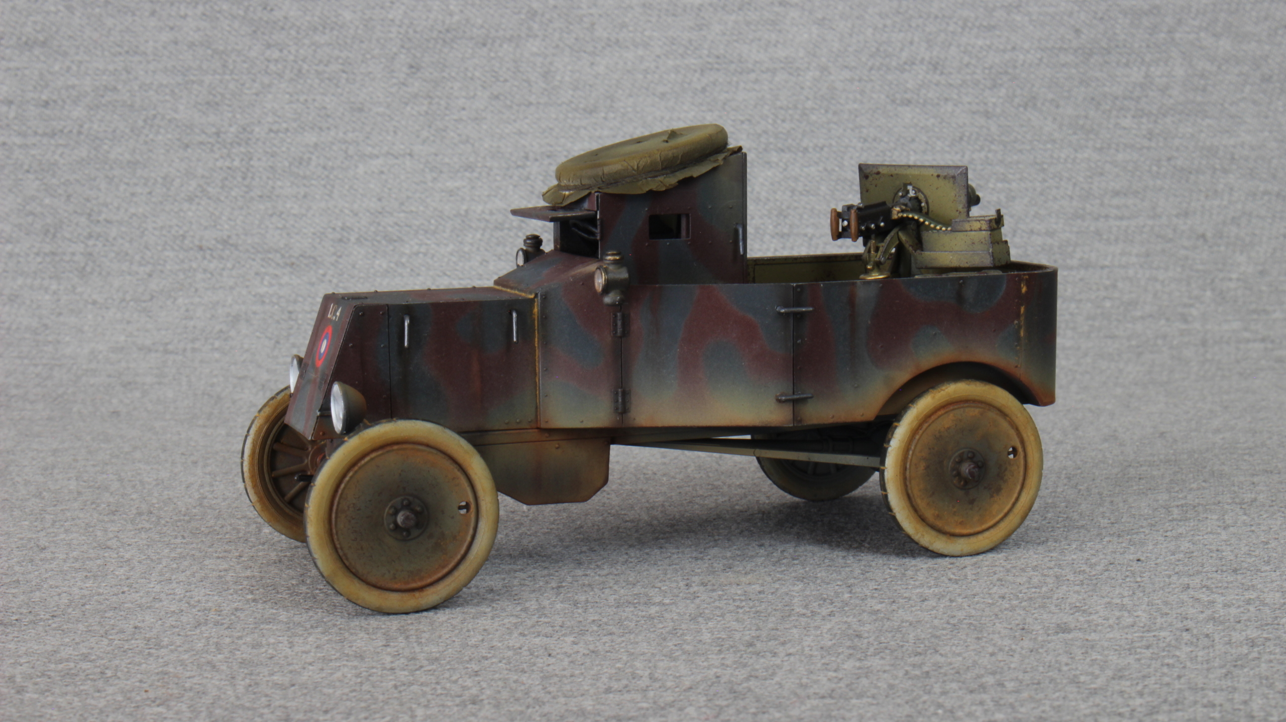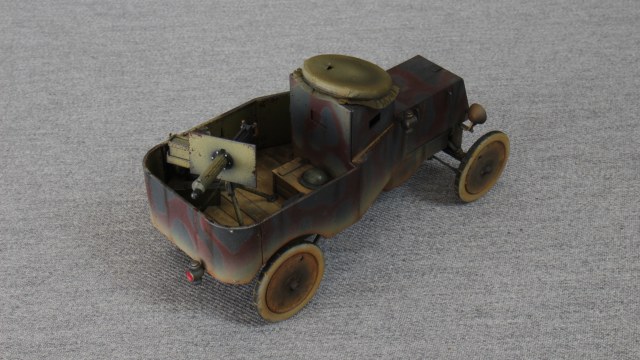 Всем привет! В принципе не планировал строить этот броник, но тут как то посетил на нашем рынке модельщиков, в магазине не было нужной краски, поехал туда. Краску взял, а рядом мужичек стоит и продаёт эту модель за 500руб. ну думаю чё не взять, сбил ещё полтинник (за открытую коробку), тут же прикинул, у меня же есть один FordT- вот и будет ему пара. Сборка не сложная, есть вся нутрянка, кроме сиденья ( хотя для чего она , всё равно всё под бронёй), ну раз есть, буду делать с возможностью показать. Добавил в кабину сиденье, винтовку, каску, котелок, да на двигатель свечи и провода к ним. В кузовок так же подкинул барахлишка, запаску на крыше накрыл, на шинах нарезал протектор. Вот и всё. Краска, лак, смывка TAMIYA, пигменты ZIP. Ну вот, как-то так.