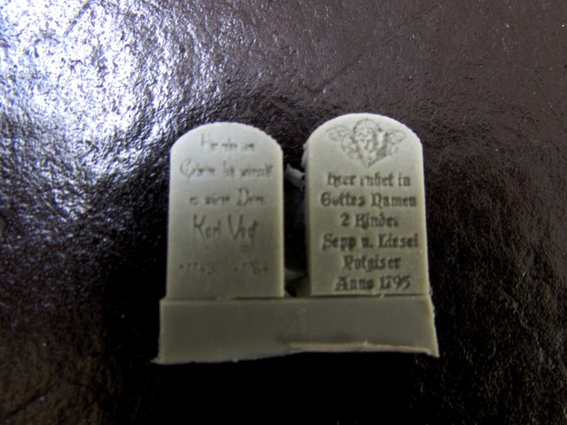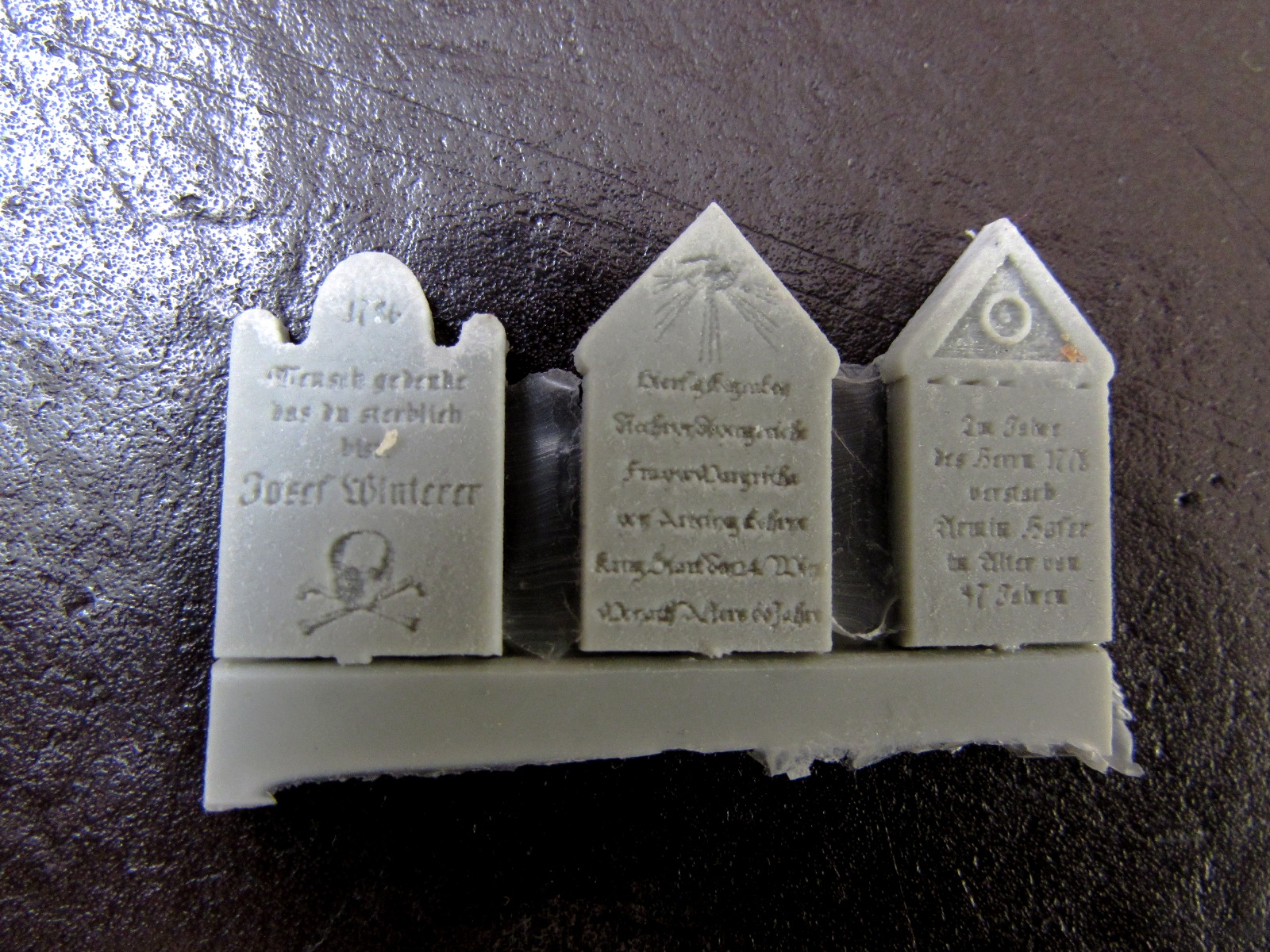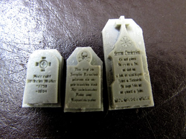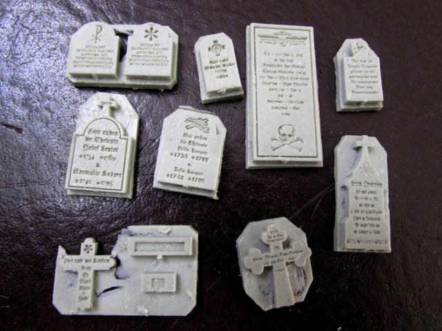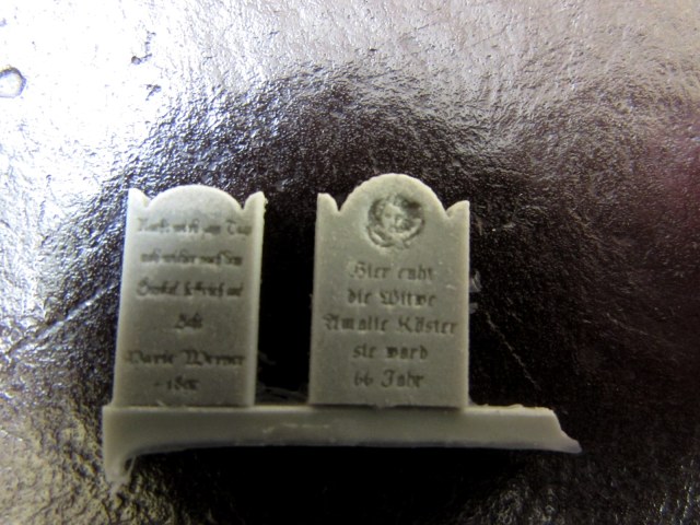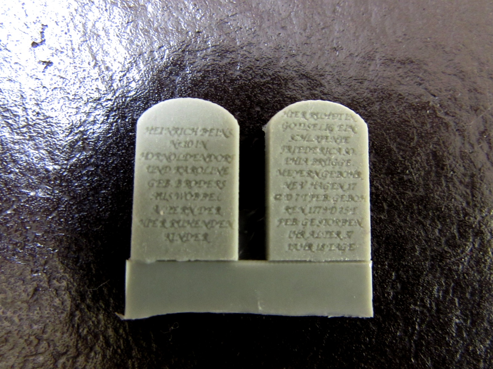 Если к вертикальным памятникам не придраться в плане качества и удобства обработки при снятии с питателя, то горизонтальные плиты напоминают Modelkrak, поскольку отлиты на сплошных "постаментах", и срезать-зачищать все это будет не так уж и просто. Это печально, поскольку некоторые из этих плит смотрелись бы и в вертикальном положении.
