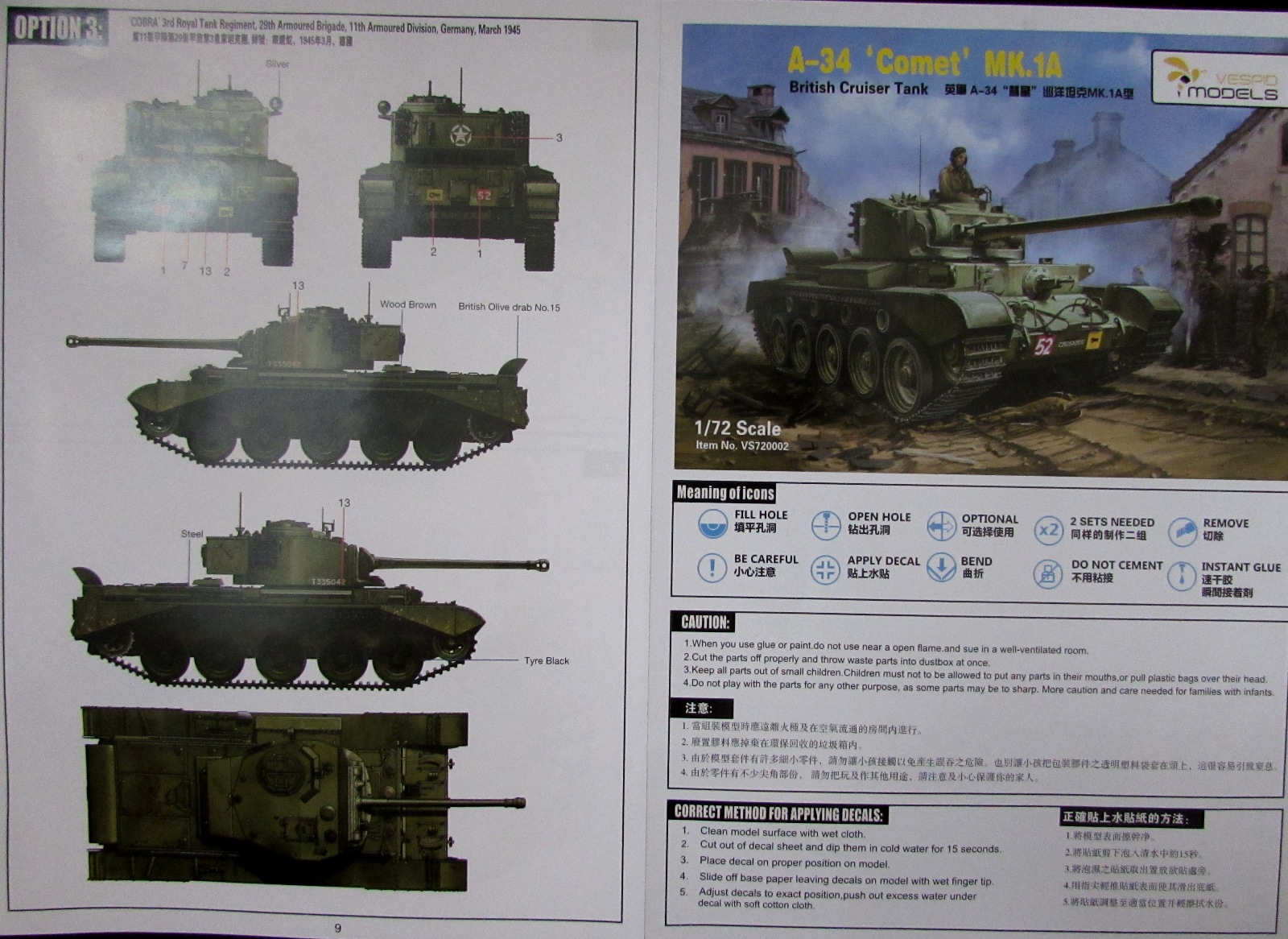на себя смахивает,корпус лучше ( требует некоторой корректировки в кормовой части), ходовая и гуси нормальные, модель на четверочку с перепилом, кому не важно и так сойдёт, ибо все равно не поедет и стрелять не будет,тем более безальтернавная,в общем кому понадобится хорошая копия, надите арморфотогалерею на комет,там все в чертежах и фото подробно указано.https://www.net-maquettes.com/ru/armor-photogallery/char-a34-comet-armor-photogallery-020/ кстати, кавдратная конструкция на башне нечто иноне как визир.. и по инструкции его ставить незльзя...он там задом на перед нарисован