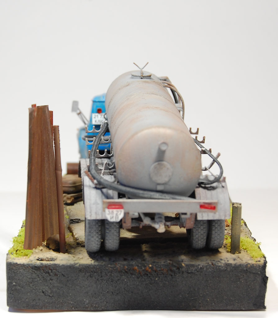 Заменены пара шлангов лежащих на полках бочки,добавлены крылья на тягач, номера.
