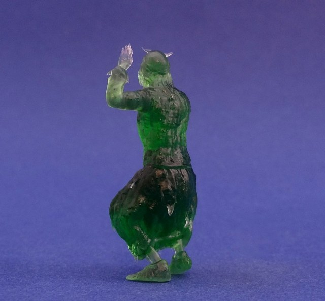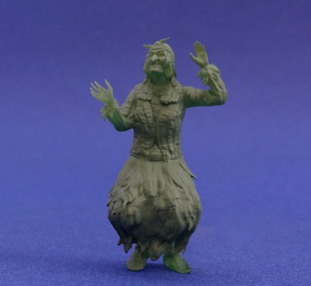 Очень понравилось как производитель запаковывает фигурку в коробочку, есть уверенность, что при транспортировки(даже длительной) с ней ничего не случится и не сломается, молодцы. Фигурка изготовлена на 3D принтере из фотополимерной смолы зелёного цвета и её высота составляет 47 мм. Фигурку я загрунтовал, дабы было лучше видно её качество. Хорошо проработана геометрия лица и пальцев, на пальцах даже прорисованы длинные ногти.