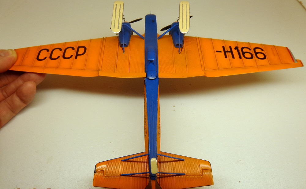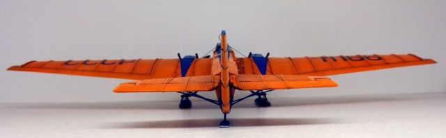 В целом модель удалась. Не понравились разнотолщинные задние кромки крыльев и рулей высоты. На правом крыле нервюры сверху или снизу смещены - не совпадают.