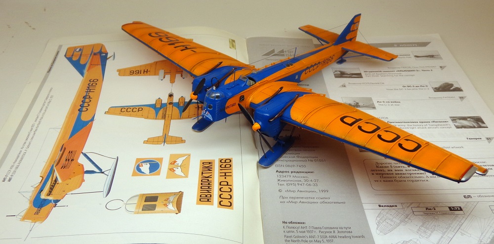 Об истории СССР-Н166 известно, пересказывать не стану, у меня до сих пор ещё жива книжечка бортрадиста экипажа, Н.Н.Стромилова "Впервые над полюсом". Вызывает только лишь сожаление и недоумение (кстати, а не "вредительская ли деятельность "врагов народа"?), что судьба самолета (специально подготовленного и оборудованного для полетов в высоких широтах) оказалась крайне короткой, вернувшись в Москву из экспедиции по высадке СП-1, он более никогда не летал и был списан по износу через год, в 1938-м.