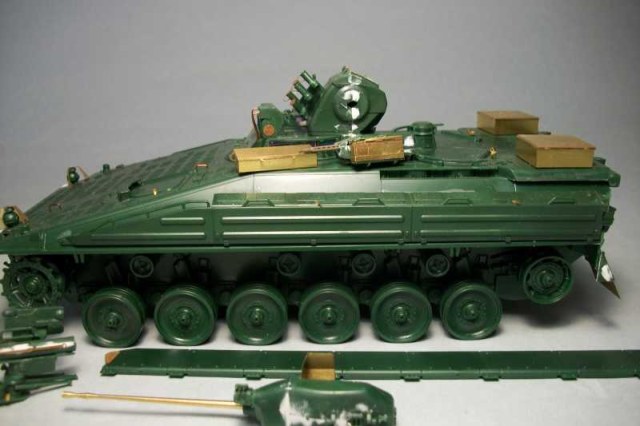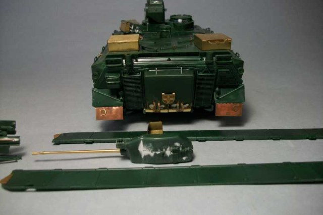Модель собиралась с определёнными доработками ,так как у этой фирмы они мягко говоря "дубоватые" . Траки AFV Club , фототравление Eduard и точеный ствол . Масксеть самодельная .