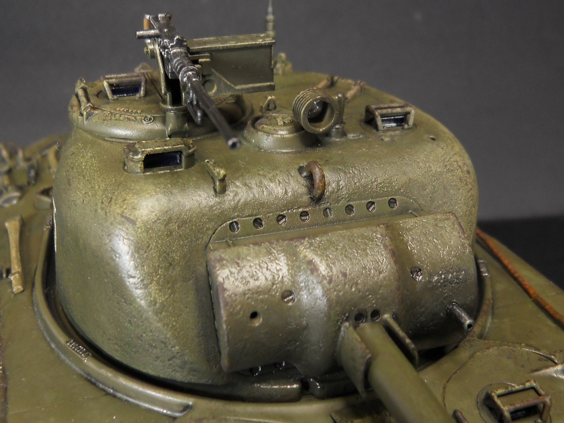 Моя модель из коробки, за исключением фактуры башни и наконечника 75-мм орудия (зашпатлеванный стык), обо всех остальных косяках узнал слишком поздно. Ну и травление бы конечно тоже не помешало, но уж извините - есть как есть). Базовый цвет тамия xf-62 olive drab. И много много лаков, смывок и всякой прочей химии для тонировки и придания модели большего реализма. Гусеницы как у всех, после покраски, уменьшились в размере, уже психанул и хотел выбросить, но увидев цену на металл от мастер клаба (~2000 р) совладал с нервами и натянул таки их на свое место). Как всегда много фото для более детального изучения работы. Вроде все. Спасибо за внимание и приятного просмотра.