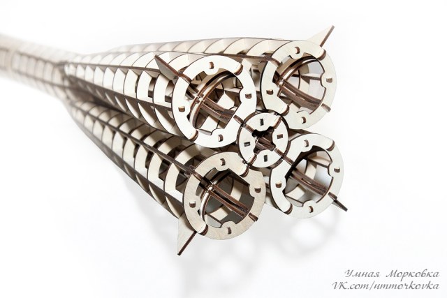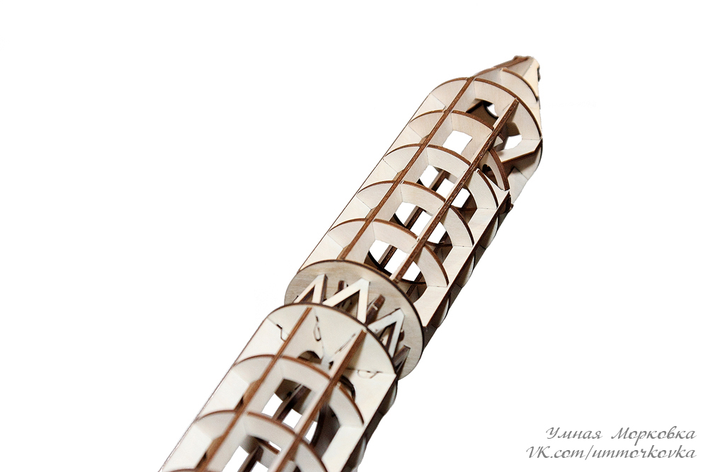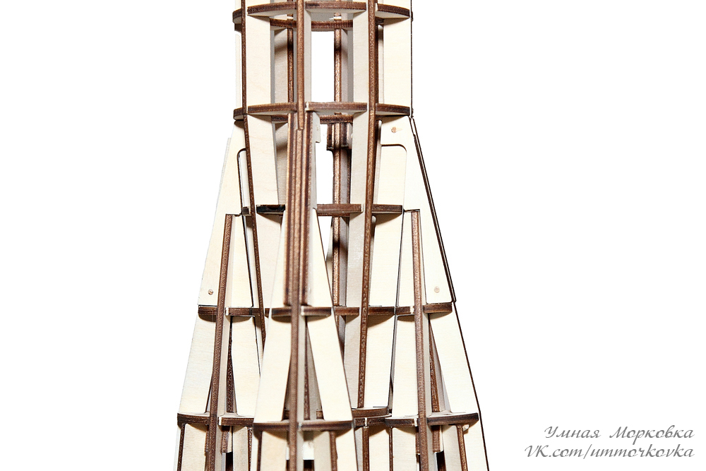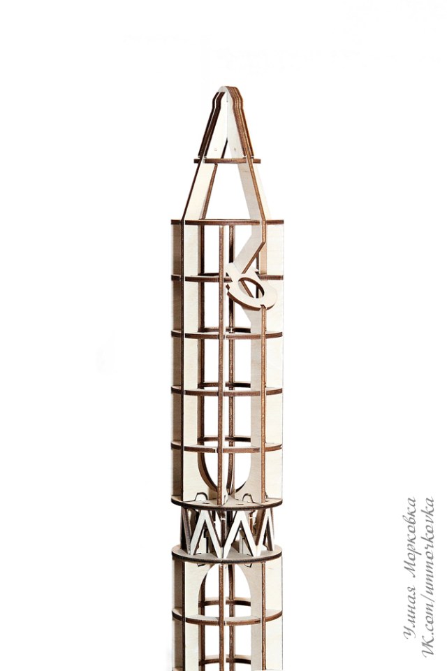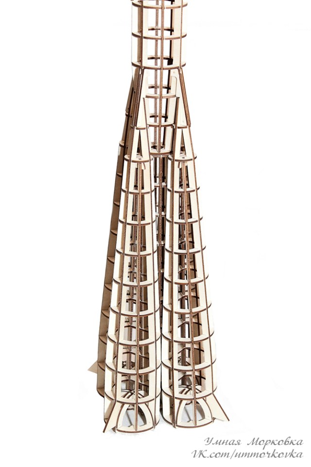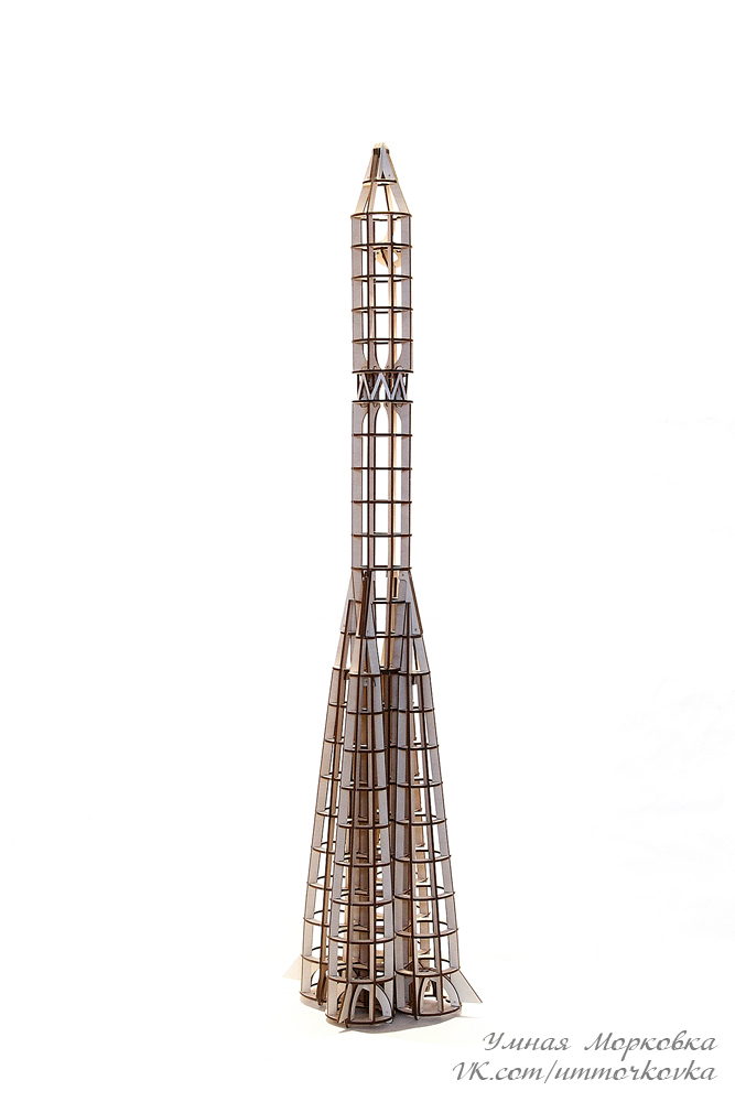 К очередному дню Космонавтики, сделал ракету Восток. Сначала хотел семерку сделать, но какая то она "куцая". Фанера 3мм, высота ракеты 905мм. Масштаба, как такового нет.