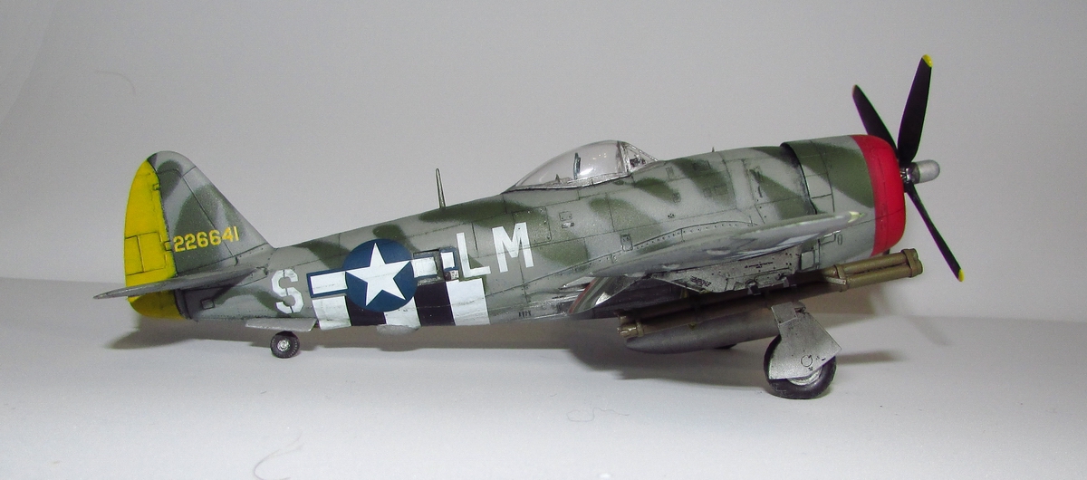 Прототип известный, но почему то не избалованный вниманием моделистов. Считается, что лучший американский истребитель ВМВ это "Мустанг", но Дэвид Шиллинг почему-то предпочел не перевестись с повышением до командира в другую группу на Р-51, а продолжить воевать на Р-47 заместителем в знаменитой 56-й! Впрочем вскоре он таки стал командиром, последней. В 139 боевых вылетах одержал 22 личных и 1 групповую победы, на таком - 5 их них.