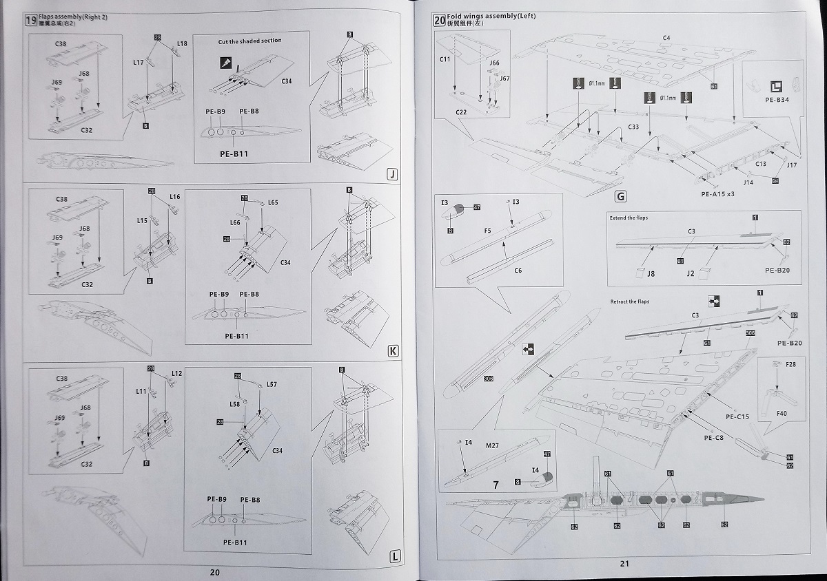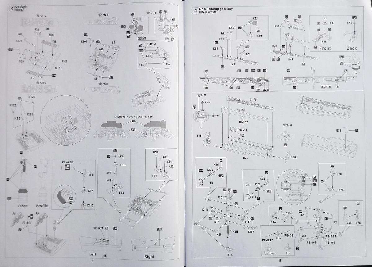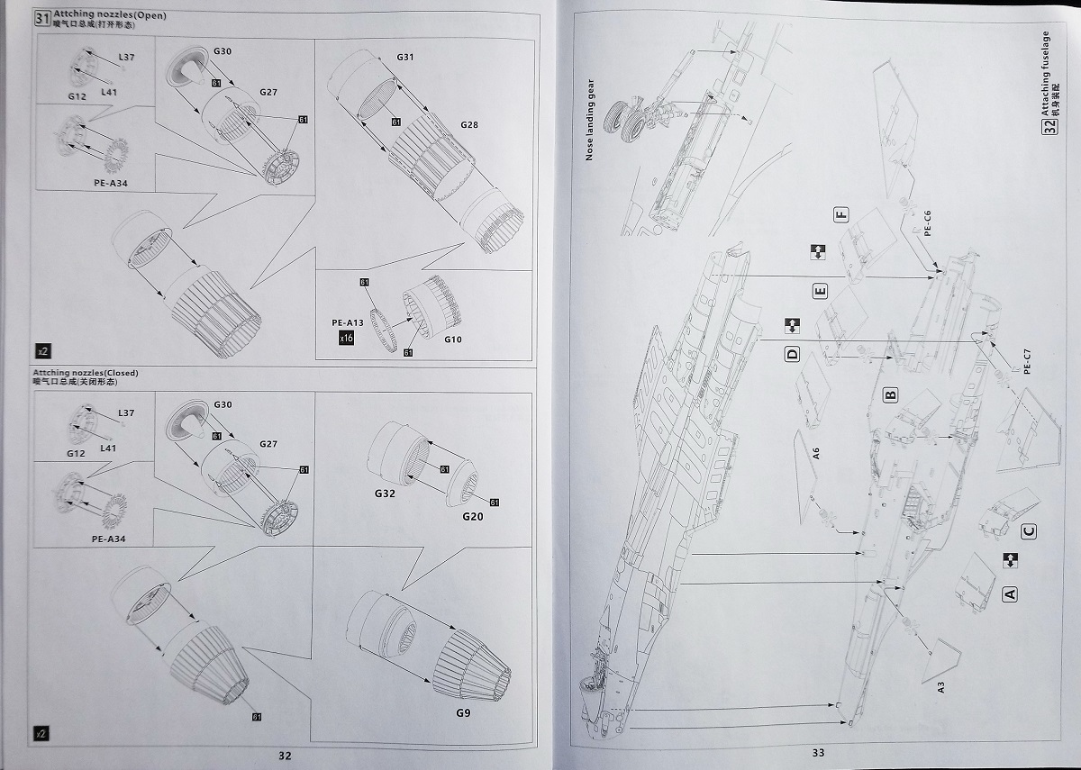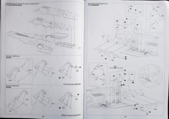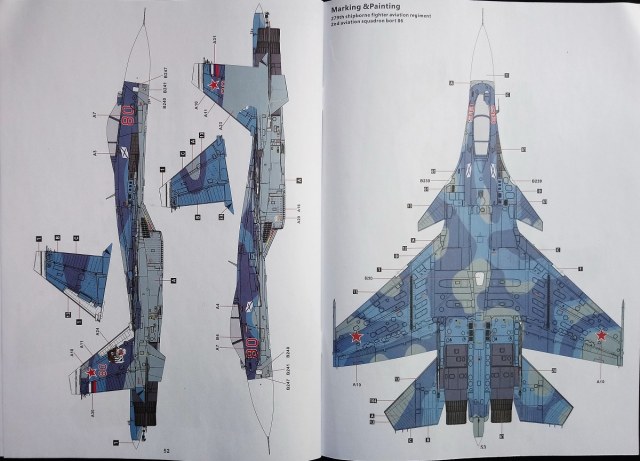 Как говорил выше инструкция по сборке – это толстенький буклет (55 стр.) с подробнейшими ч/б рисунками по монтажу, окраске и схемах нанесения декалей на планер, пилоны (включая АПУ и АКУ) и вооружение истребителя. Превосходная печать и грамотность этапов сборки модели позволят легко разобраться что куда и зачем…))