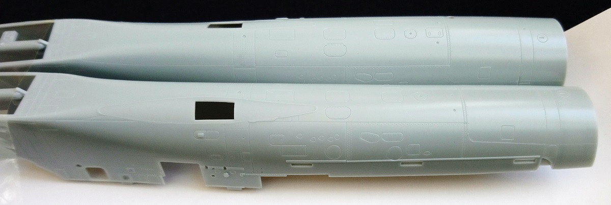 А теперь о моём личном впечатлении от этого великолепного набора. Глядя на первую рамку верхней части центроплана видна, абсолютная чистота поверхности, ровный клёп и идеальный расшив. Причем его глубина такая, что при нанесении ЛКП его величина не потребует изменения. Речь об утяжинах и о облое не идет вообще. И самое забавное, что практически отсутствуют следы толкателей в принципе. Как далеко шагнула китайская модельная промышленность!!)) Качество деталировки и уровень сборки всех узлов модели выше всяческих похвал (это видно на фото). Толщина пластика на отдельных деталях фюзеляжа, двигателей и вооружения весьма масштабна, что бывает крайне редко.
