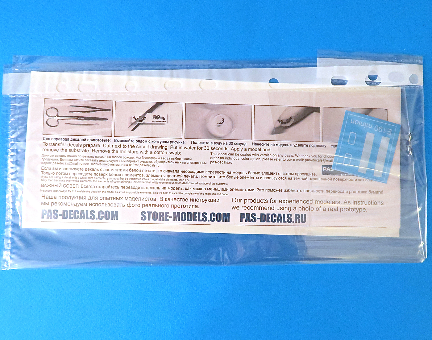 Через пакетик сразу собственно виден весь товар - бумажный цветной листик с инструкцией по нанесению и декалька.