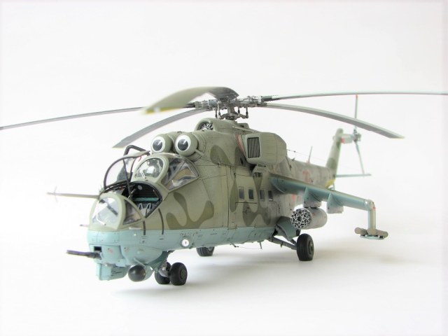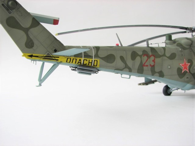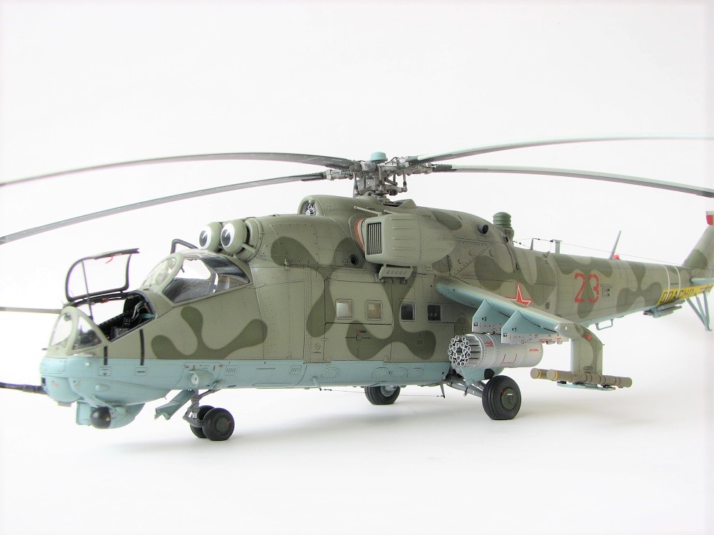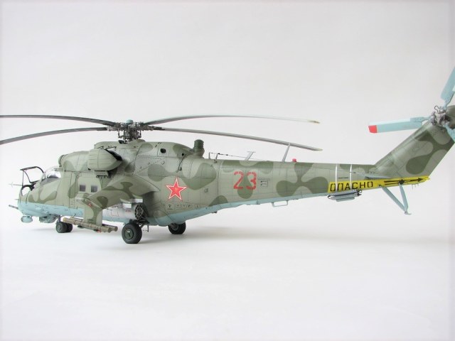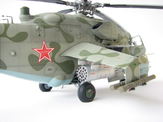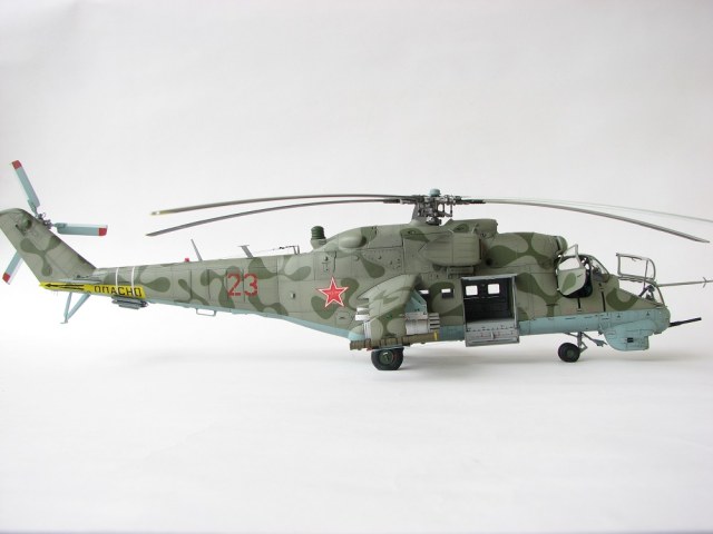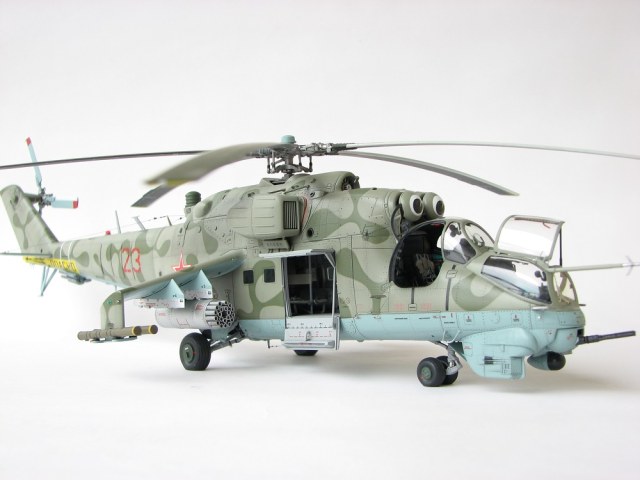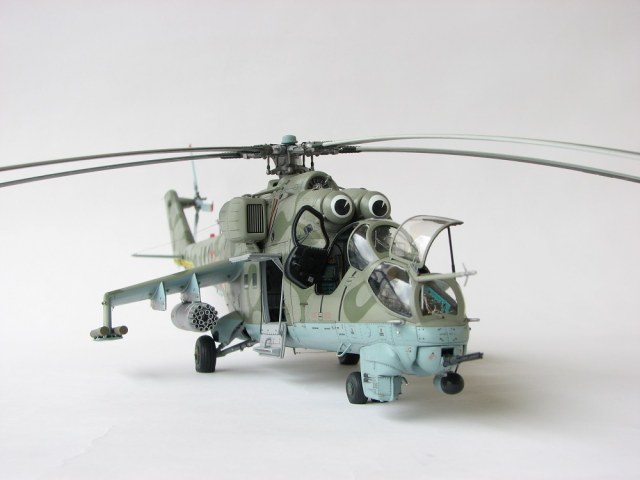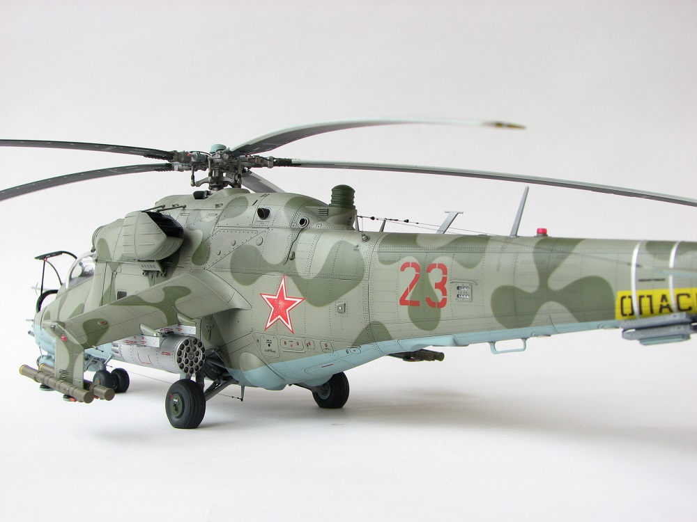 Добрый день, сейчас собираю эту же модель ориентируясь на Вашу работу. Можно Вас попросить скинуть фотографии данного борта. Не смог найти на просторах интернета ми-24В в такой схеме окраски (сам приобрел под него смоляную пушку и декали, однако производитель пишет что они (декали) относятся к модификации ВП авиации Балтийского флота 2001 года).
