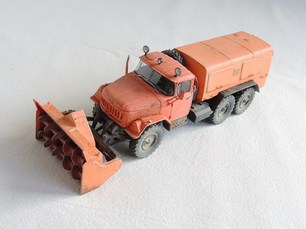 Только сам автомобиль выглядит постарше рабочего органа. Краска на нём уже выцвела под Солнцем, а шнеки почти новые. Даже окраска от трения со снегом не стёрлась.