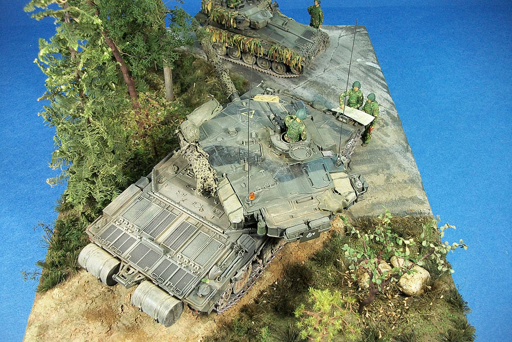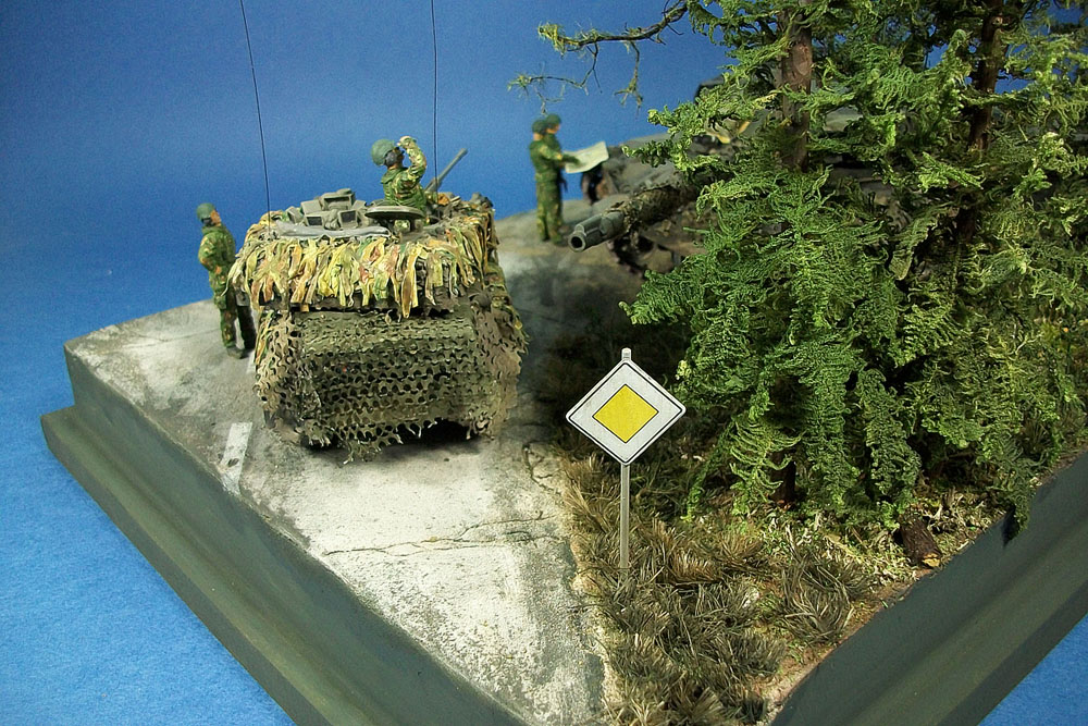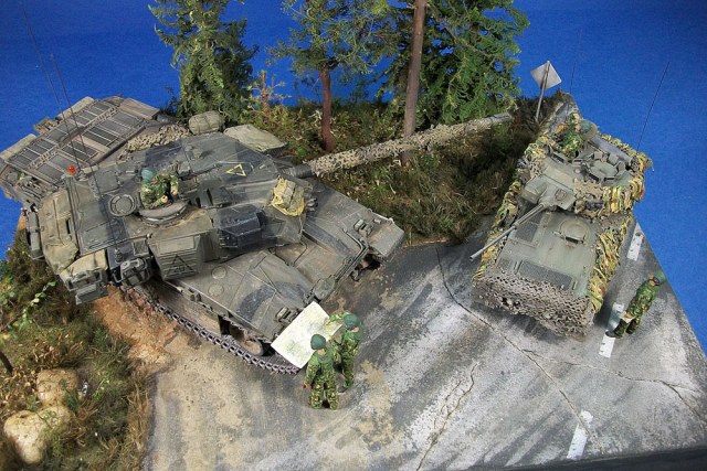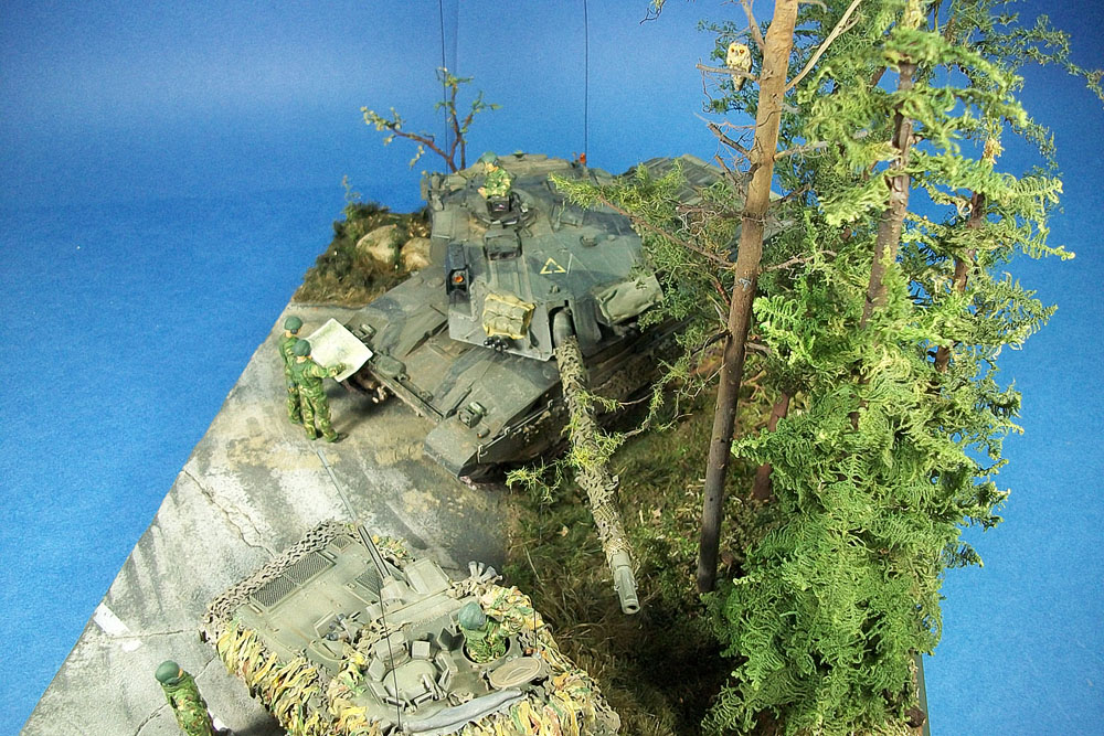 Диорама была сделана довольно давно ,где-то лет 11-12 назад ,но решил здесь выложить . Читал журнал про самые крупные учения нато , рассматривал фото и решил сделать сюжет . Танк фирмы тамия ,траки фриул ,фототравление эдуард , и ещё кое-какие доработки . БРМ AFV Club ,траки фриул ,фототравление эдуард ,ствол рб модел , сетку помню раза четыре переделывал , хотя сейчас я бы немного доработал ) . Фигурки блэкдог и D.Vision ,крашены темпера пва . Сову сам лепил ) ,лес самодельный ,сосна более менее с 5 раза получилась . Приятного просмотра!