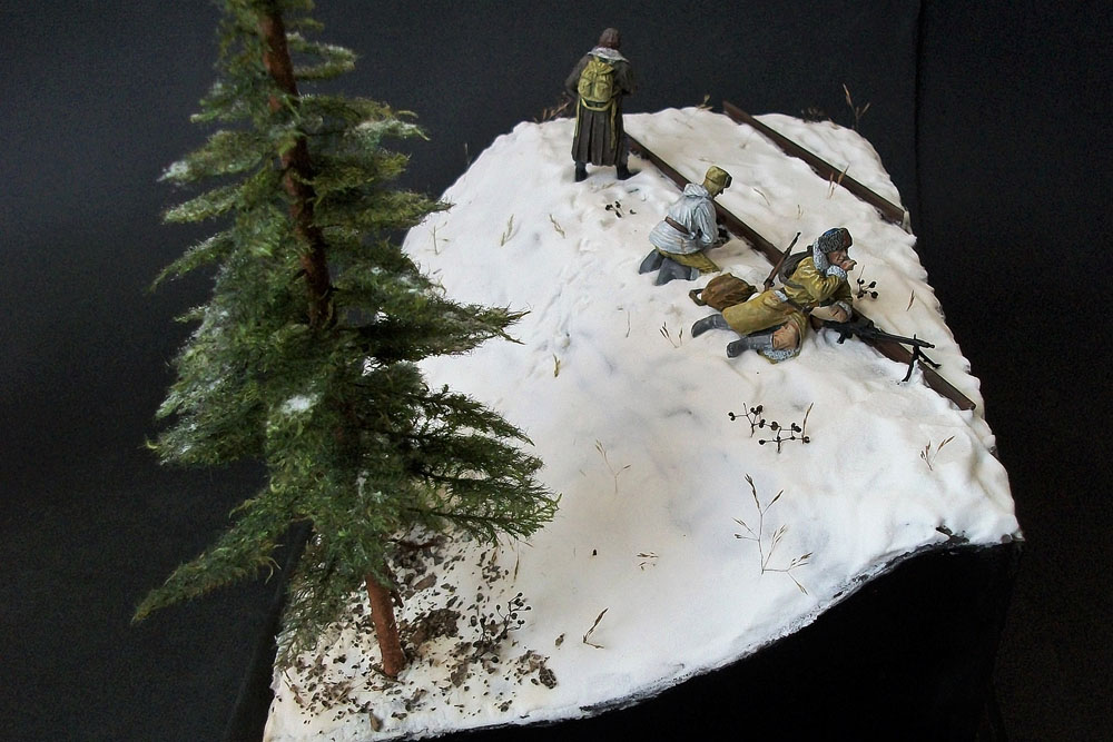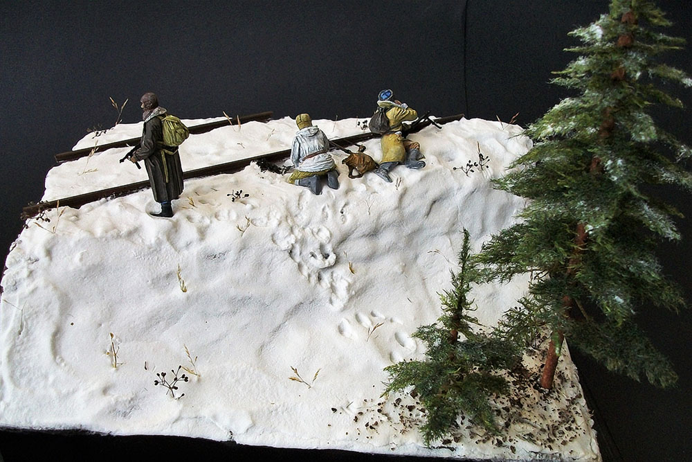 Достойная работа! Смущает только один момент, рельсы ржавые,как будто по ним пару лет никто не ездил и колея вся в снегу, а идущий поезд снег всегда сметает. То ли партизаны на брошенную тупиковую ветку по ошибке вышли, то ли тренируются на заброшенке.